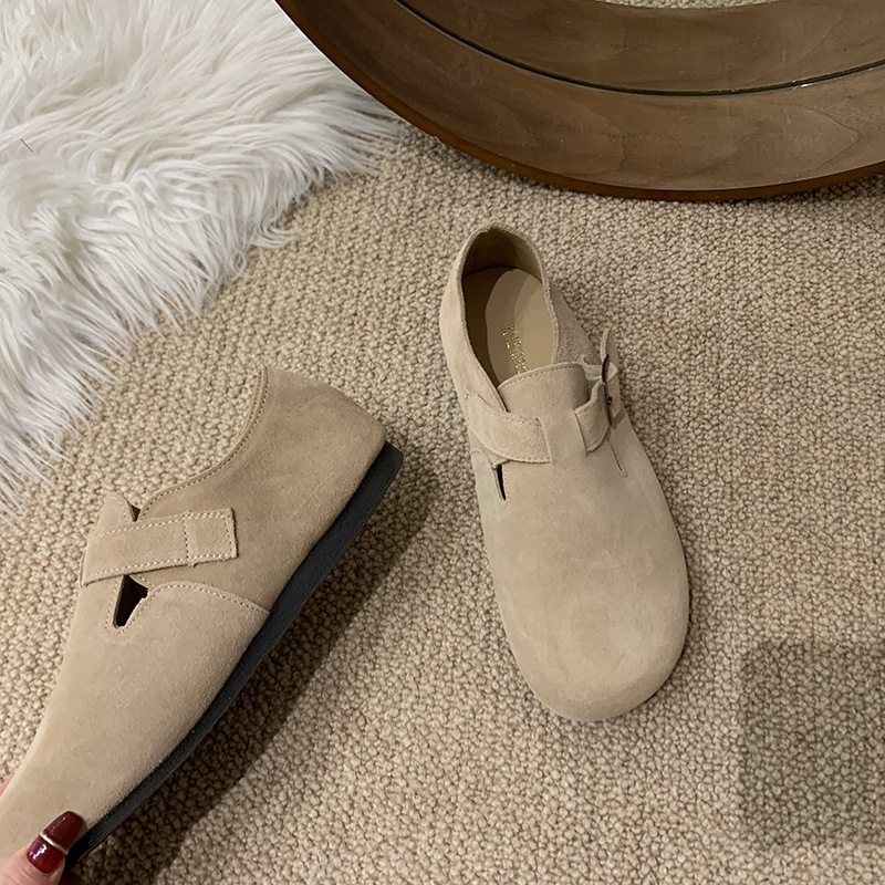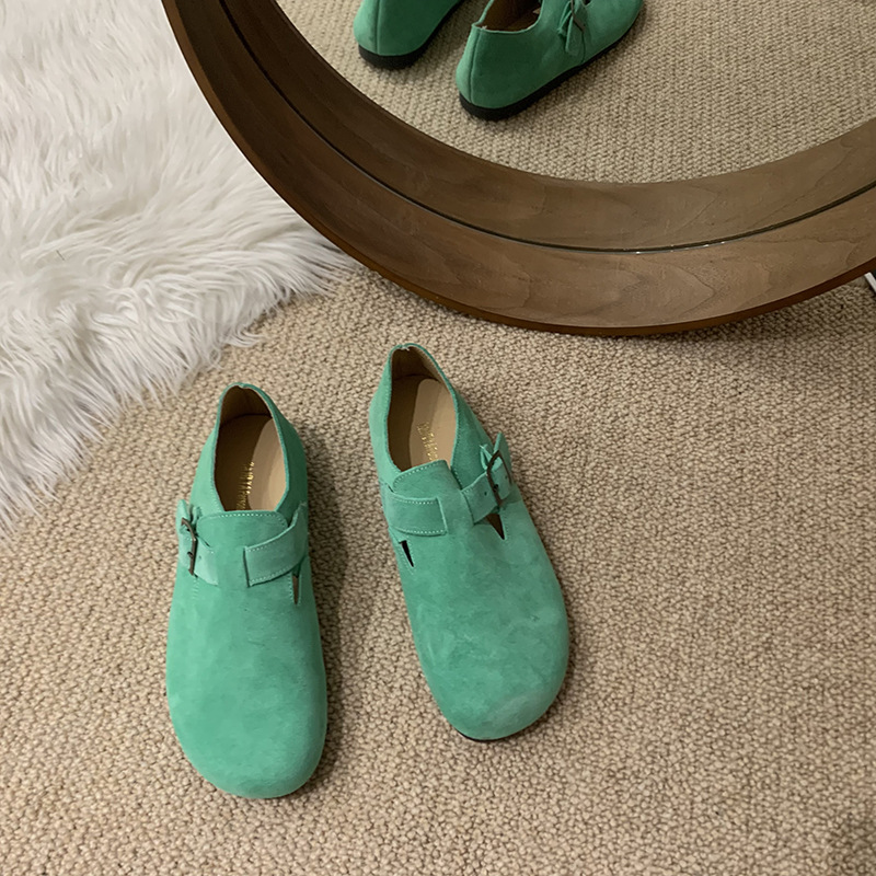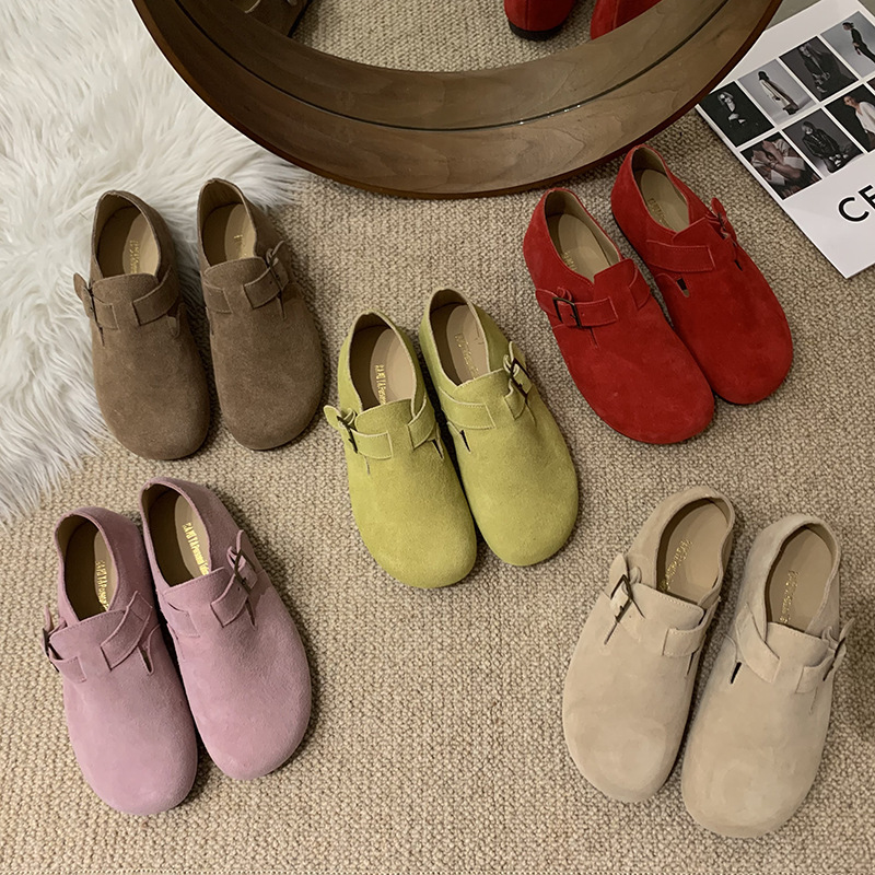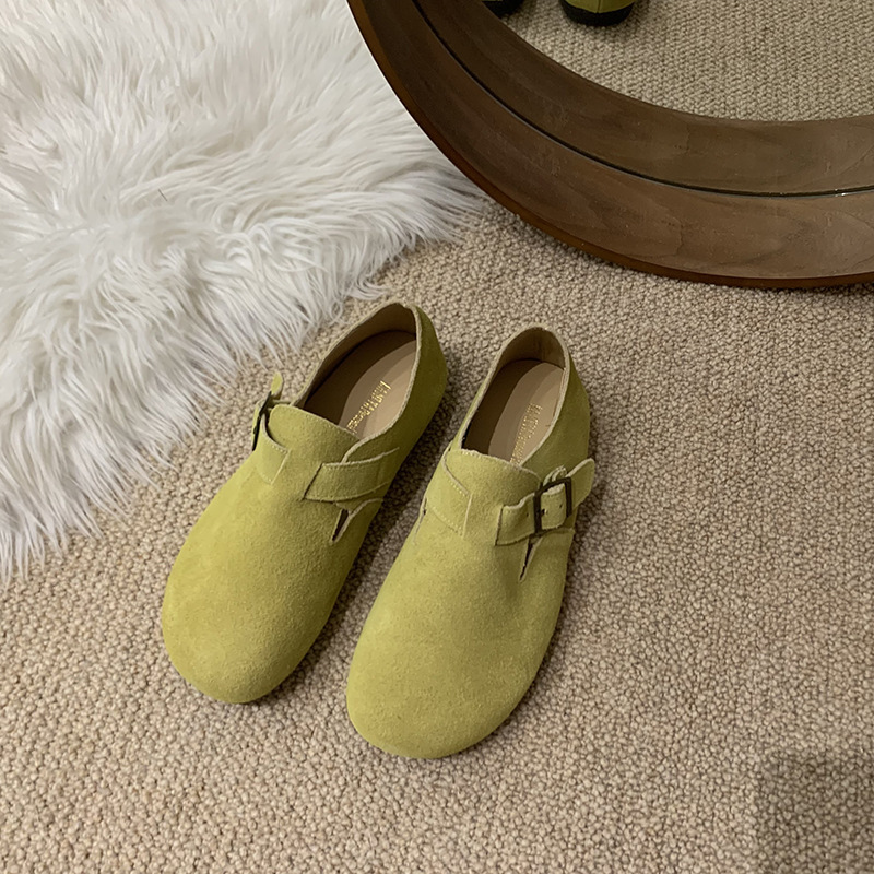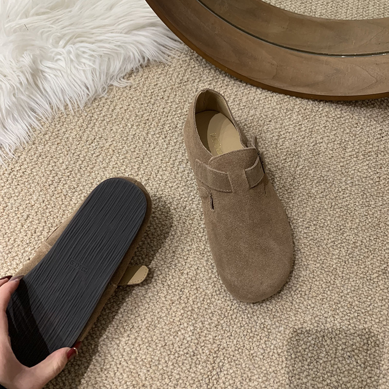 소가죽 로퍼 두꺼운 밑창 신발 여성용 라운드 토 로퍼 프랑스 가죽 신발 버켄스탁 하프 토우 아우터웨어 모든 매치 싱글 레이어 신발