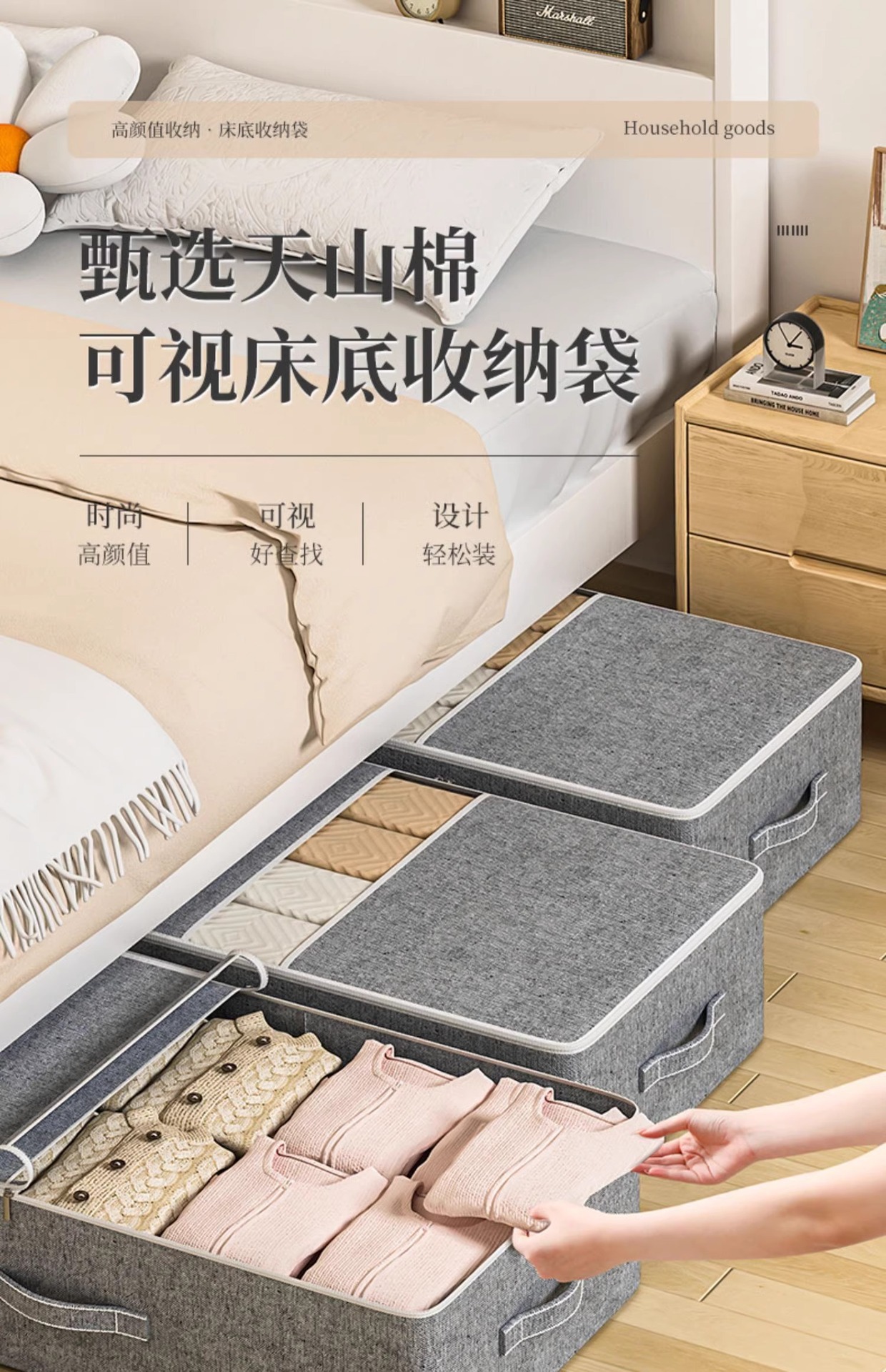 침대 보관 가방 Tianshan 면 방진 및 방습 의류 보관 비주얼 윈도우 벨트 휴대용 가정 보관 가방