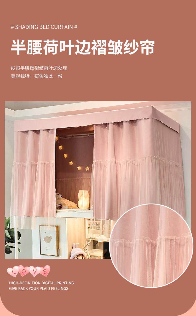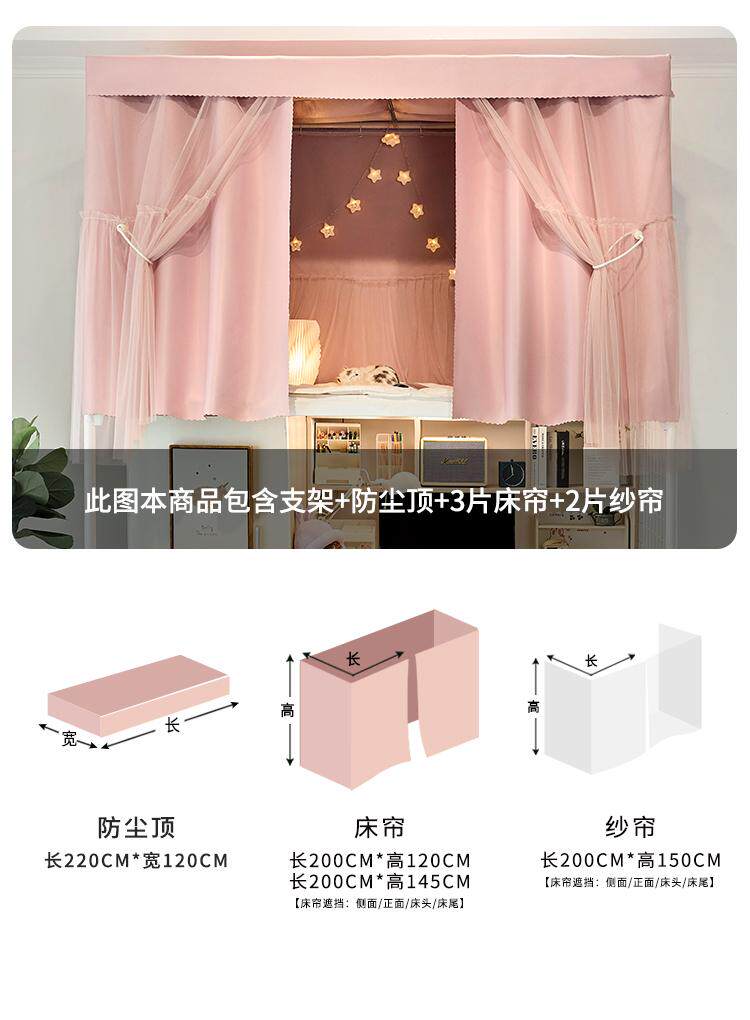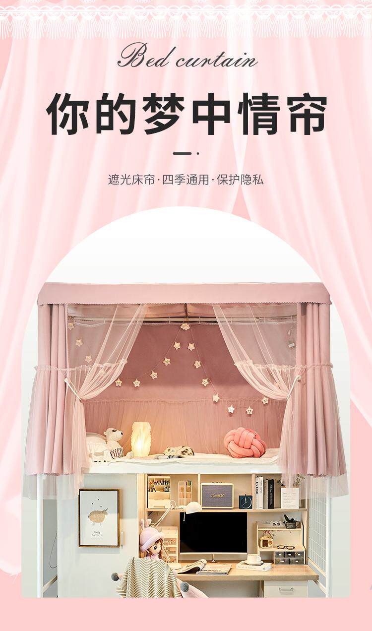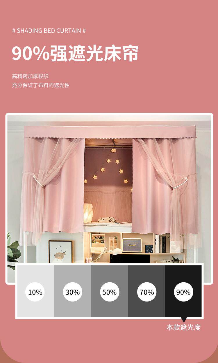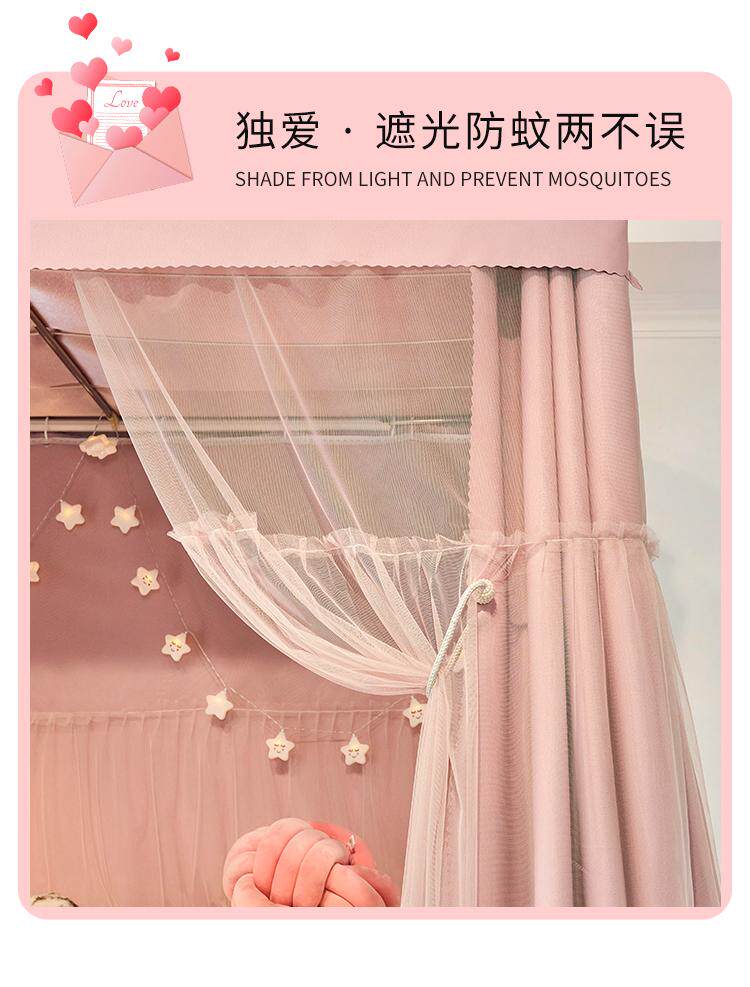 여아 더티핑크 기숙사 상하 부시에 통합 된 대학생 기숙사 침대 커튼 모기장 강한 음영 및 방진 벨트 브래킷스토어 가기