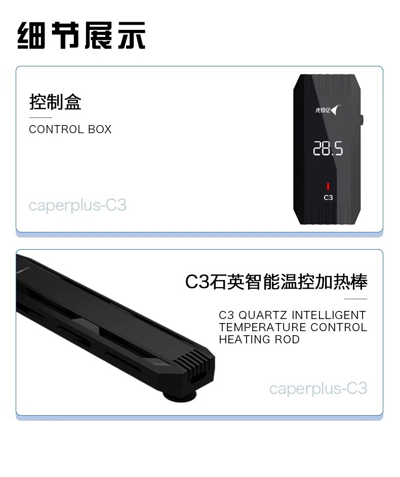 Guangteyi C3 가열 막대 작은 물고기 탱크 석영 가열 막대 온도계 가열기 온도 제어 장비 지능형스토어 가기