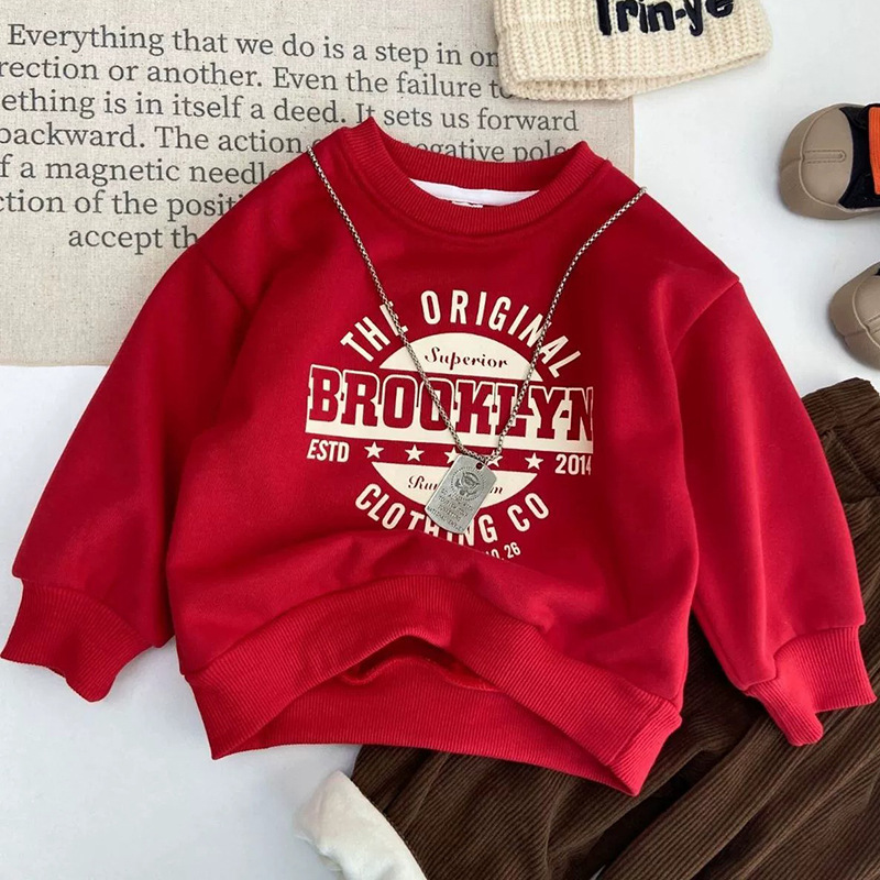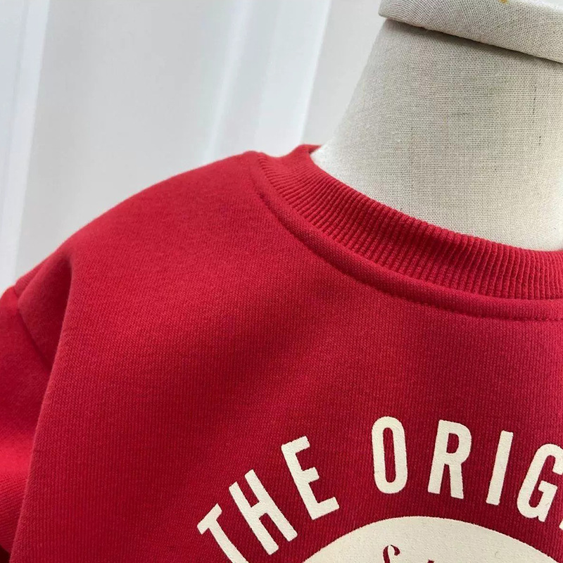 2025년 가을 겨울을 위한 벨벳 아동용 라운드 넥 스웨트셔츠 빨간색 새해맞이 옷 남성과 여성을 위한 다용도 상의스토어 가기