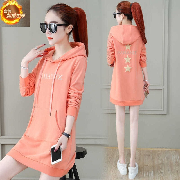 가을/겨울 통통녀 플러스 사이즈 200kg 긴 조끼 여성 느슨한 후드 풀오버 조끼 학생 원피스 여성스토어 가기