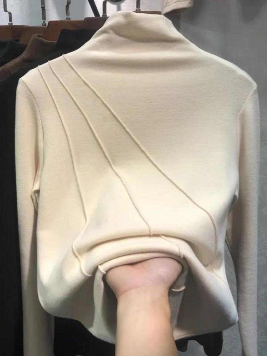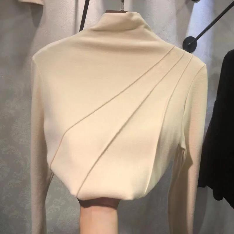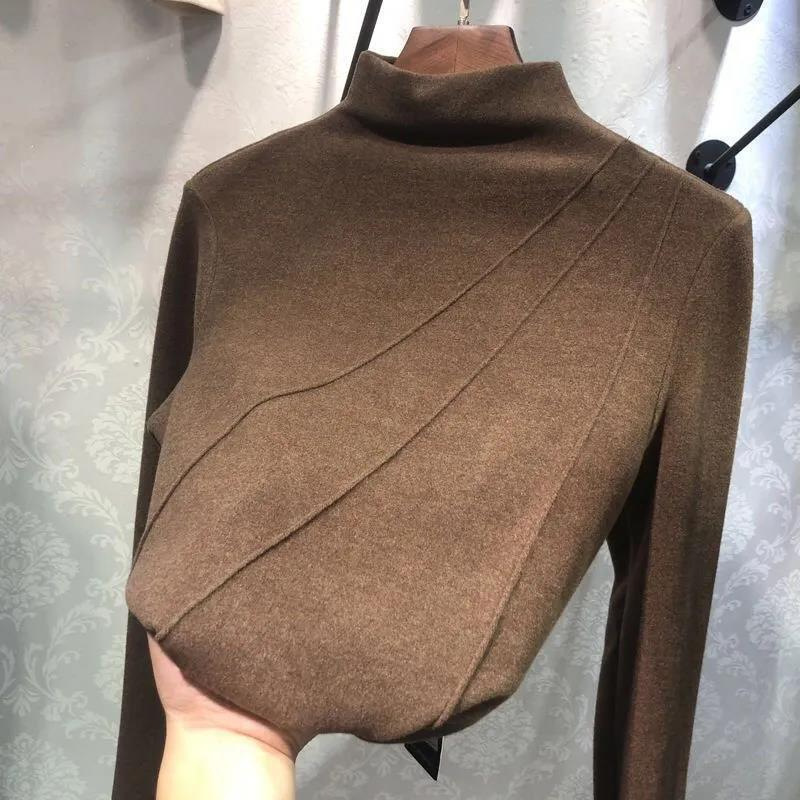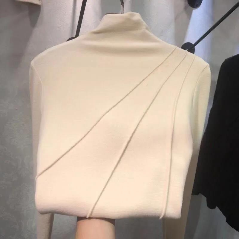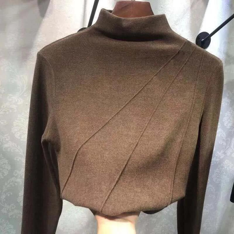 양면 양털 세미 하이 칼라 베이스 셔츠 여성용 가을과 겨울 내부 따뜻한 여성용 긴팔 티셔츠