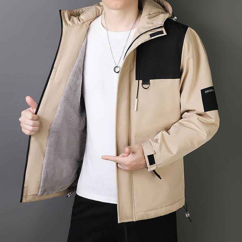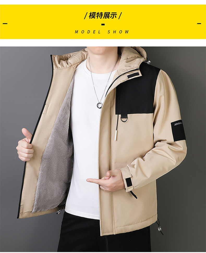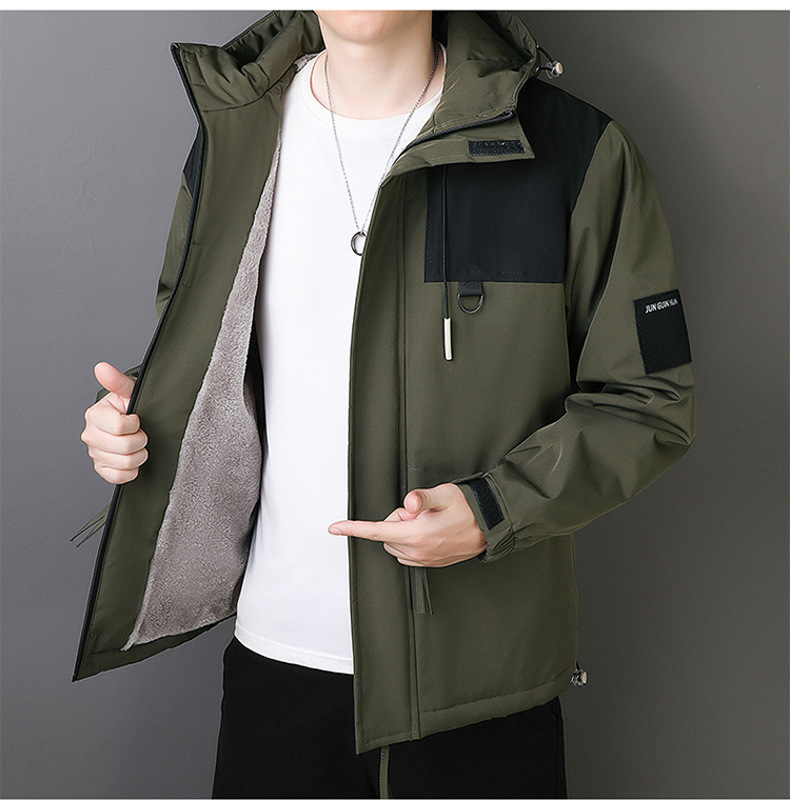가을과 겨울 새로운 야외 남성 자켓 스포츠 후드 자켓 트렌디 브랜드 플러스 사이즈 기모 두꺼운 재킷 남성용 윈드 브레이커