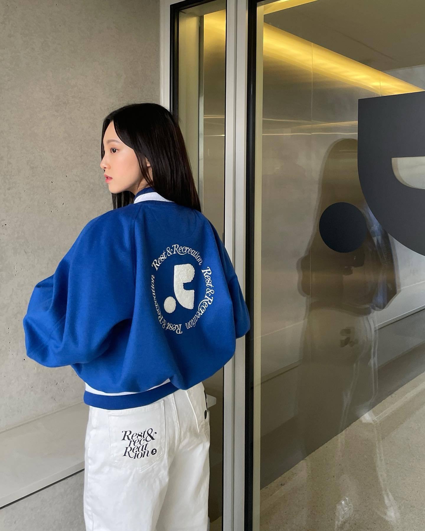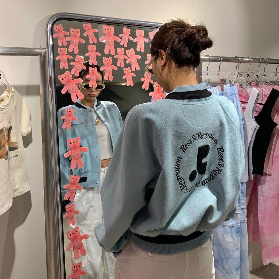 한국의 틈새 트렌드 브랜드 25 봄 신상 울 베이스볼 재킷 여성용 RR 백 로고 루즈핏 재킷스토어 가기
