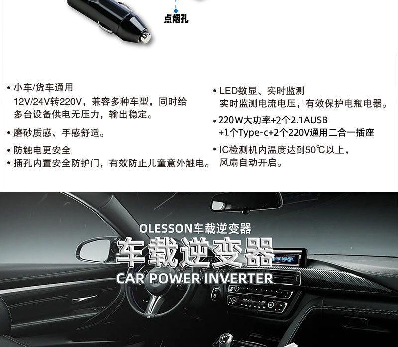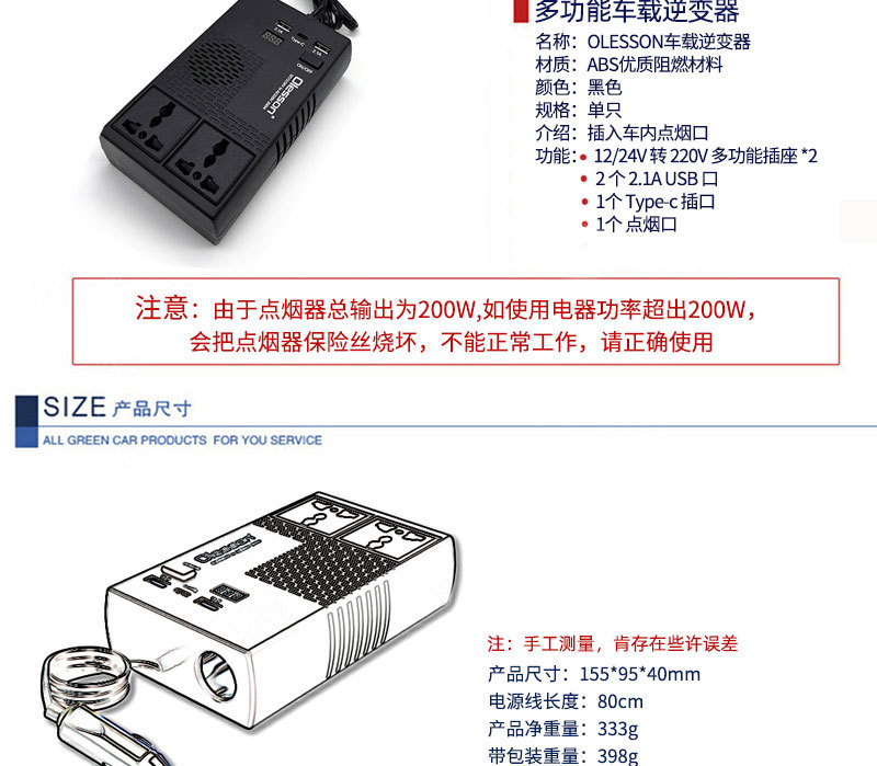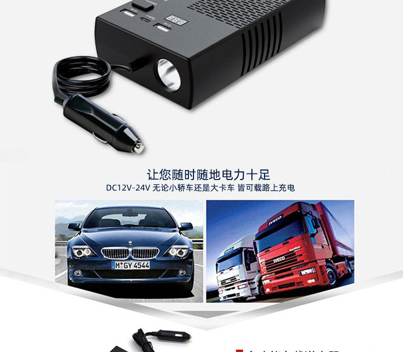 车用大功率200W电源插座车充点烟器12转换220V车载逆变器