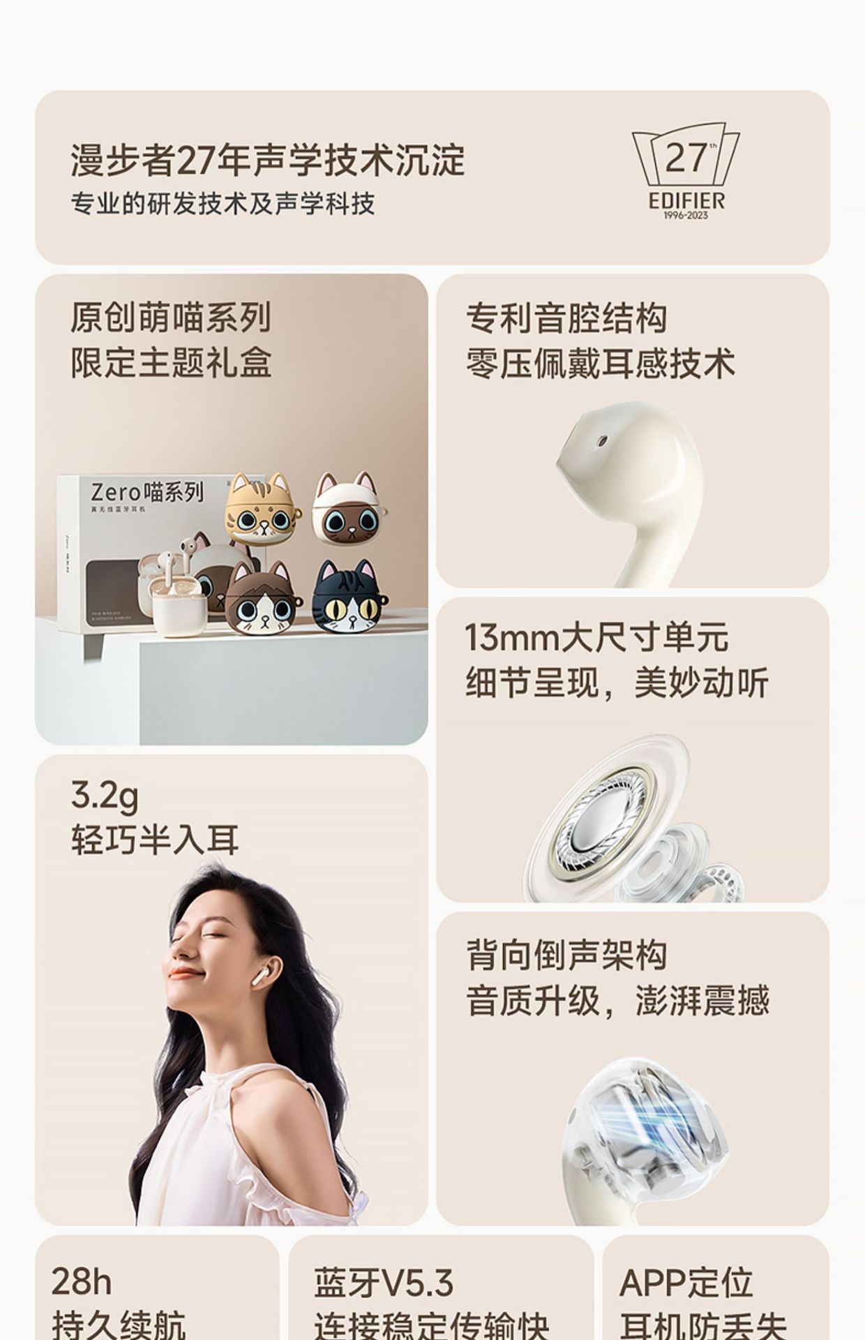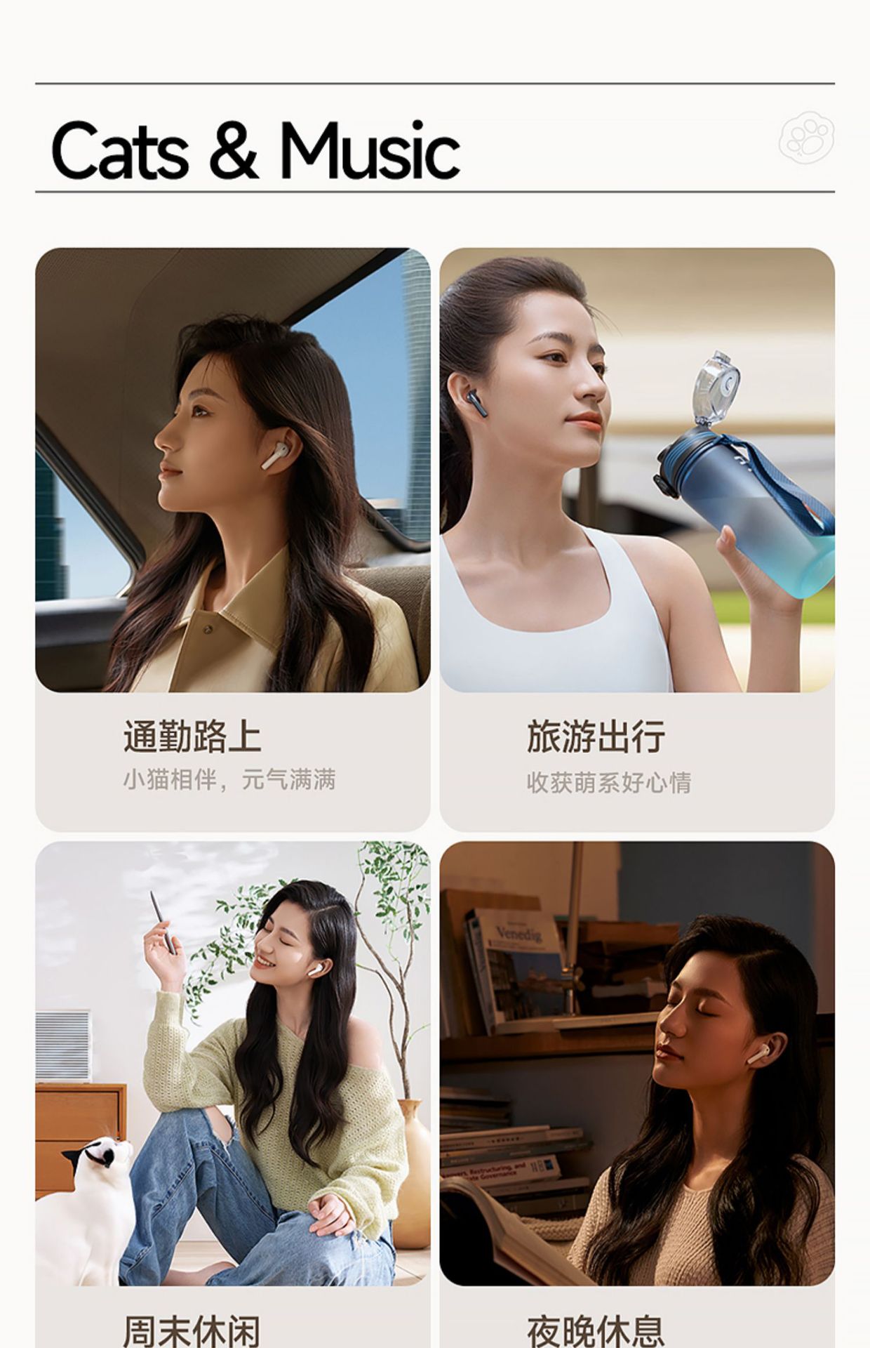 Rambler 플라워 제로 야옹 시리즈 테마 선물 상자 진정한 무선 블루투스 헤드셋 소녀의 선물 귀여운 새로운 스타일스토어 가기