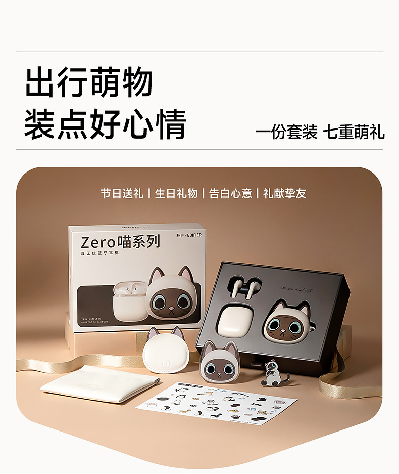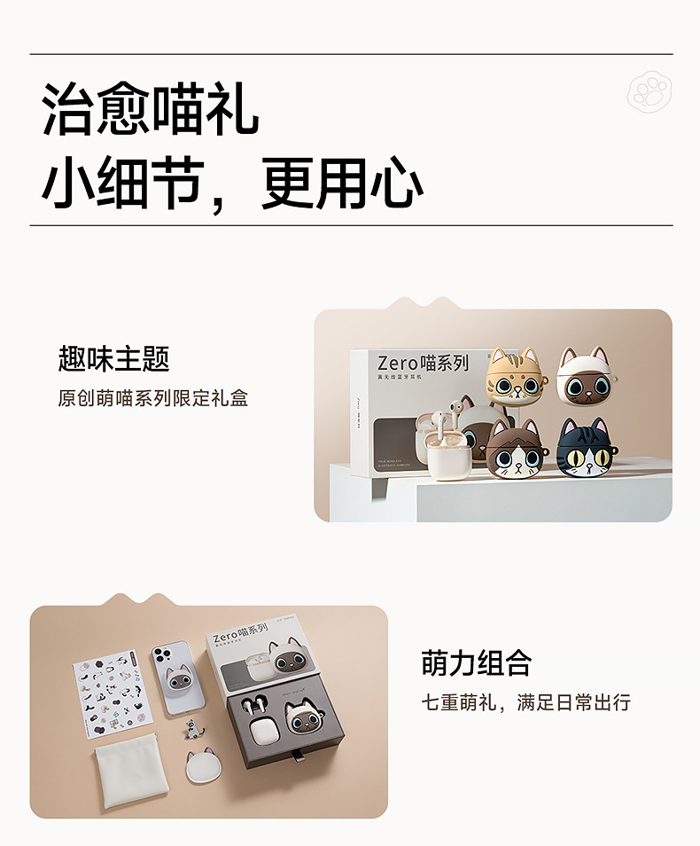 Rambler 플라워 제로 야옹 시리즈 테마 선물 상자 진정한 무선 블루투스 헤드셋 소녀의 선물 귀여운 새로운 스타일