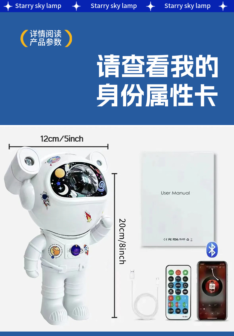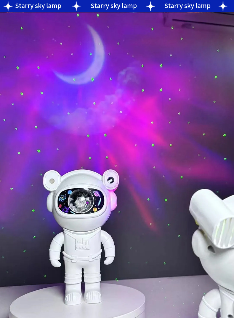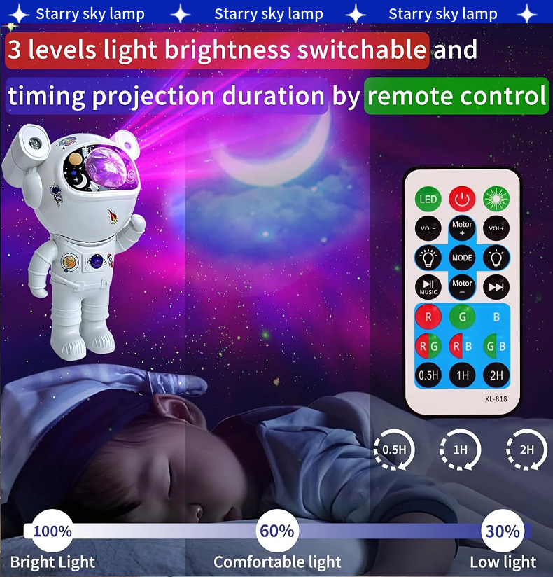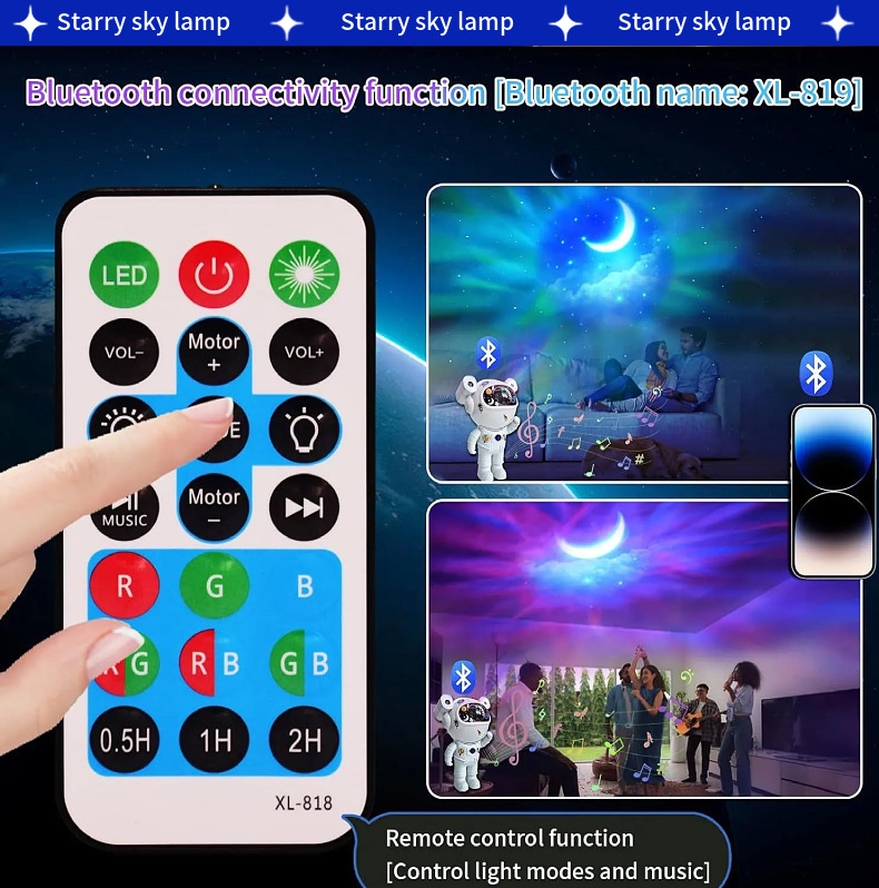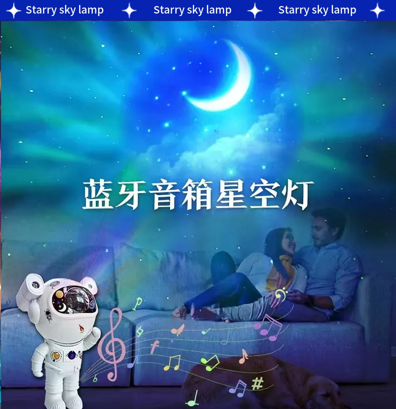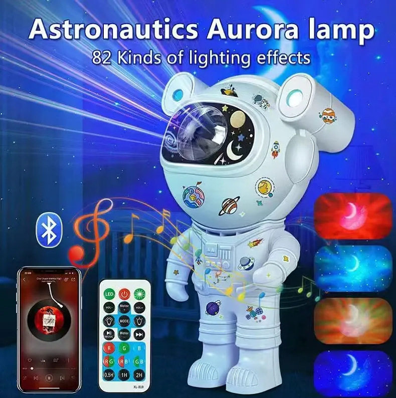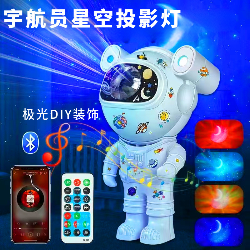 국경 DIY 우주 비행사 음성 제어 프로젝션 램프 성운 별이 빛나는 하늘 분위기 우주 비행사 블루투스 음악 프로젝터 야간 조명