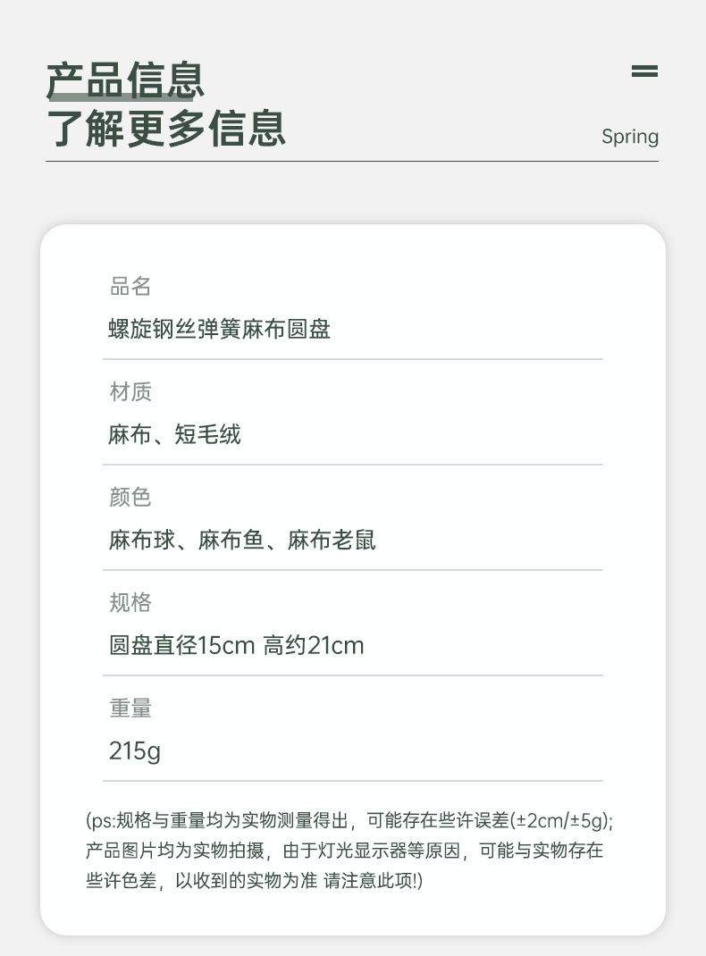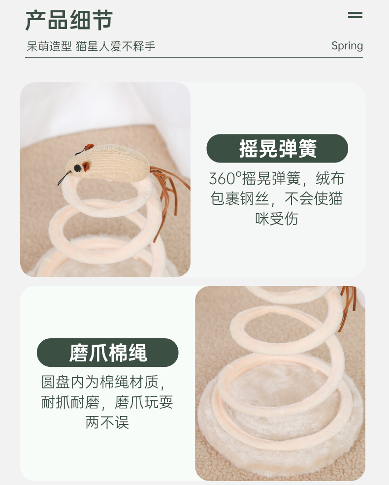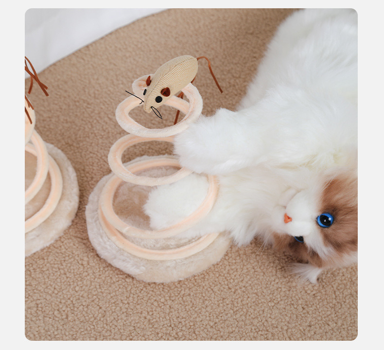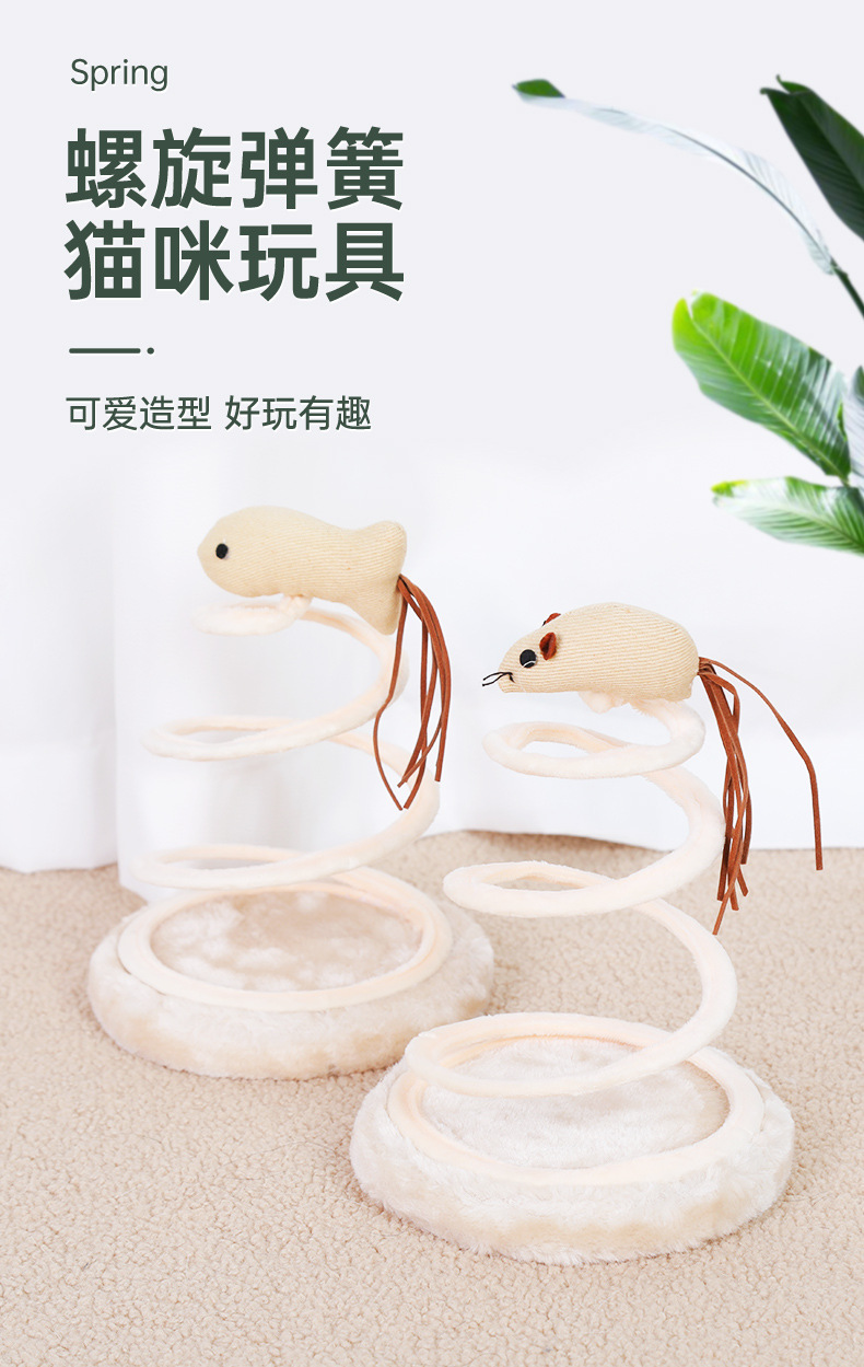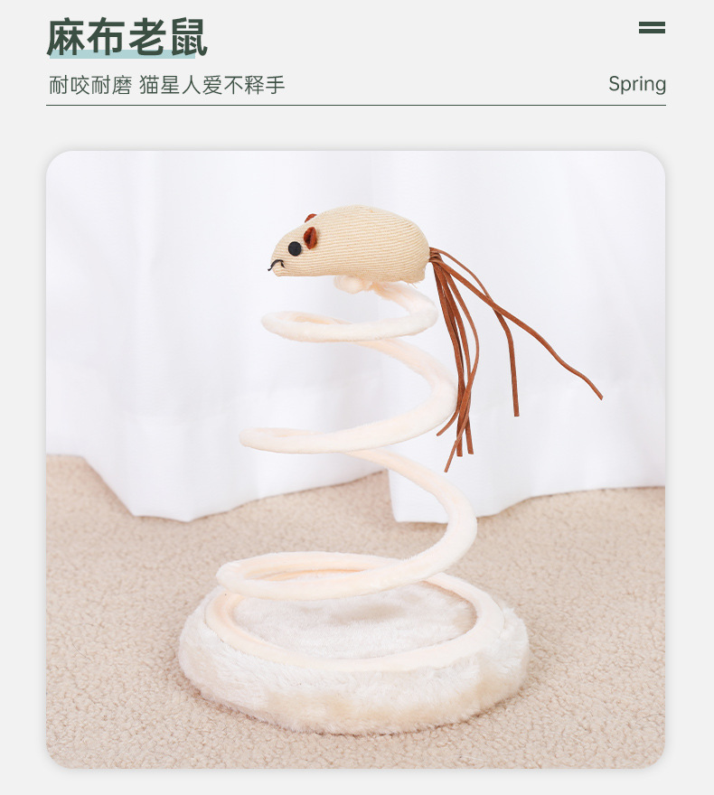 재고 도매 새로운 고양이 장난감 고양이 용품 나선형 강철 와이어 스프링 린넨 디스크 고양이 스크래치 보드 린넨 마우스스토어 가기