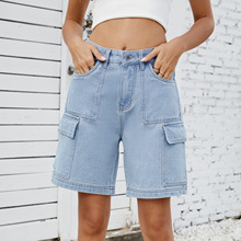 미국 스파이스 걸 WISH 아마존 새로운 크로스-국경 대외 무역 씻어 데님 짧은 재킷 코트 긴 소매 여성스토어 가기