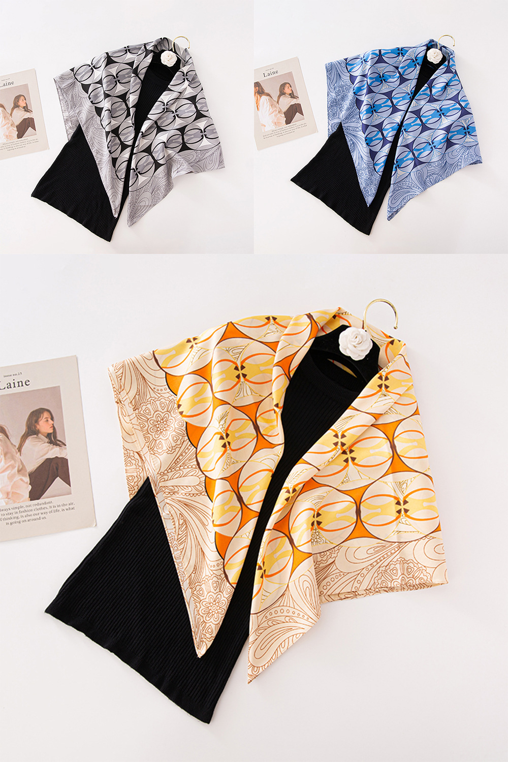 2023 새로운 기하학적 링 인쇄 스카프 유행 간단한 가벼운 럭셔리 스타일 선 스크린 스카프 여성의 장식 사각형 스카프스토어 가기