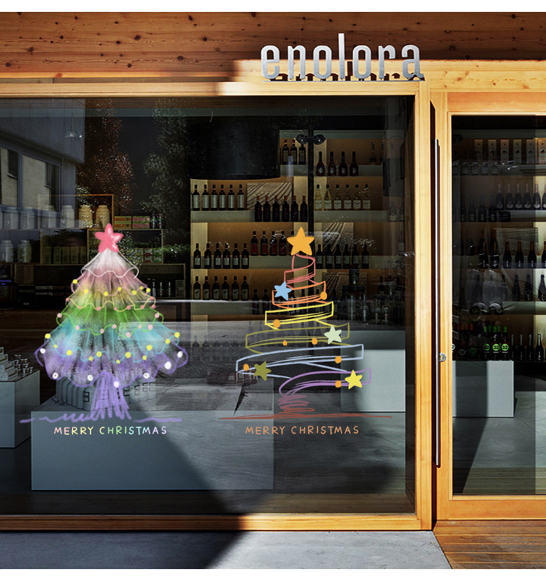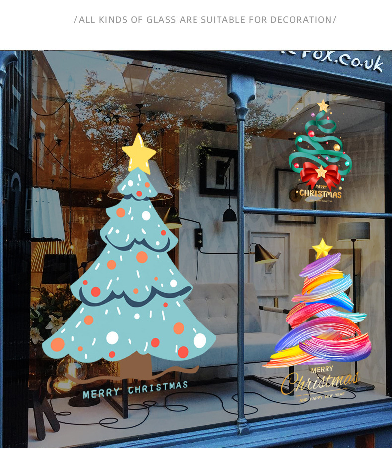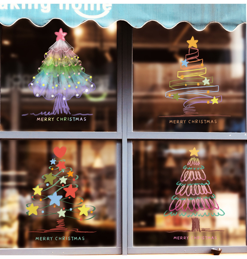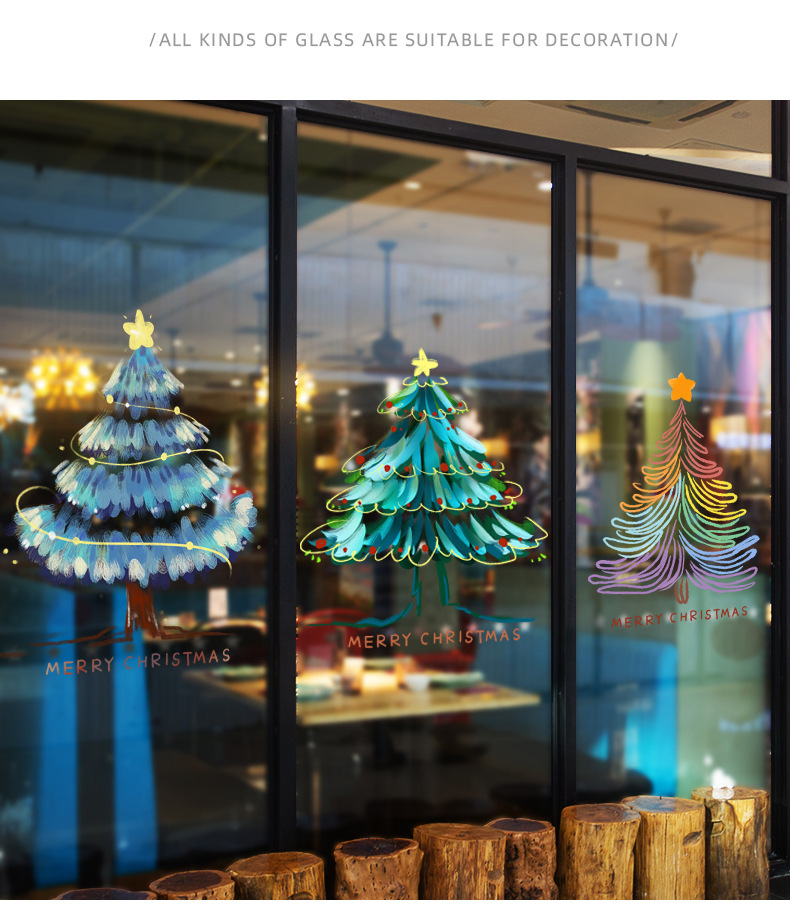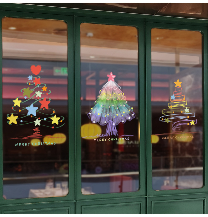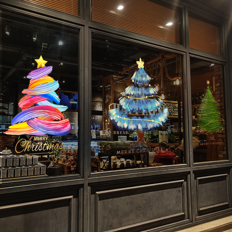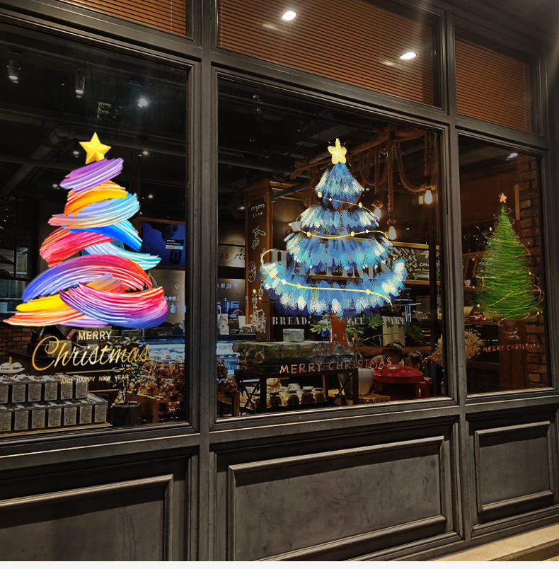 다채로운 크리스마스 트리 휴일 장면 장식 영화관 창 정전기 스티커 레이아웃 유리 스티커스토어 가기