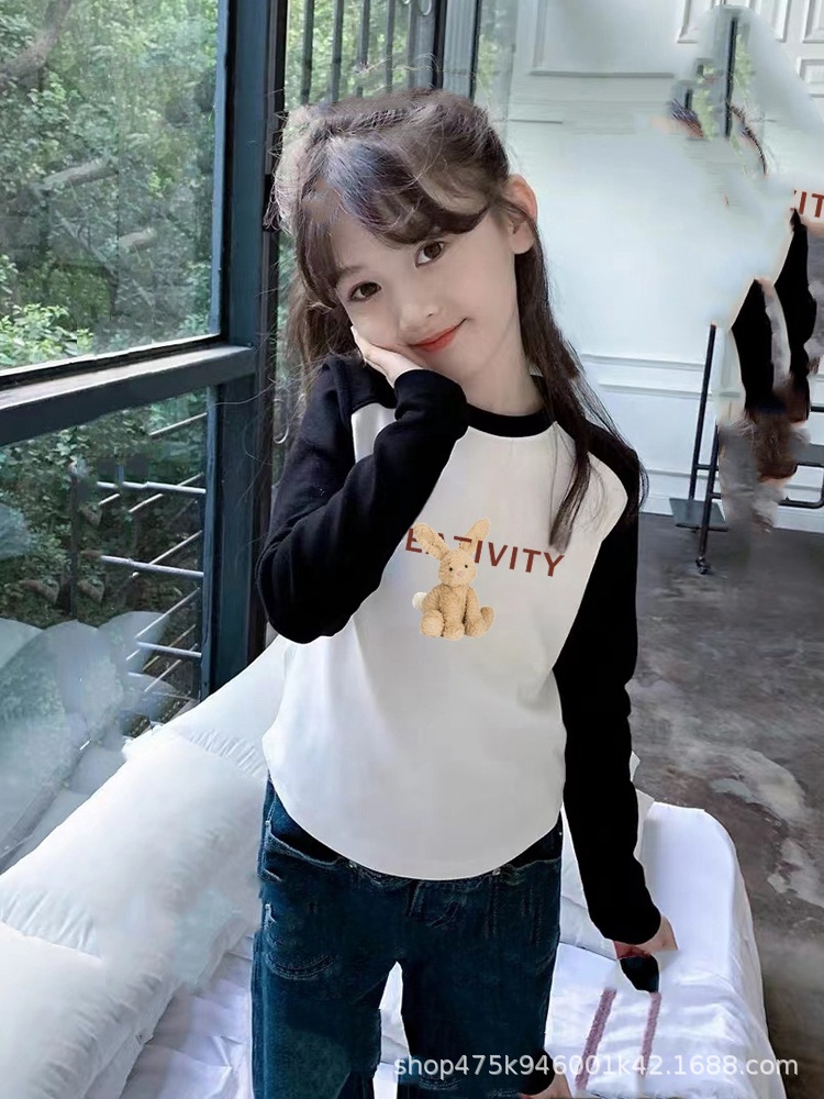 도매 크로스 보더 어린이 한국 슬림 긴 소매 티셔츠 여아 면 라운드 넥 탑 여아 만화 베이스 셔츠 조수스토어 가기
