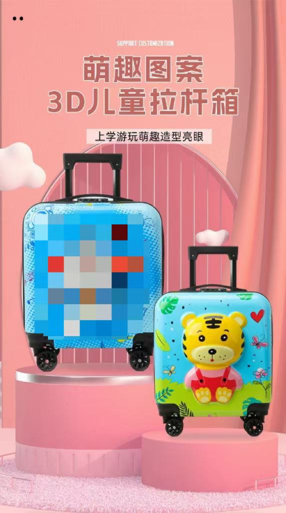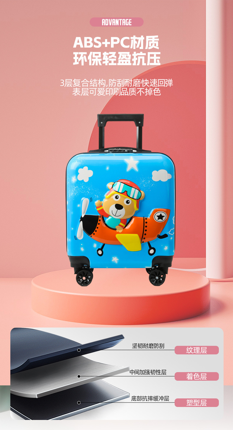 새로운 3D 만화 어린이용 여행 가방, 회전 바퀴가 달린 조용한 기내용 캐리어, 여행용 트롤리 가방 도매스토어 가기