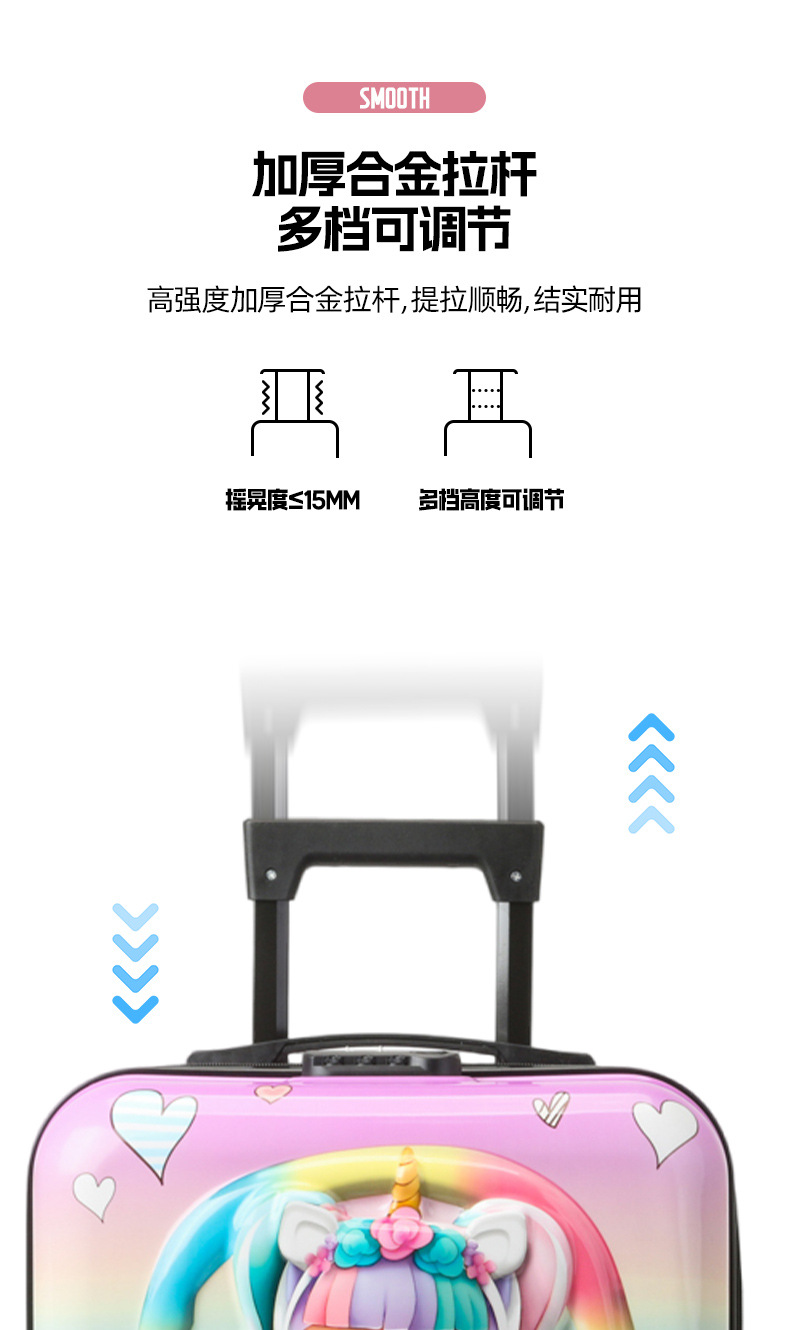 새로운 3D 만화 어린이용 여행 가방, 회전 바퀴가 달린 조용한 기내용 캐리어, 여행용 트롤리 가방 도매