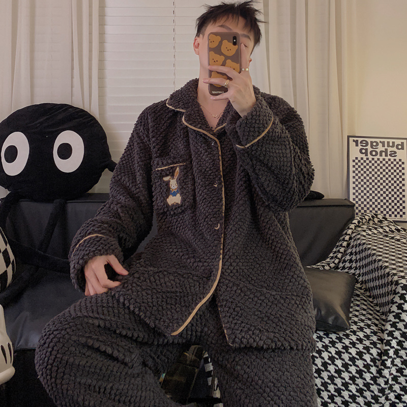 피터 래빗 커플 잠옷 가을과 겨울 산호 양털 두꺼운 따뜻한 만화 플란넬 남성과 여성의 가정 의류 세트