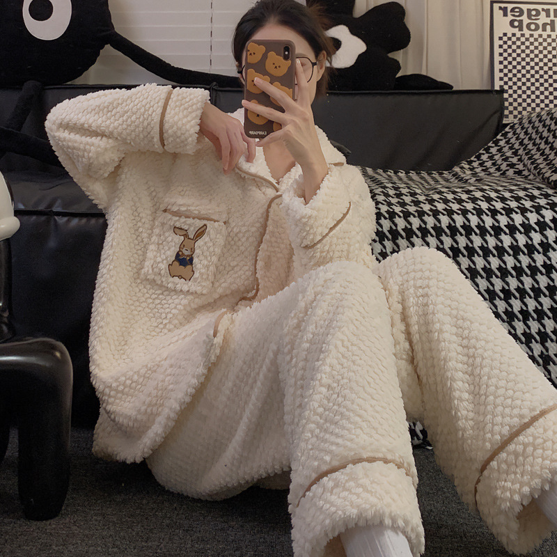 피터 래빗 커플 잠옷 가을과 겨울 산호 양털 두꺼운 따뜻한 만화 플란넬 남성과 여성의 가정 의류 세트스토어 가기