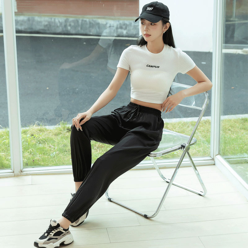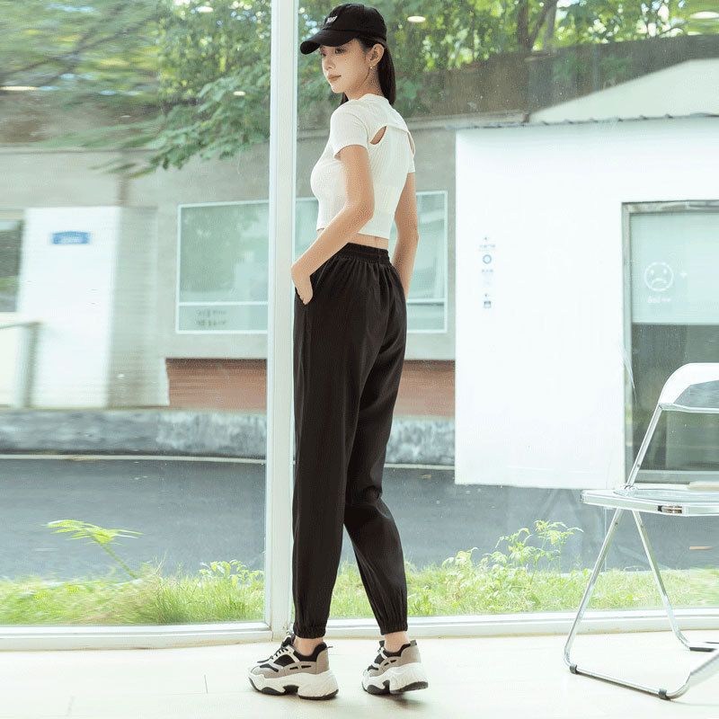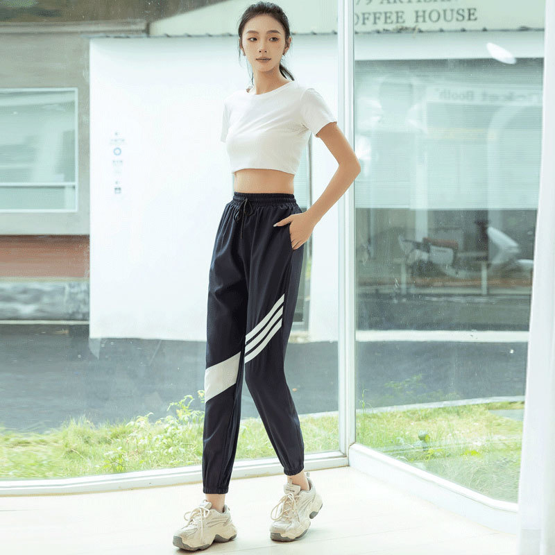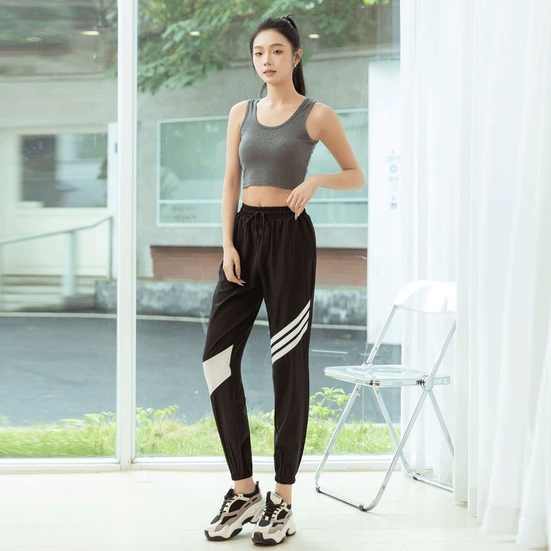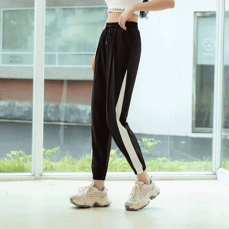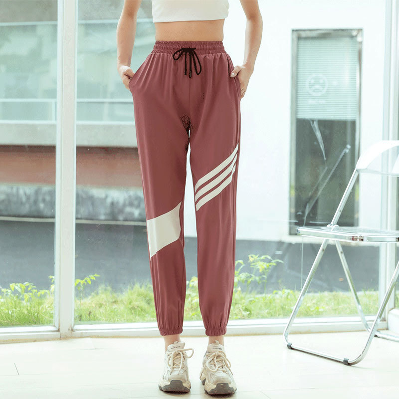 새로운 스포츠 바지 여성용 스트레치 허리 졸라매는 끈 슬리밍 남성 및 여성용 루즈한 캐주얼 바지 얇은 속건 바지