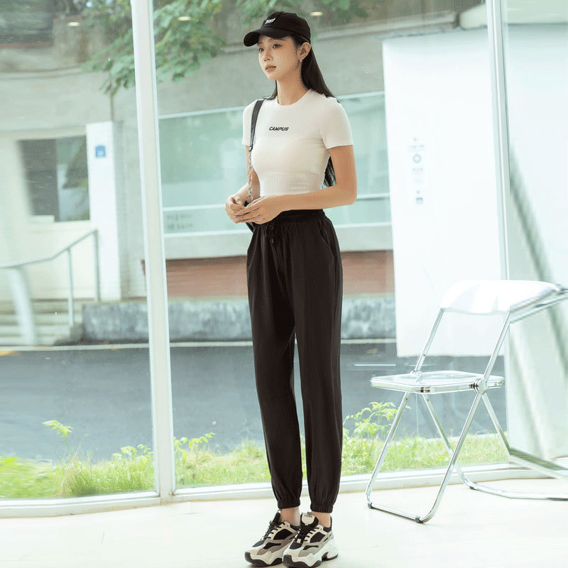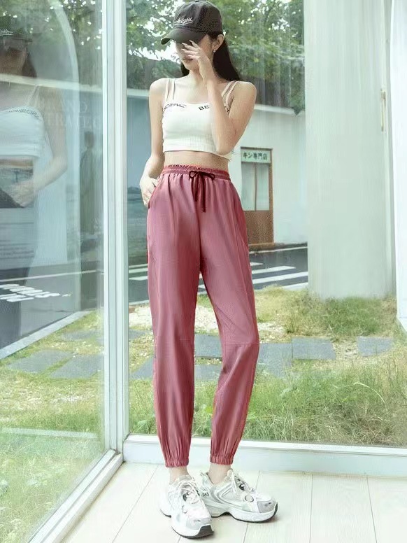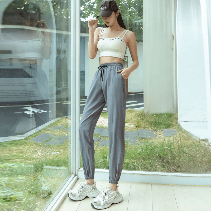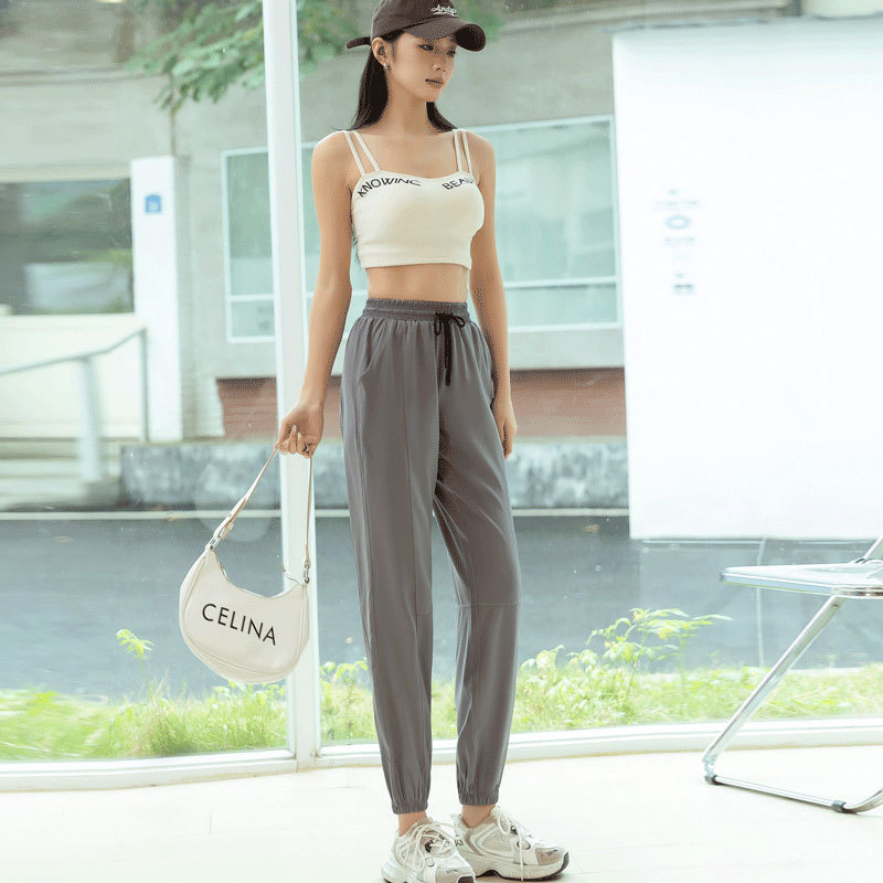 새로운 스포츠 바지 여성용 스트레치 허리 졸라매는 끈 슬리밍 남성 및 여성용 루즈한 캐주얼 바지 얇은 속건 바지스토어 가기