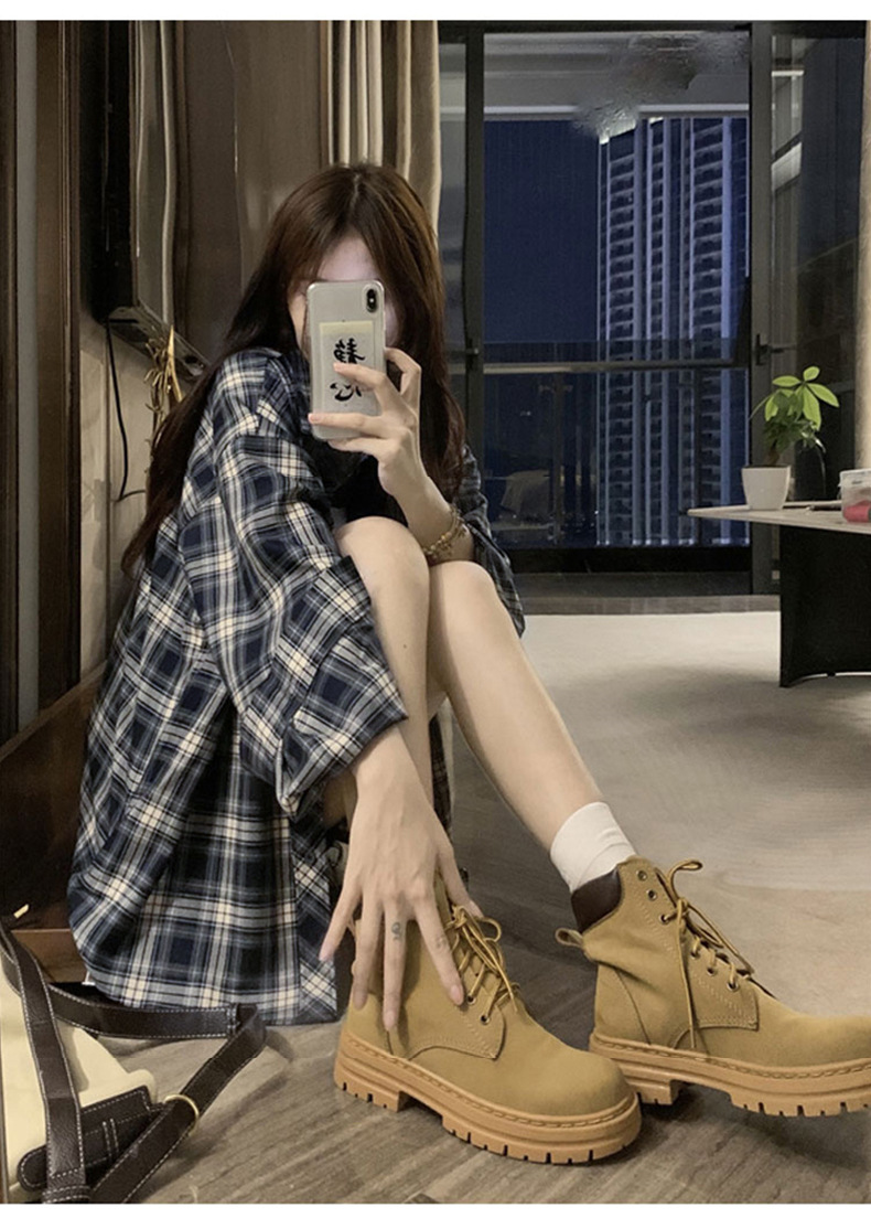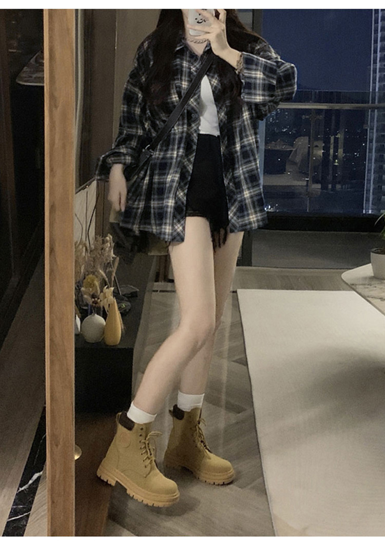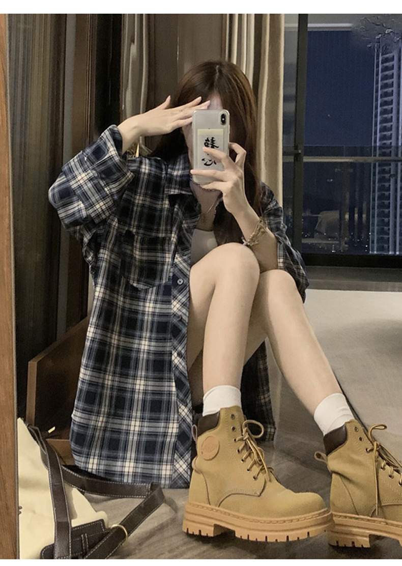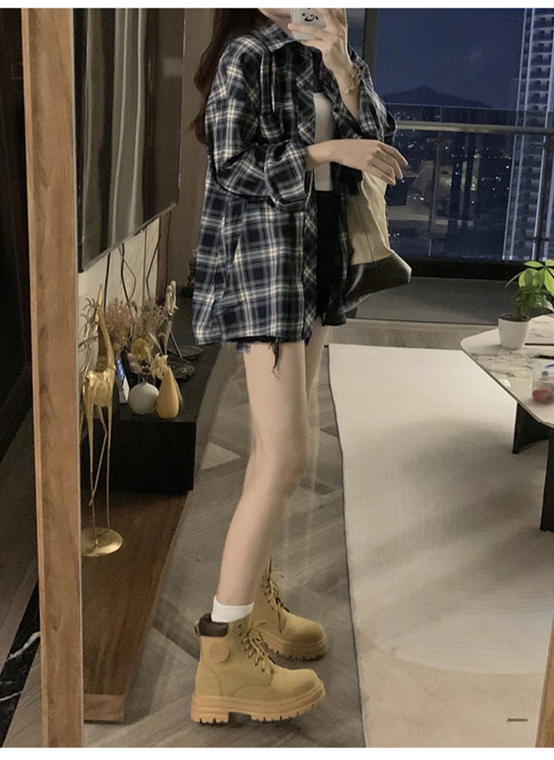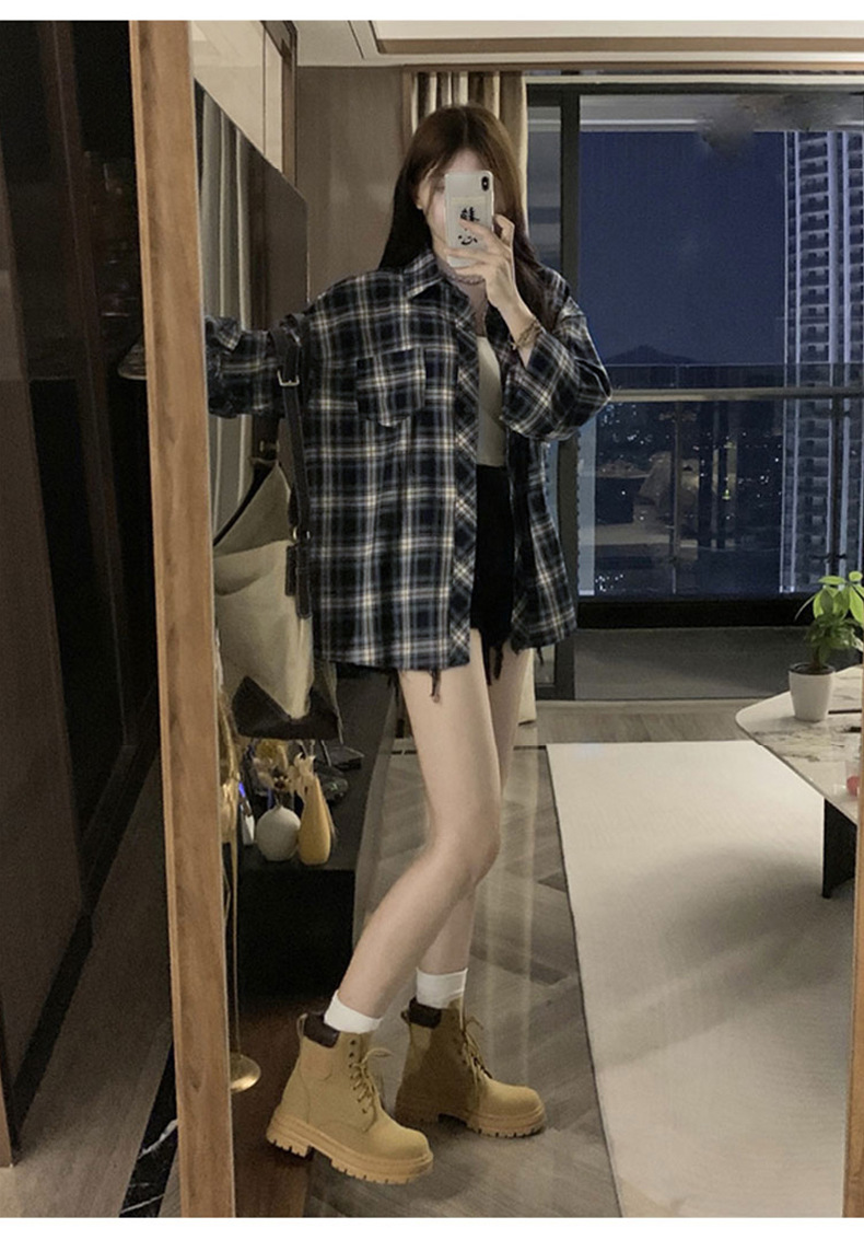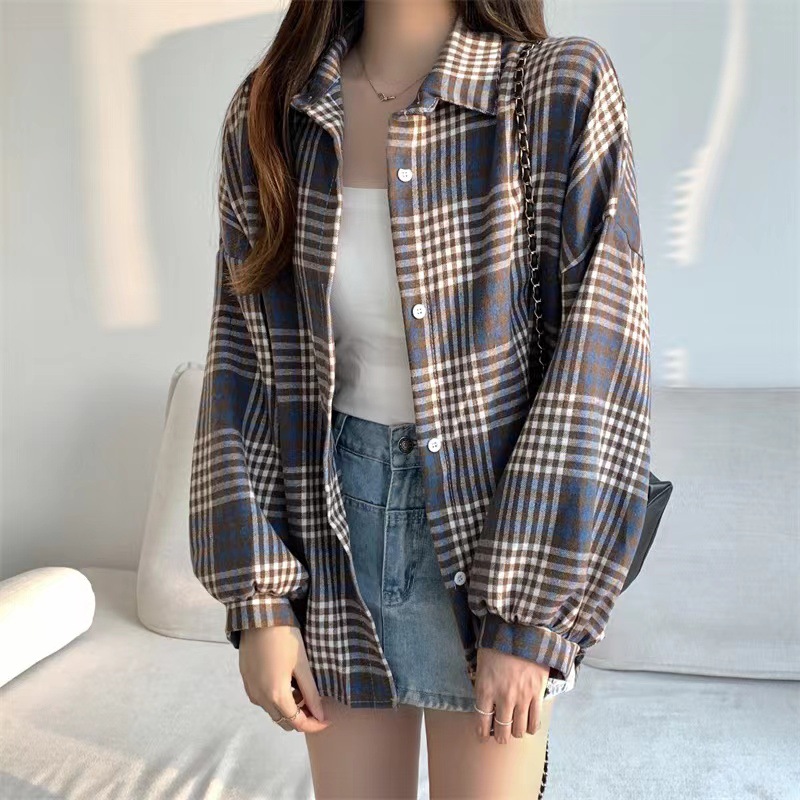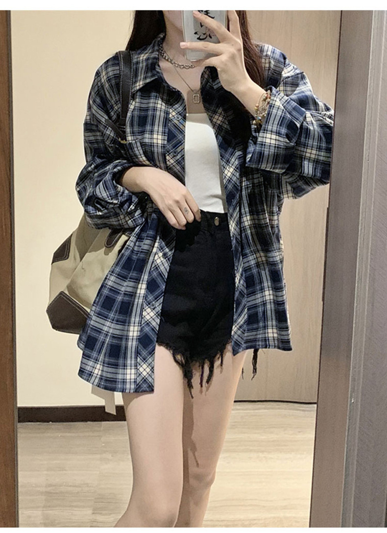 셔츠 코트 자외선 차단제 셔츠 얇은 이른 가을 긴팔 탑 하이 엔드 아메리칸 스타일 레트로 홍콩 스타일 여성용 격자 무늬 셔츠스토어 가기