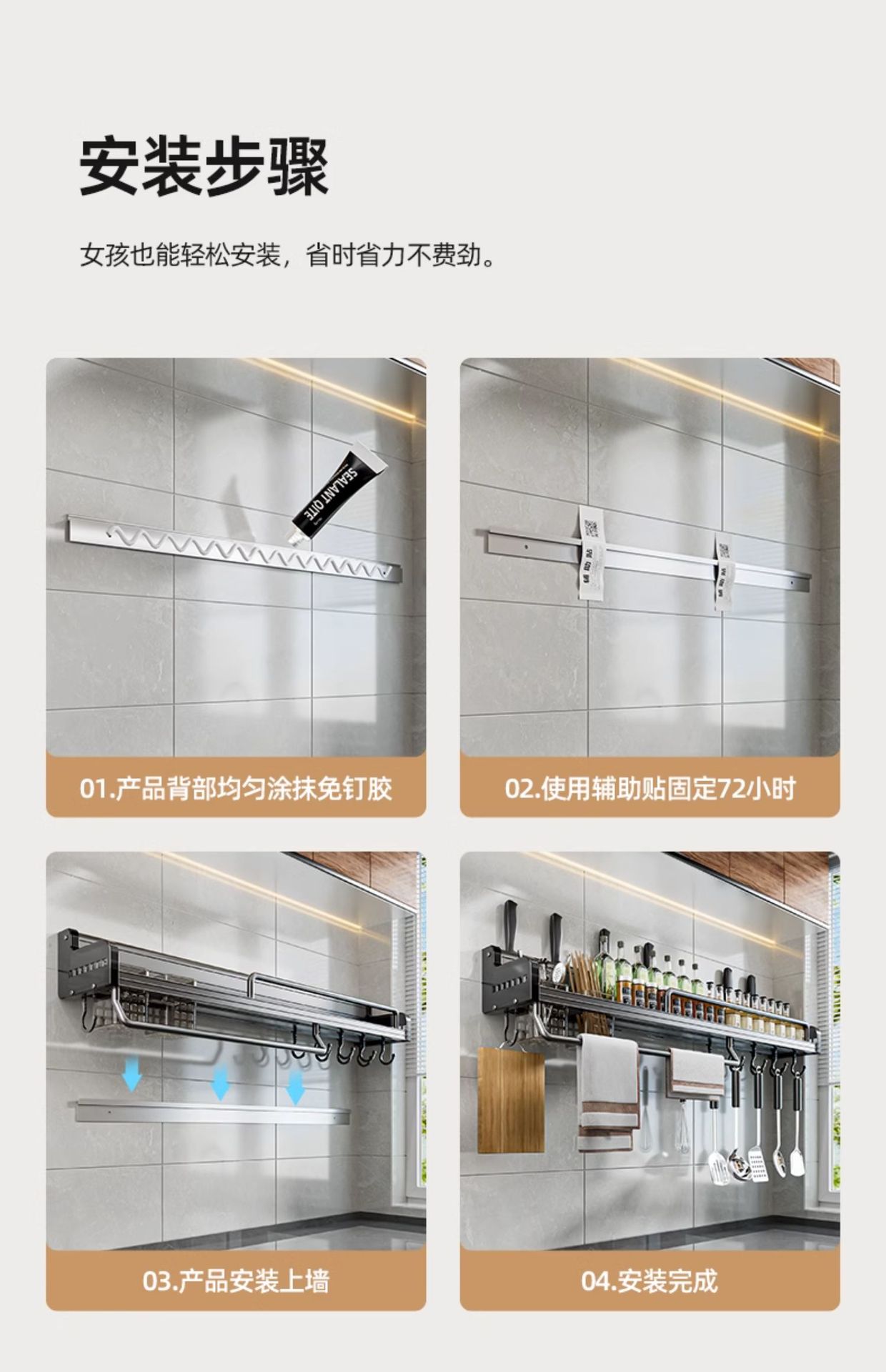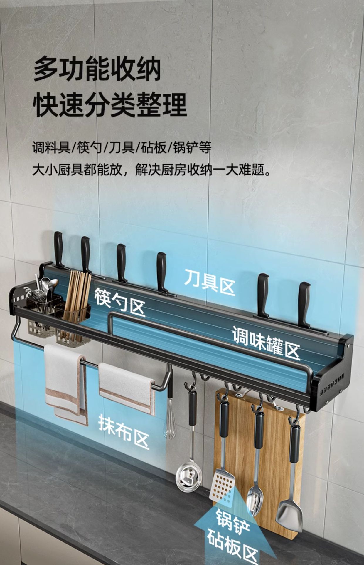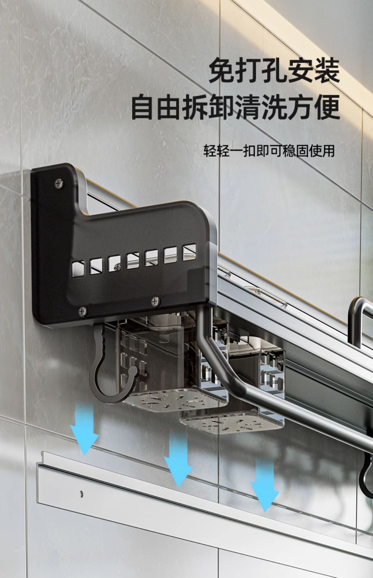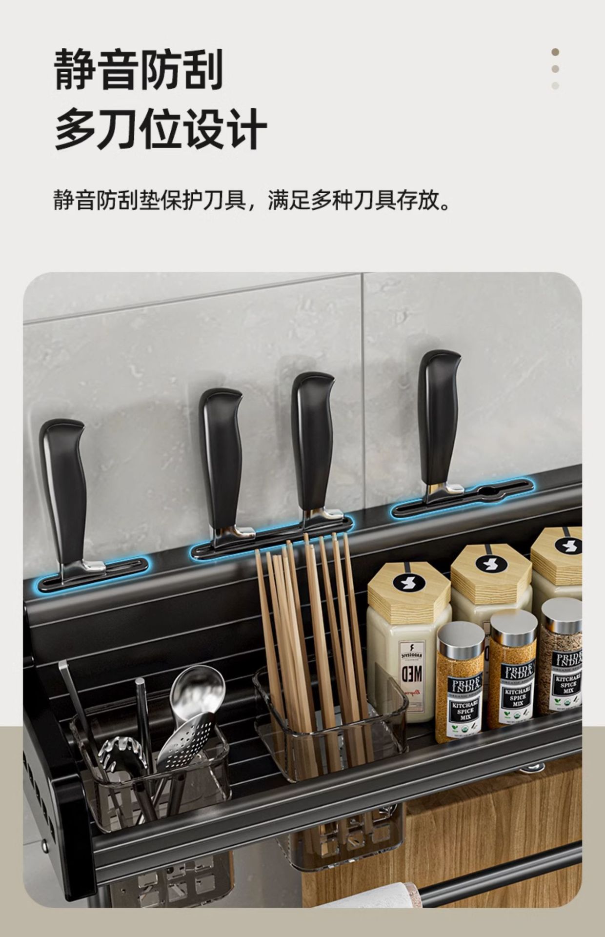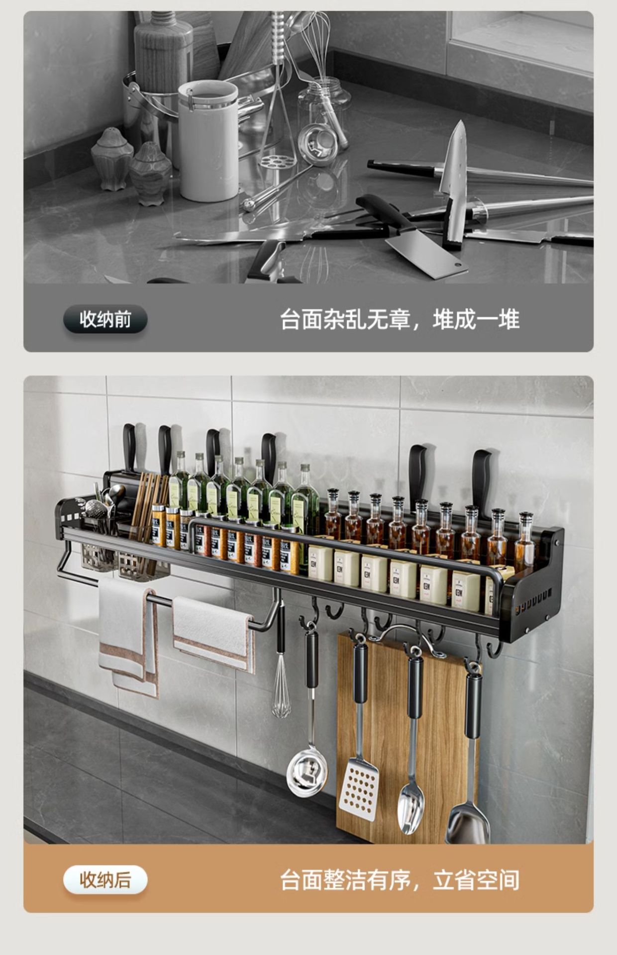 주방 수납 랙 펀치 프리 다기능 가정용 벽걸이 형 조미료 젓가락 나이프 홀더 보관 랙