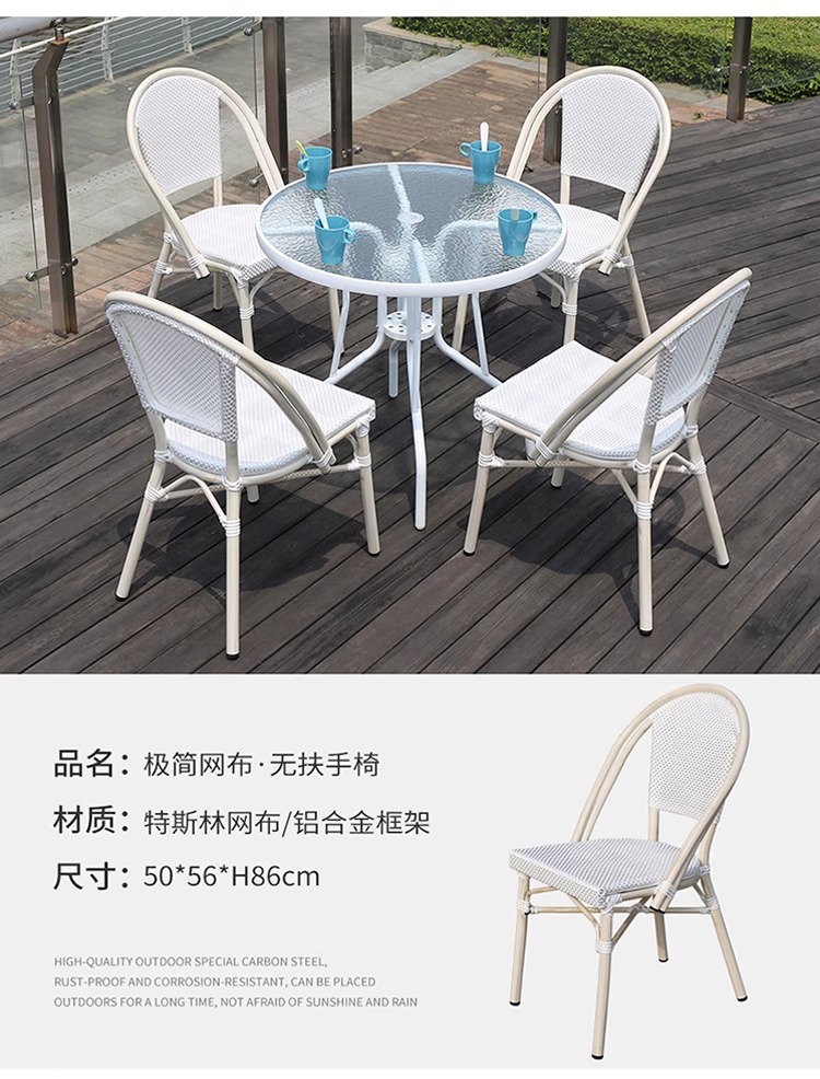 야외 메쉬 의자, 방수 및 자외선 차단제, 야외 등나무 의자, 발코니 야외 야외 카페, 밀크티 가게 테이블 및 의자