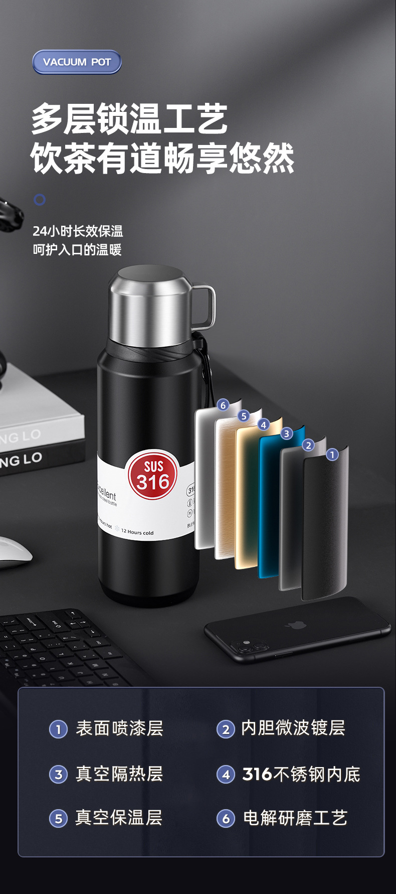 316 스테인레스 스틸 대용량 보온병 컵 남성용 야외 스포츠 휴대용 주전자 손잡이 인쇄 로고 도매