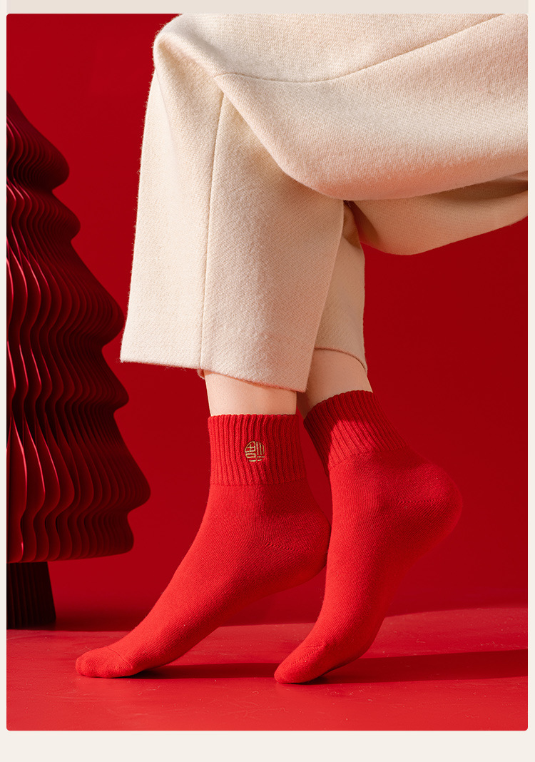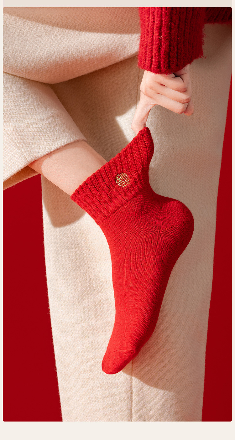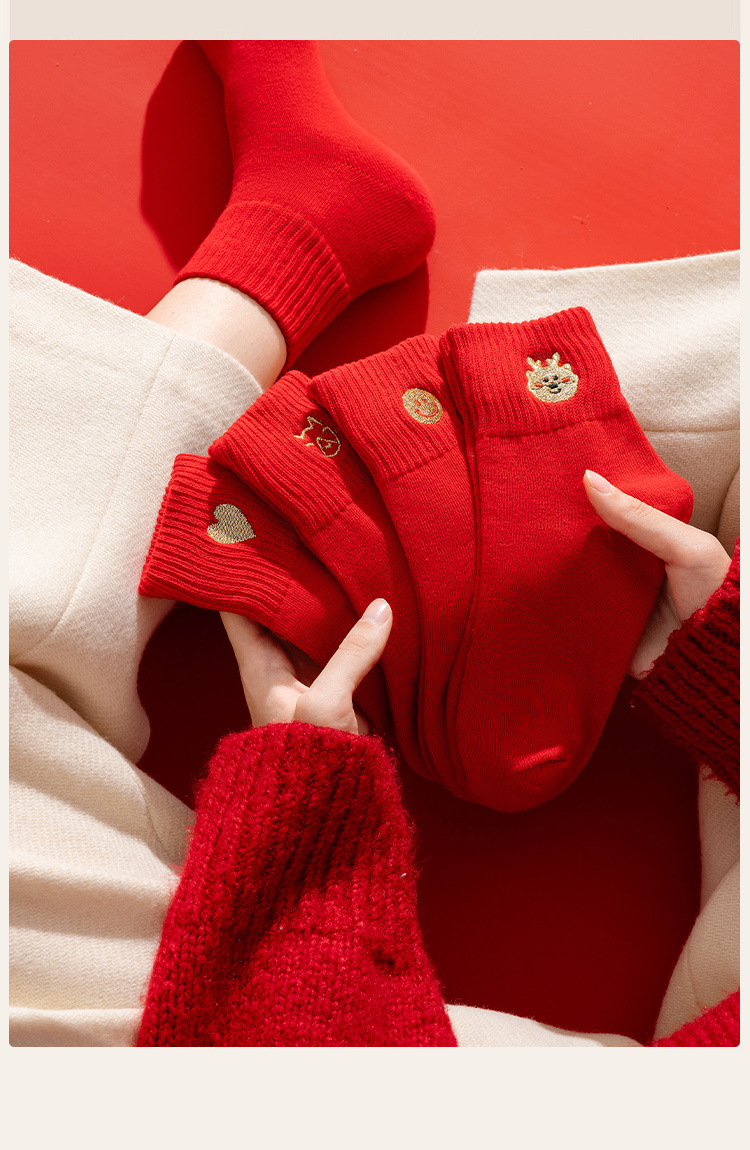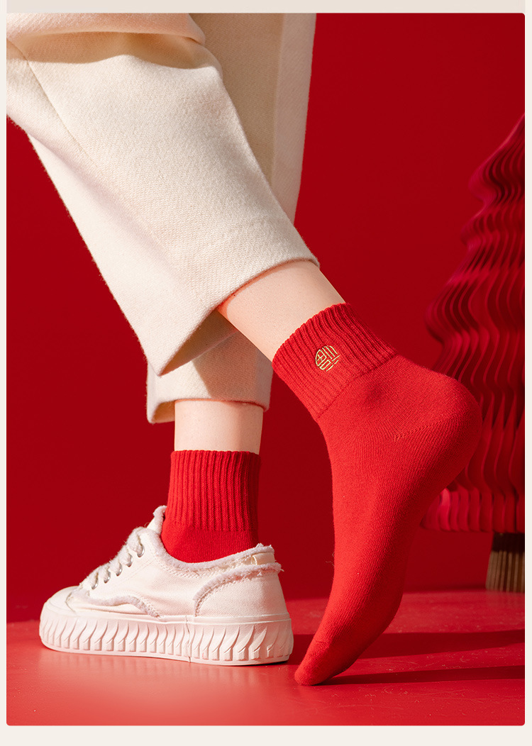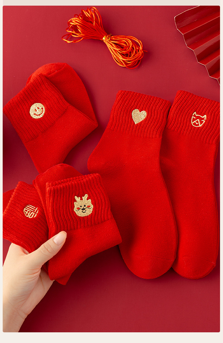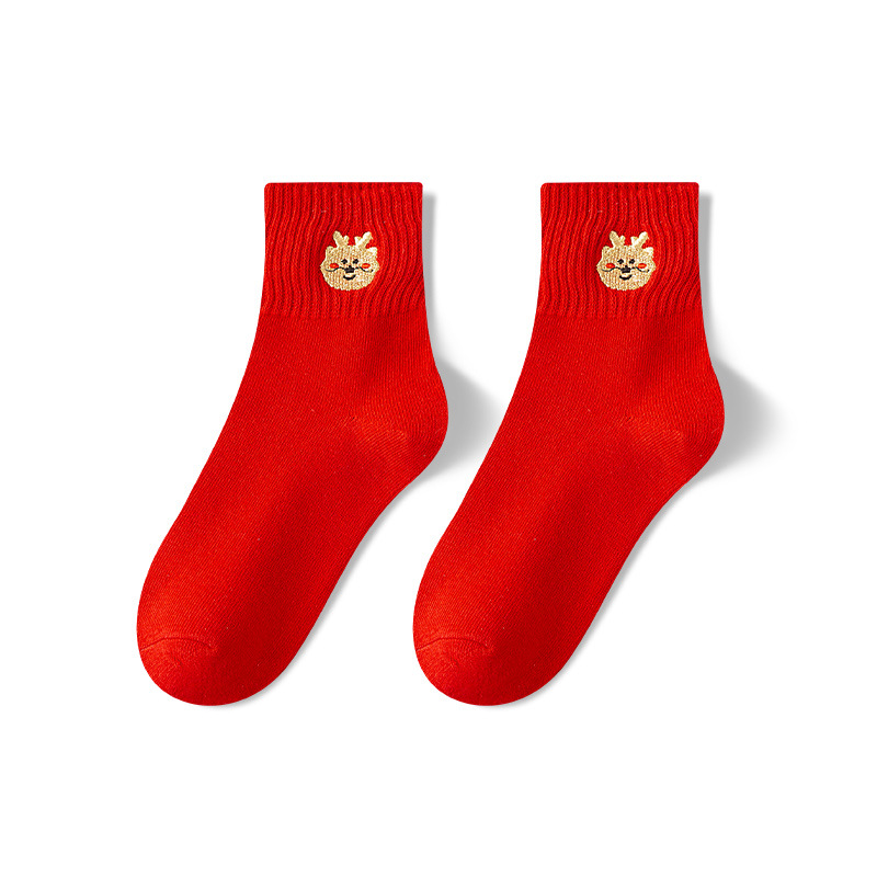 빨간 양말 여자의 가을과 겨울 스타킹 자수 커플 결혼식 2024 드래곤 이어 면화 양말 머리카락 세대스토어 가기