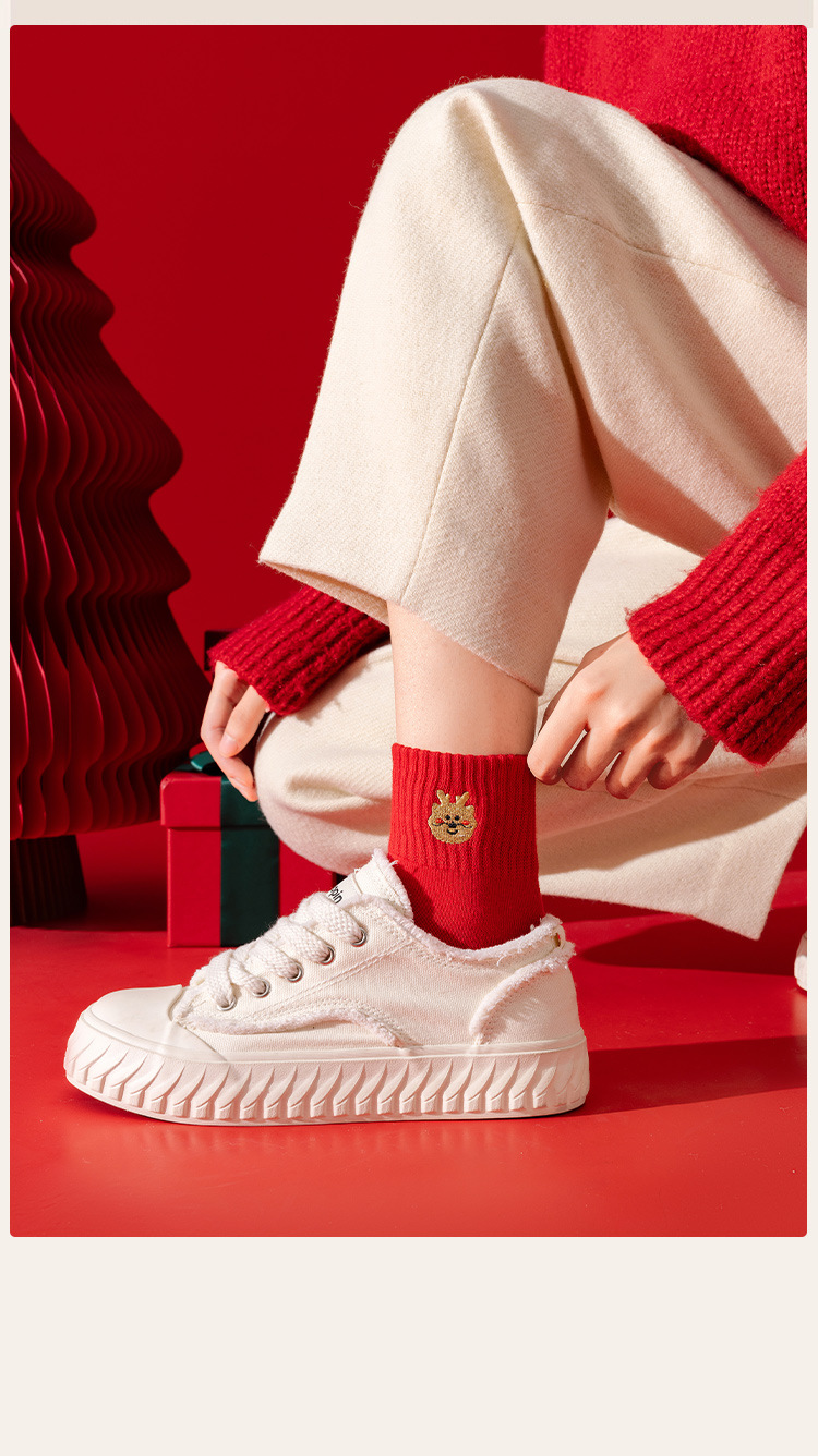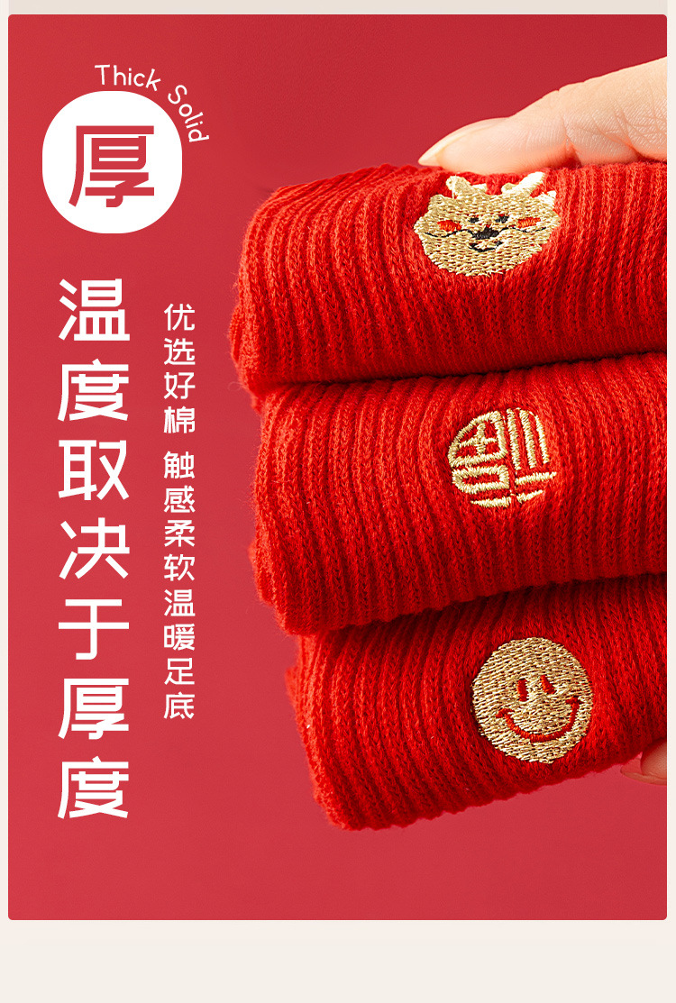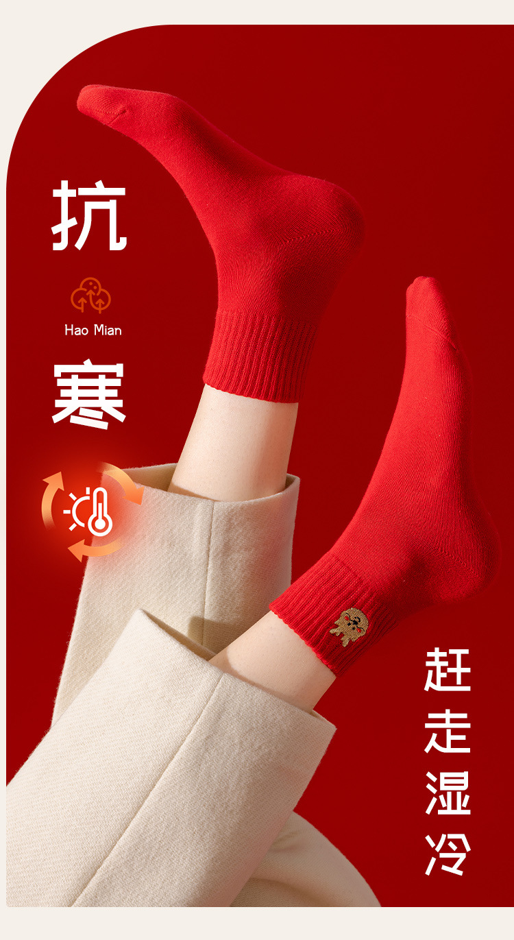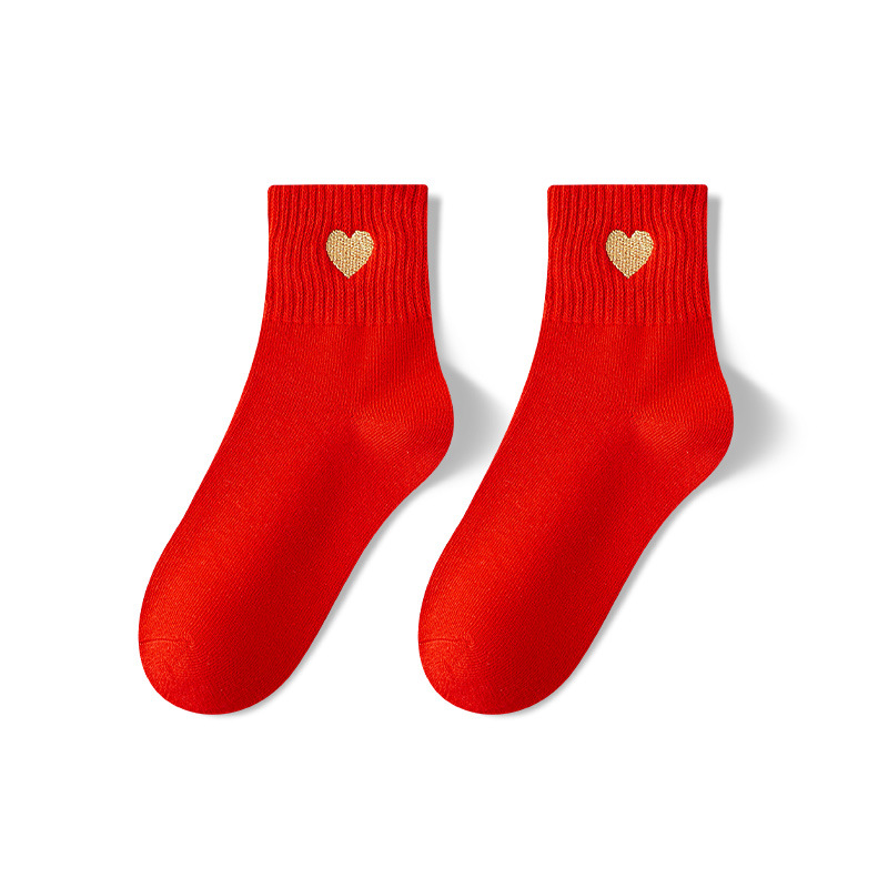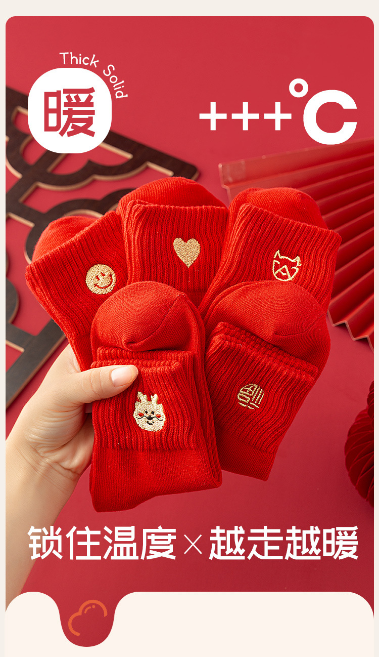빨간 양말 여자의 가을과 겨울 스타킹 자수 커플 결혼식 2024 드래곤 이어 면화 양말 머리카락 세대스토어 가기