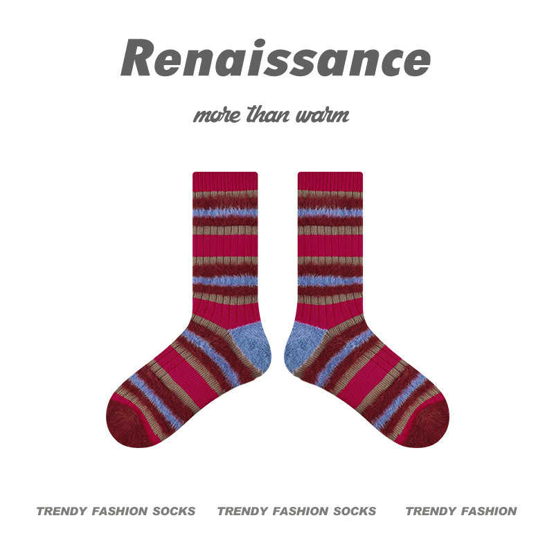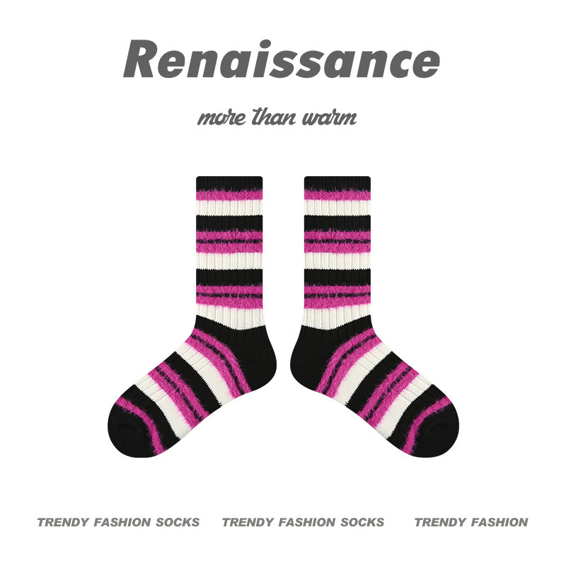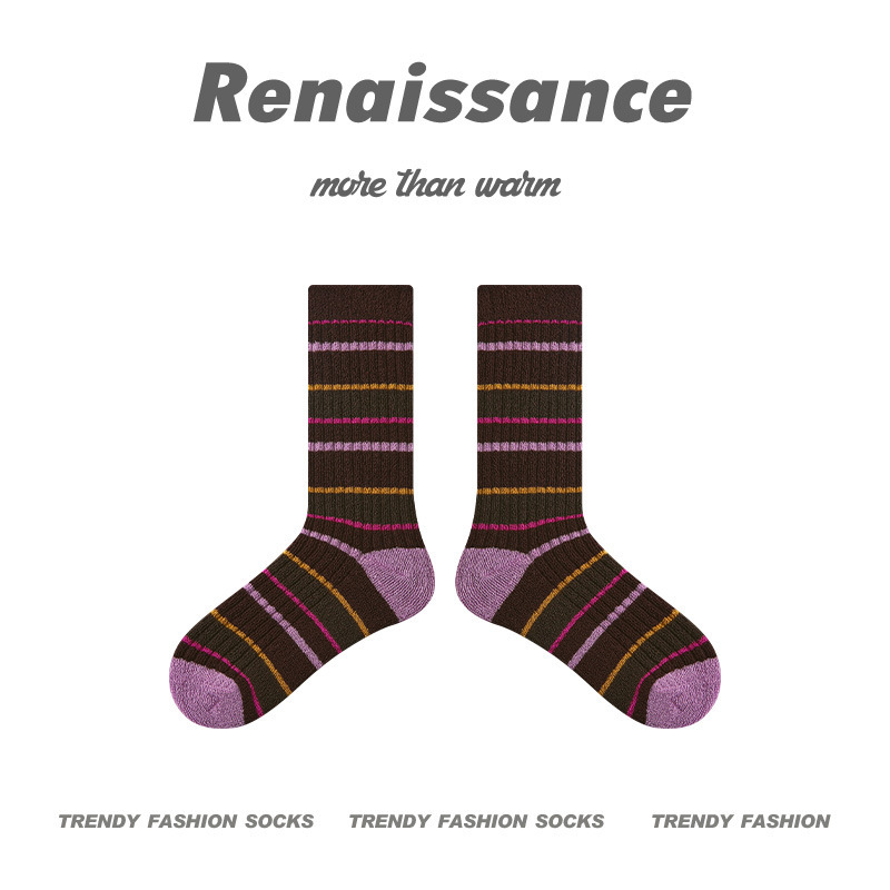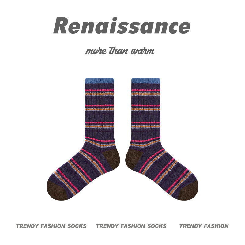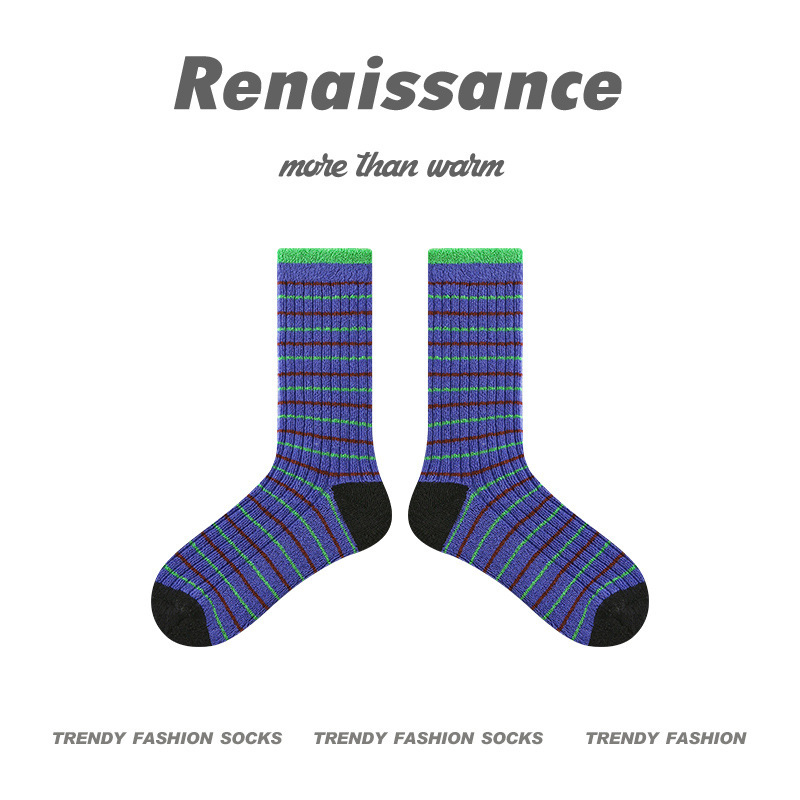 1 쌍-미드 튜브 양말 겨울 뉴 클래식 스트라이프 여성 양말 혼합 배치 단일 쌍 따뜻한 신장 면화 양말