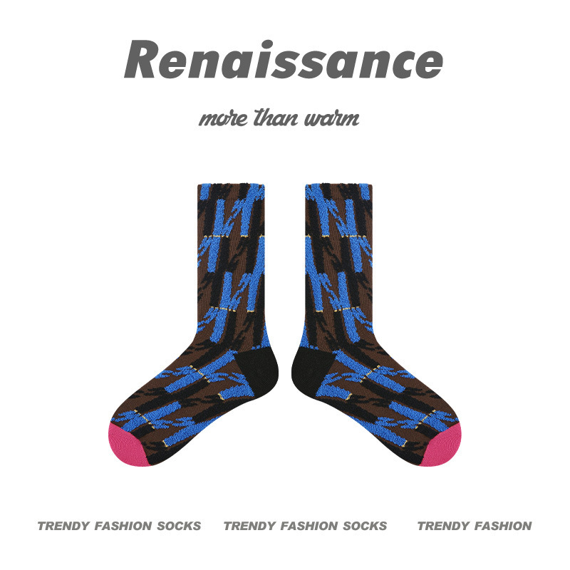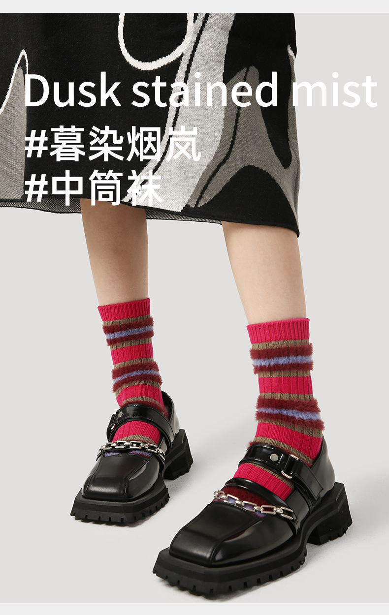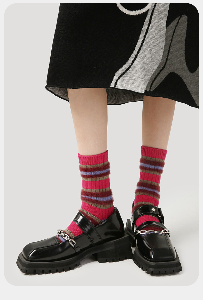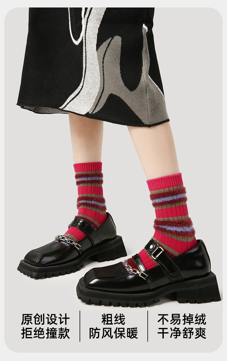 1 쌍-미드 튜브 양말 겨울 뉴 클래식 스트라이프 여성 양말 혼합 배치 단일 쌍 따뜻한 신장 면화 양말