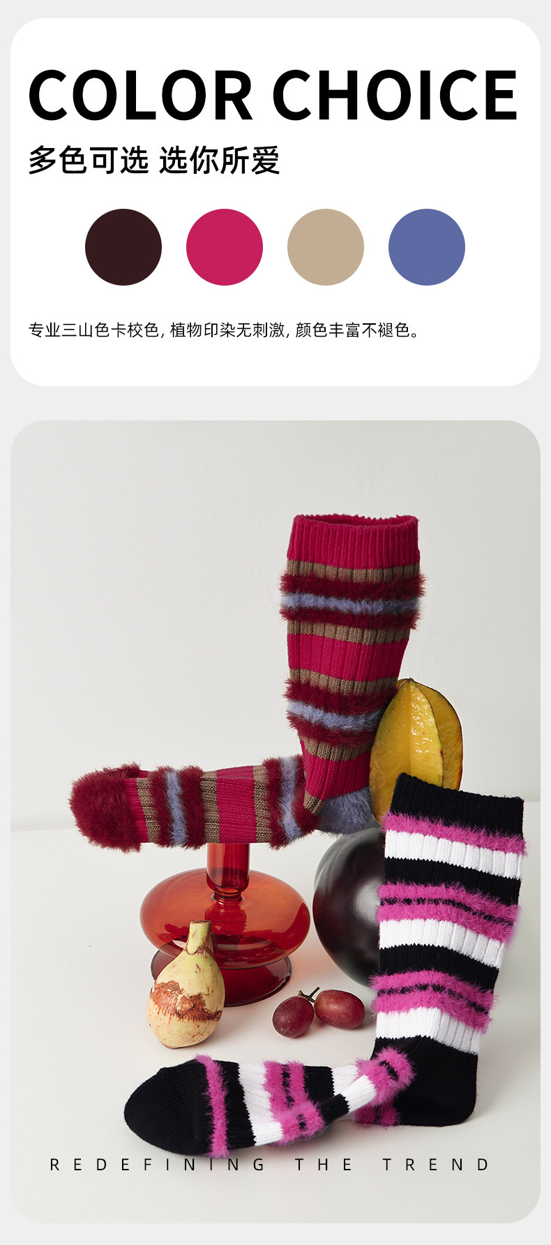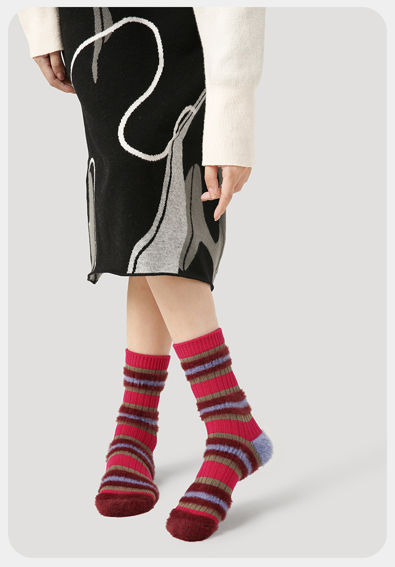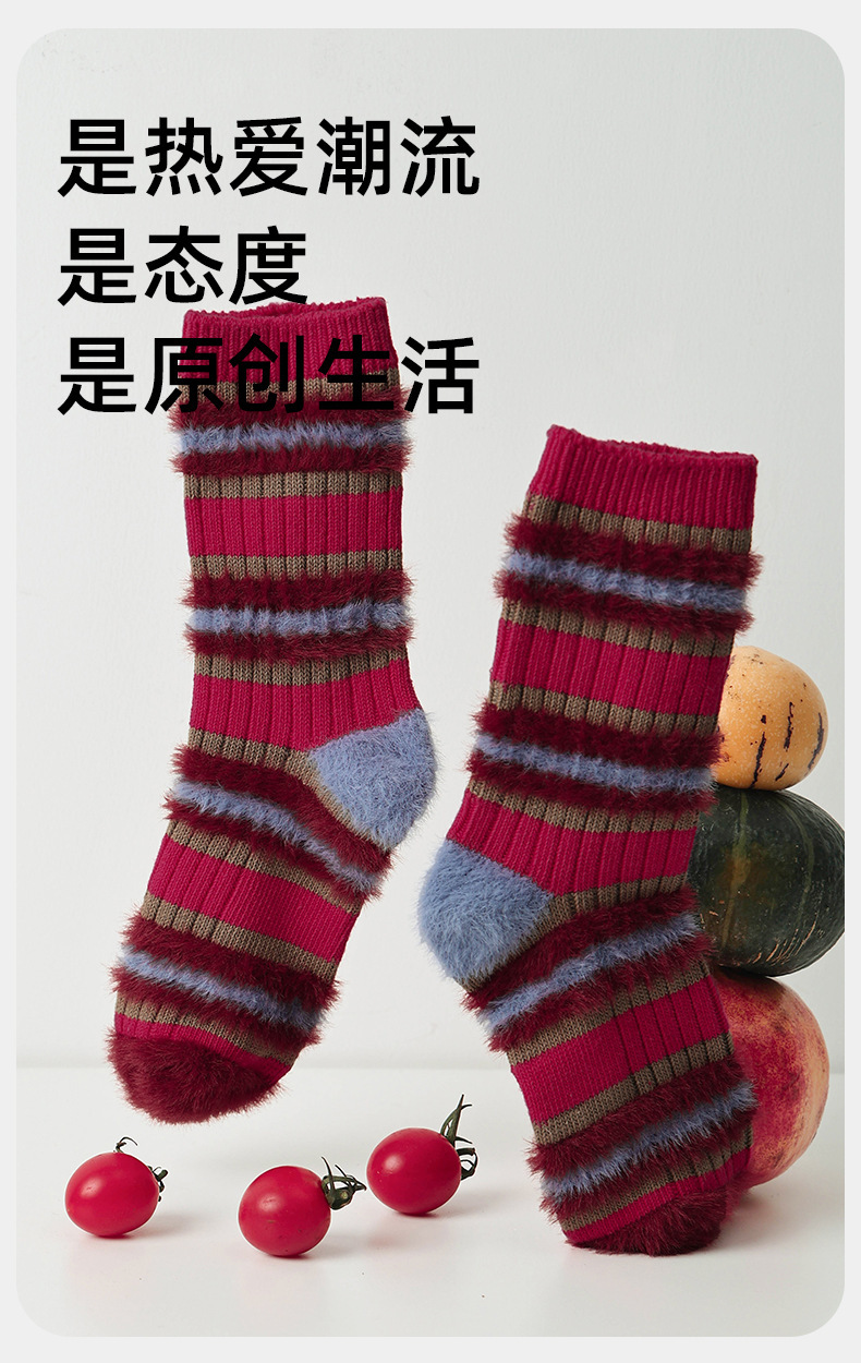 1 쌍-미드 튜브 양말 겨울 뉴 클래식 스트라이프 여성 양말 혼합 배치 단일 쌍 따뜻한 신장 면화 양말스토어 가기
