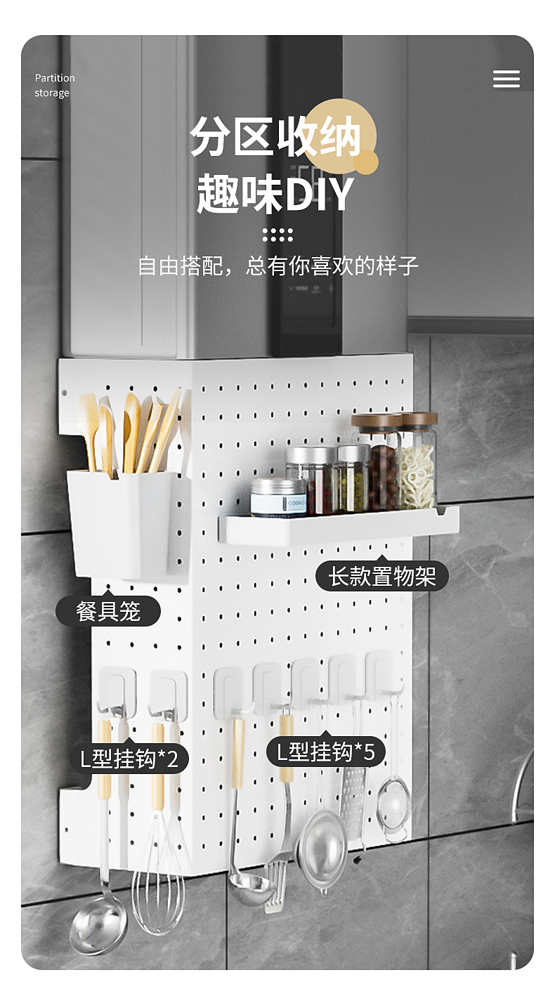 • 고급 애쉬 (35_35_15) 보관 조합 2: 냄비 덮개 랙 + 보관 상자 + 교수형 막대 + L 자형 후크 _5