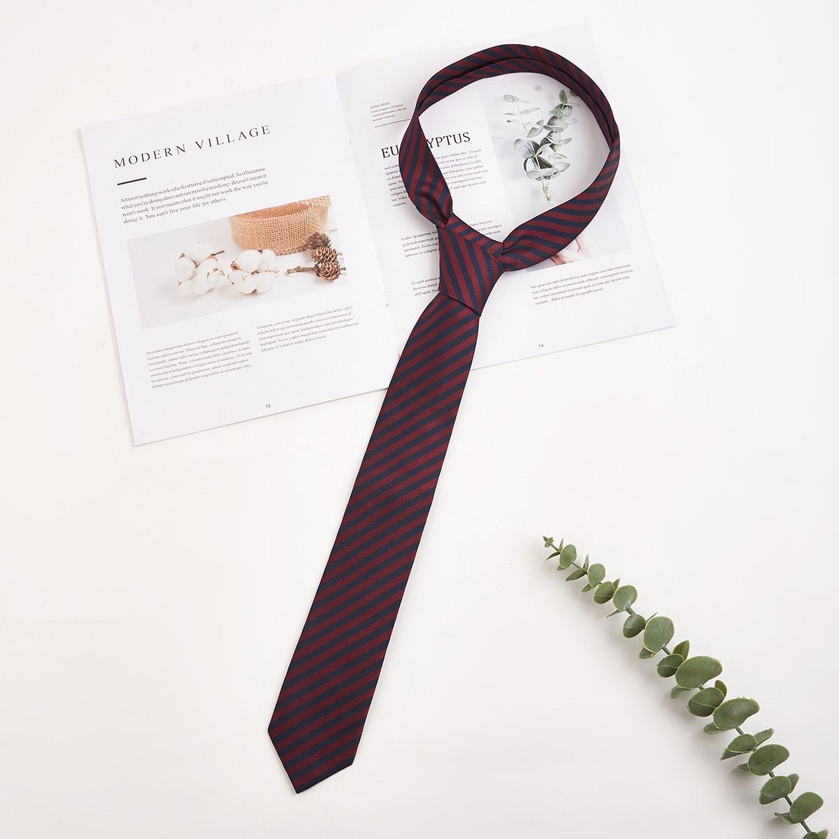 • 버건디 및 화이트 스트라이프 타이 프리
