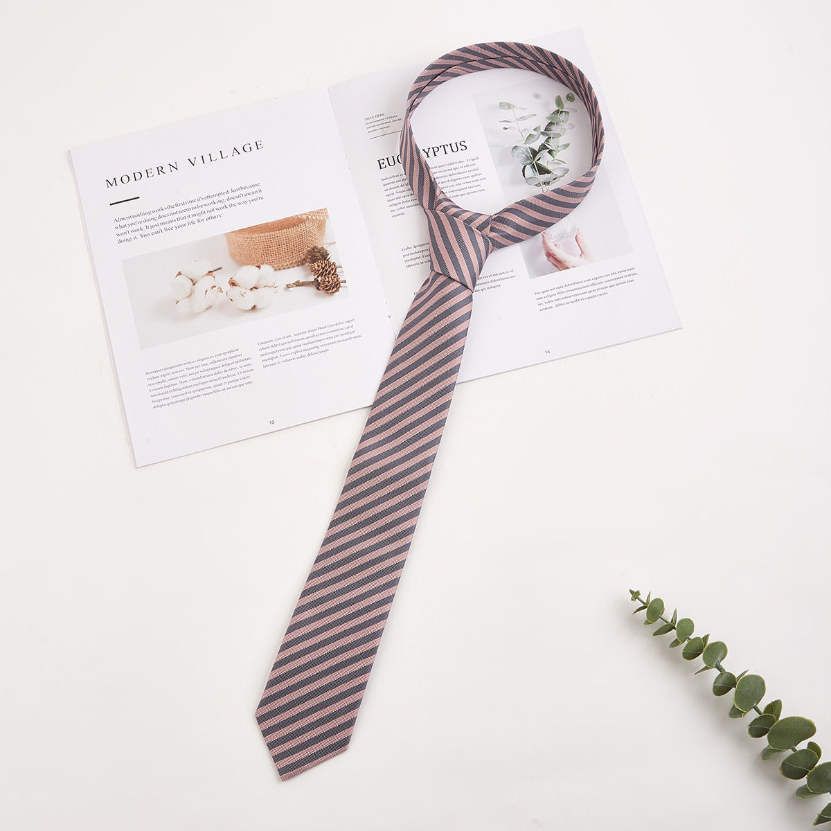 • 그레이 핑크 스트라이프 핸드 타이