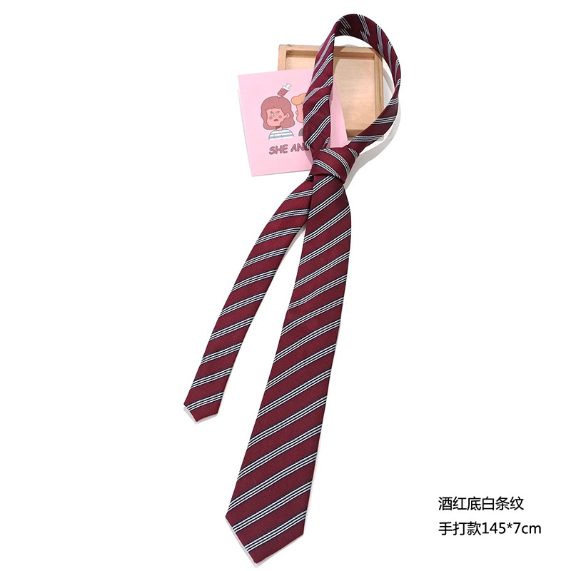 버건디 네이비 샴페인 줄무늬 넥타이 여학생 스타일 장식 jk 핸드 히트 소년 게으른 사람들 짧은 틈새 없음스토어 가기