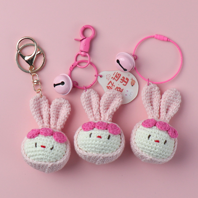 완성 된 수제 양모 뜨개질 만두 토끼 열쇠 고리 귀여운 창조적 인 작은 선물 열쇠 고리 가방 펜던트 도매
