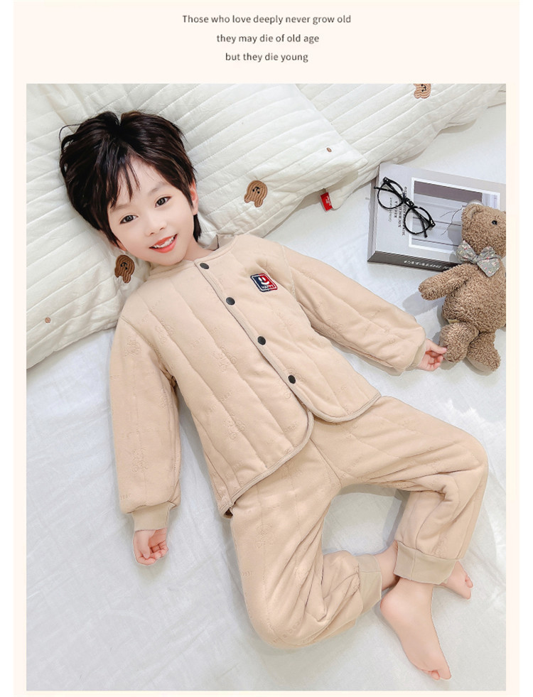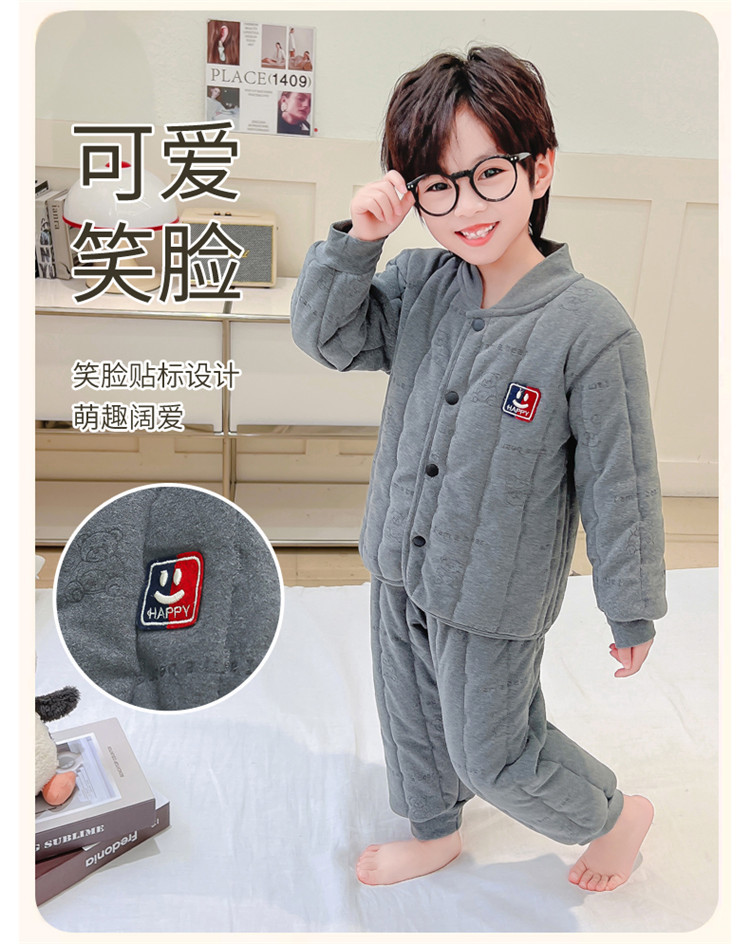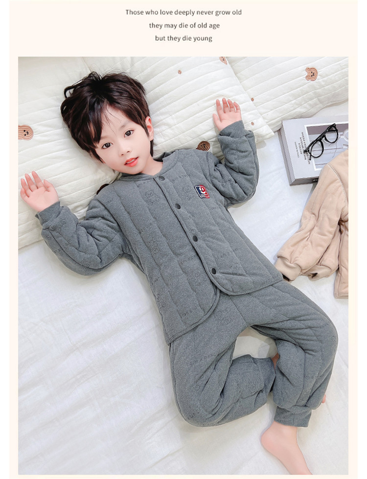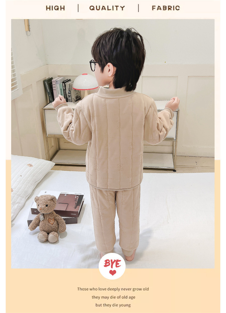 어린이 겨울 두꺼운 잠옷 한국식 소년 속옷 캐시미어 코튼 스탠드 칼라 홈 착용 3 층 퀼트 베이비 세트