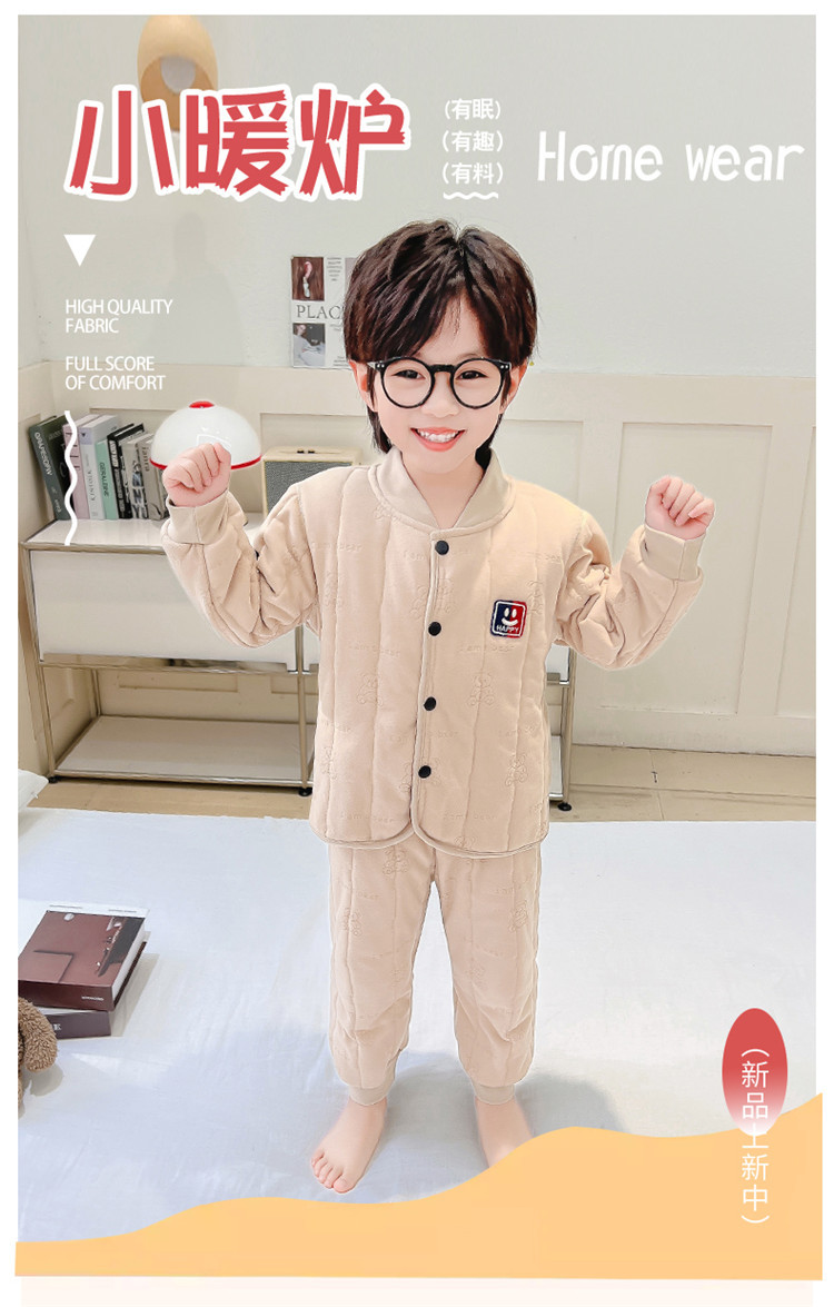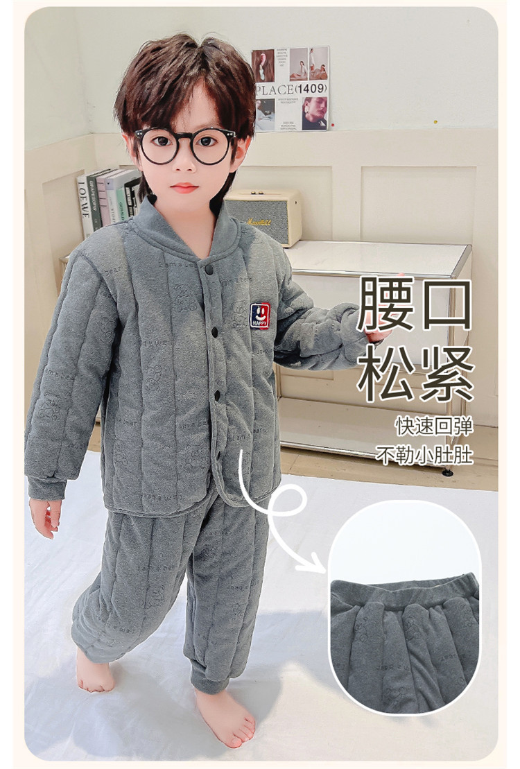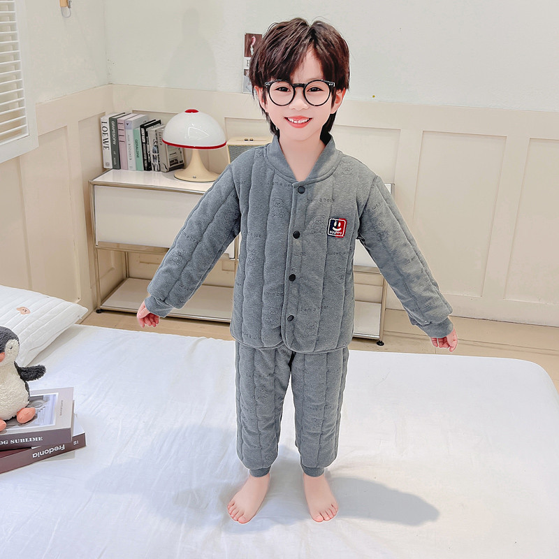 어린이 겨울 두꺼운 잠옷 한국식 소년 속옷 캐시미어 코튼 스탠드 칼라 홈 착용 3 층 퀼트 베이비 세트스토어 가기