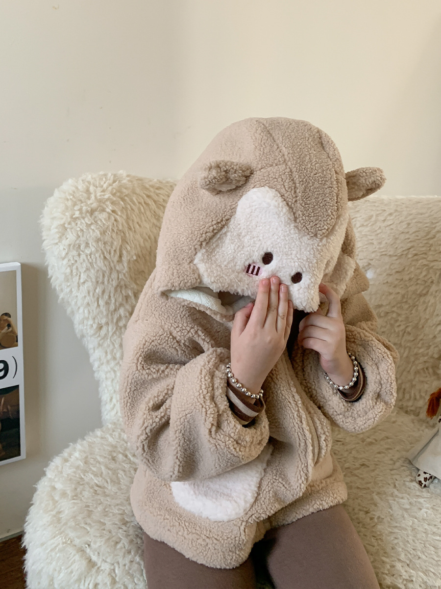 재고정리】웨이무 아동복 여아 양털 자켓 2024 겨울 신상 아동 한국 스타일 상의 여아용스토어 가기