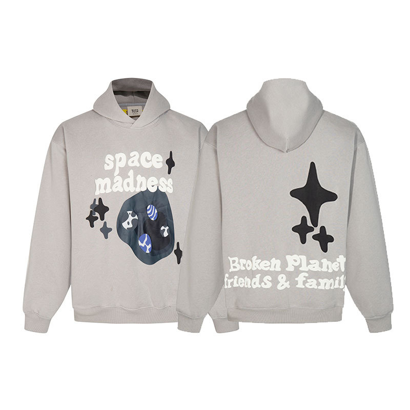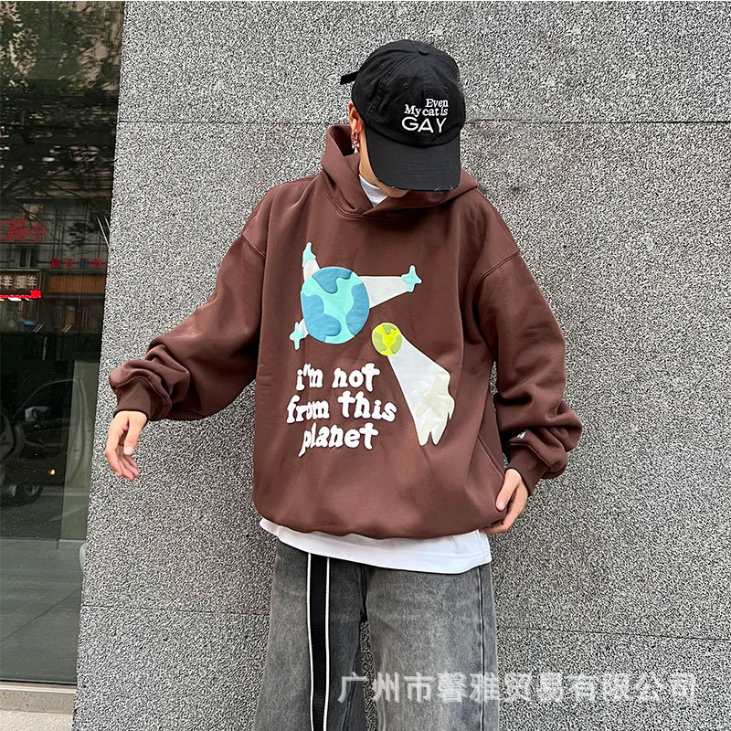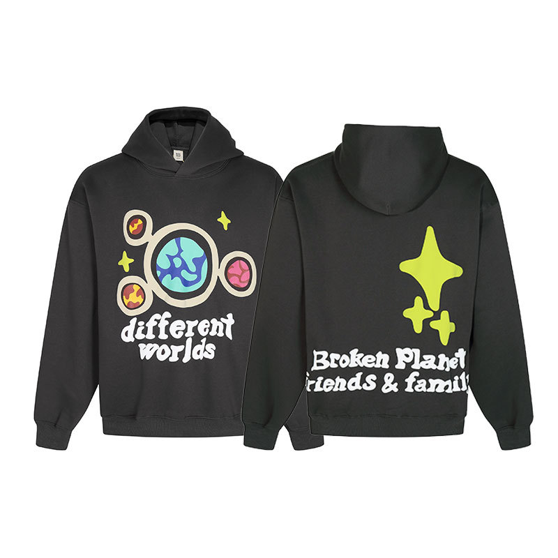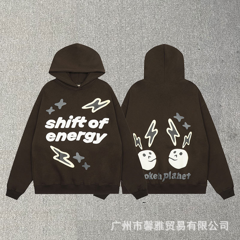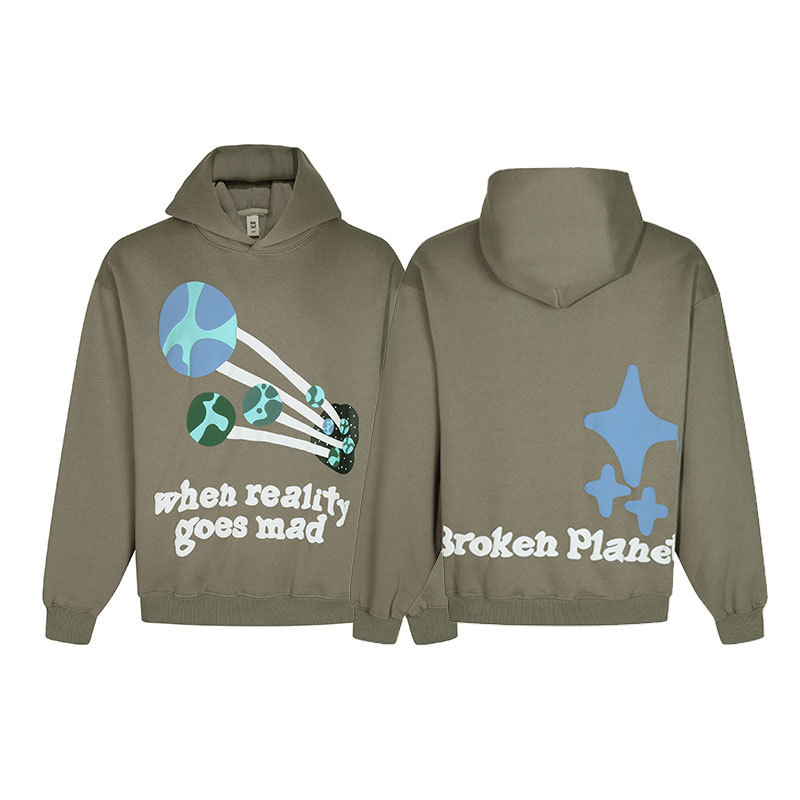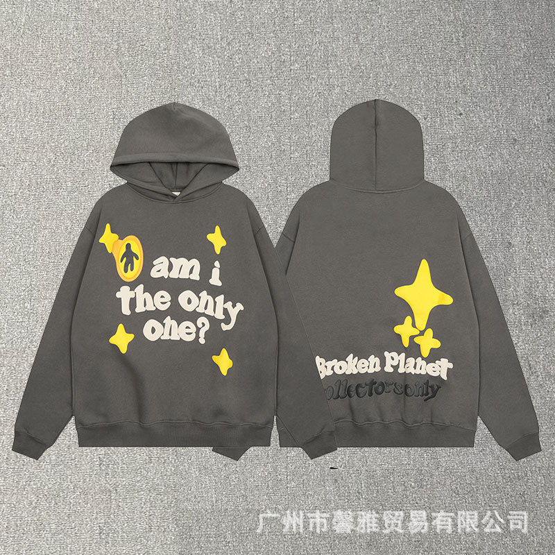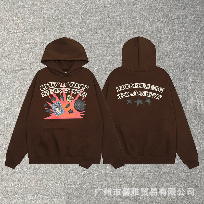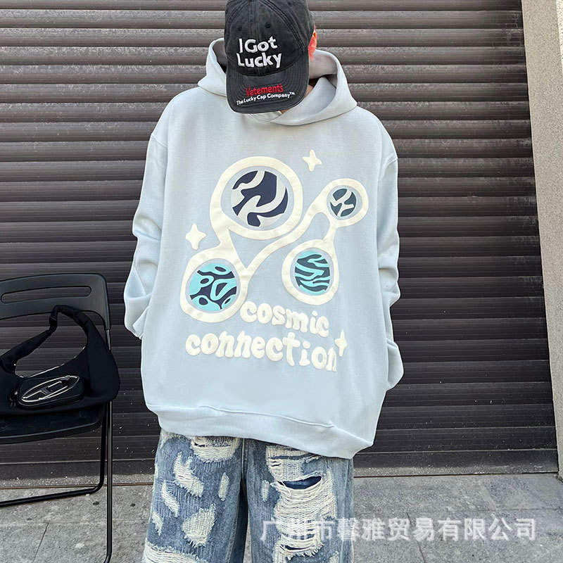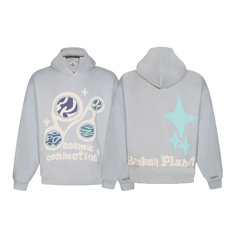깨진 행성 편지 거품 인쇄 깨진 행성 느슨한 캐주얼 양털 후드 셔츠 남성과 여성스토어 가기