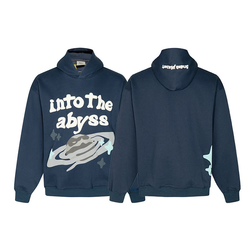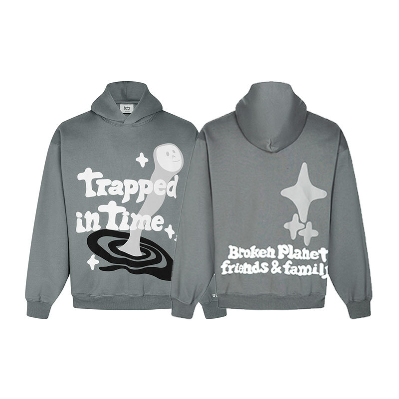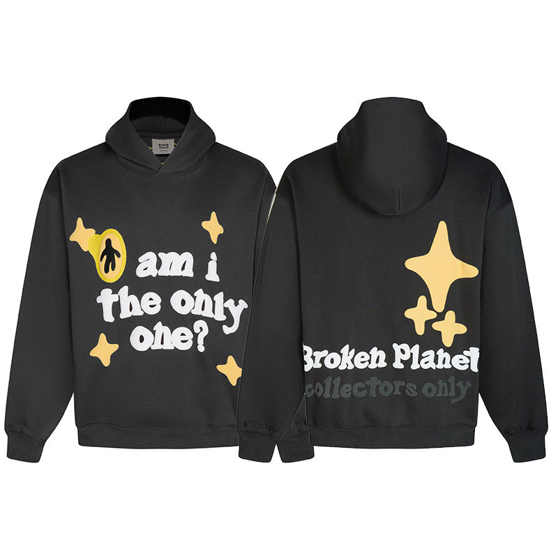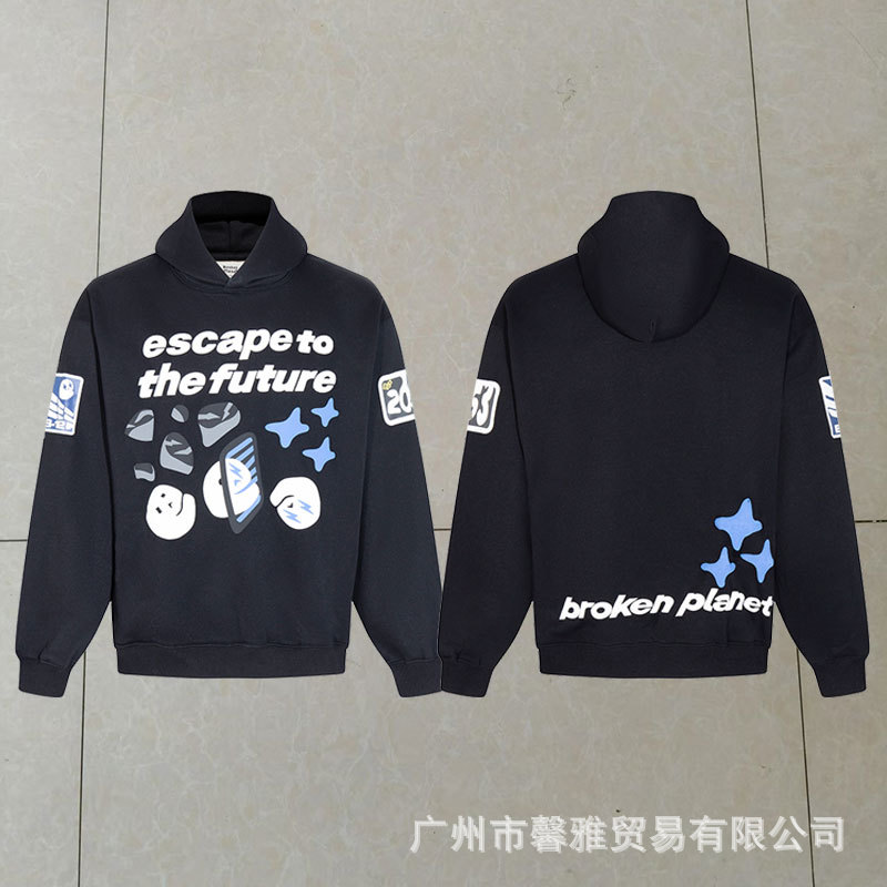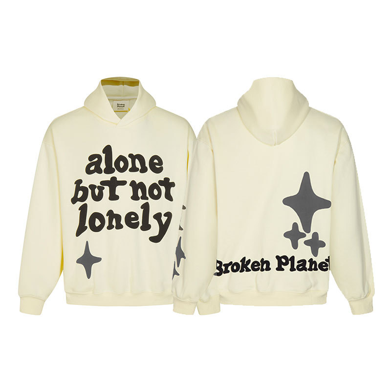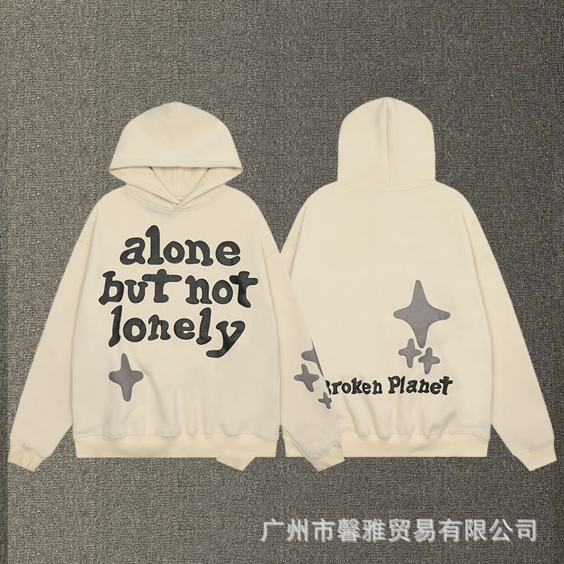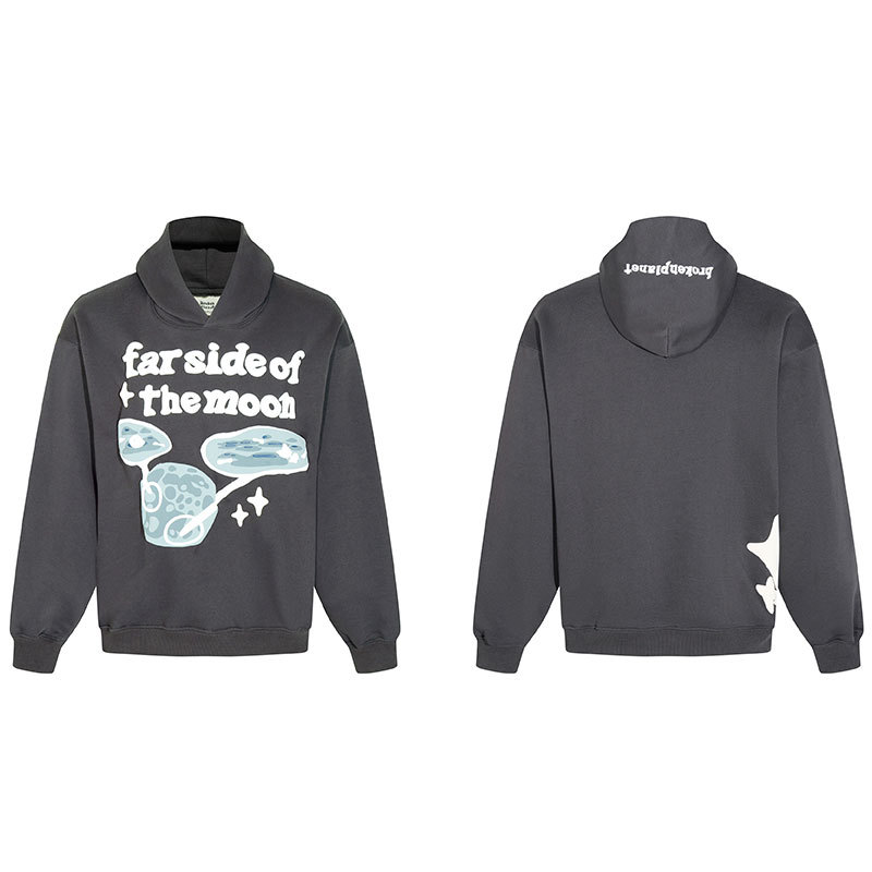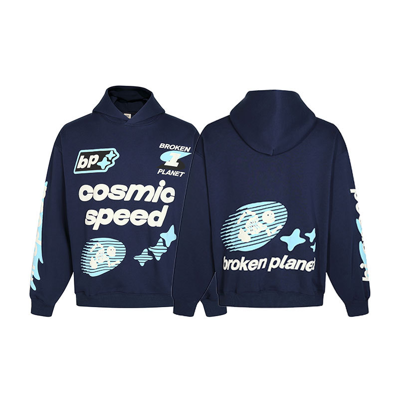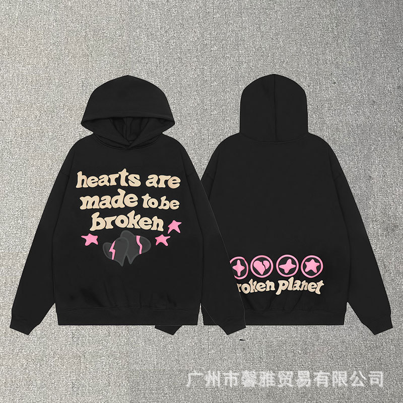 깨진 행성 편지 거품 인쇄 깨진 행성 느슨한 캐주얼 양털 후드 셔츠 남성과 여성스토어 가기