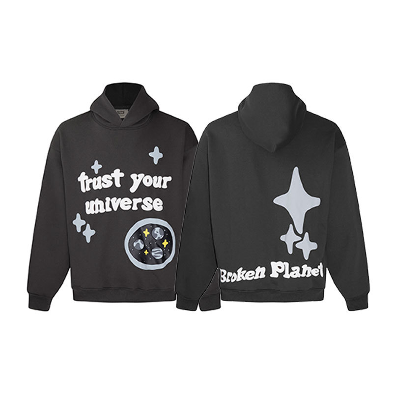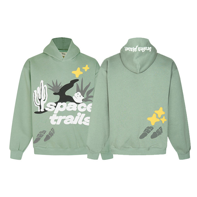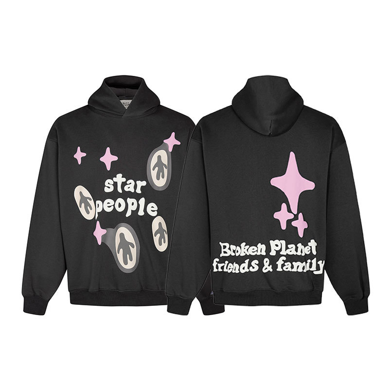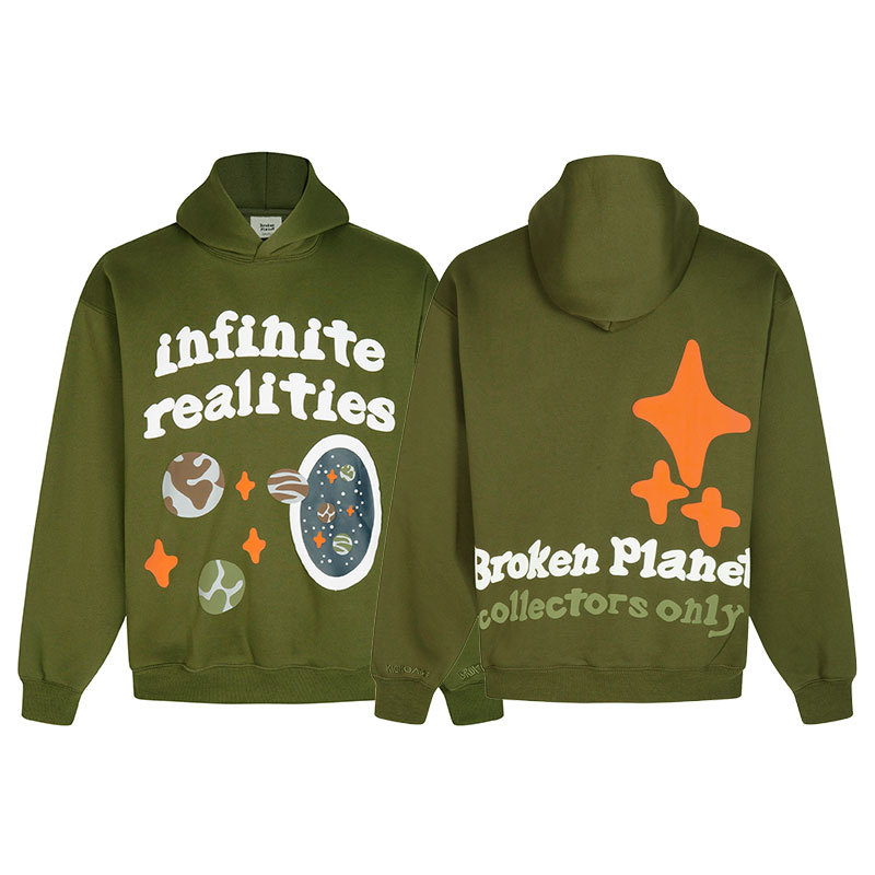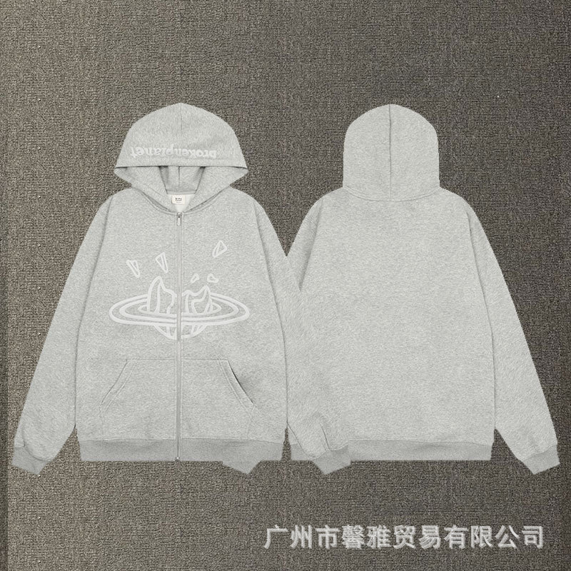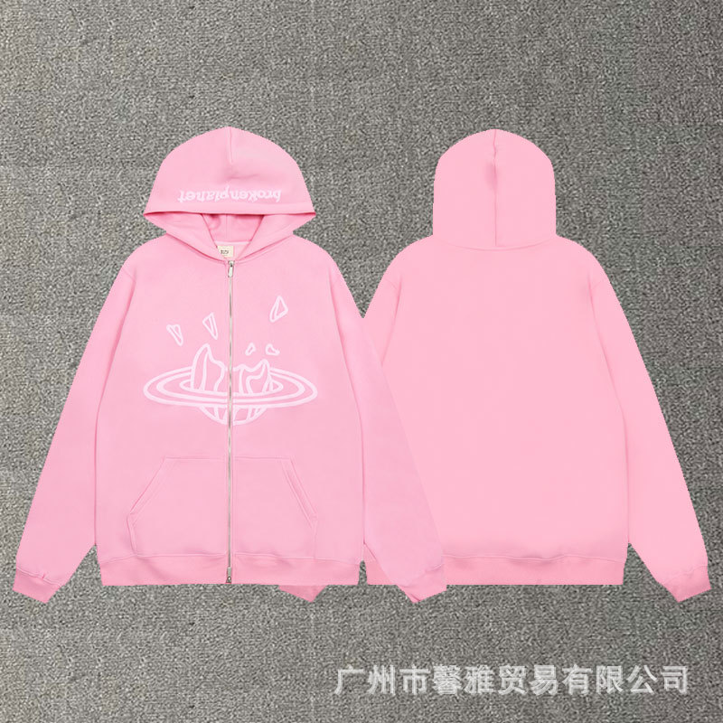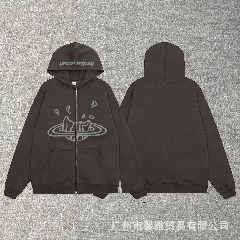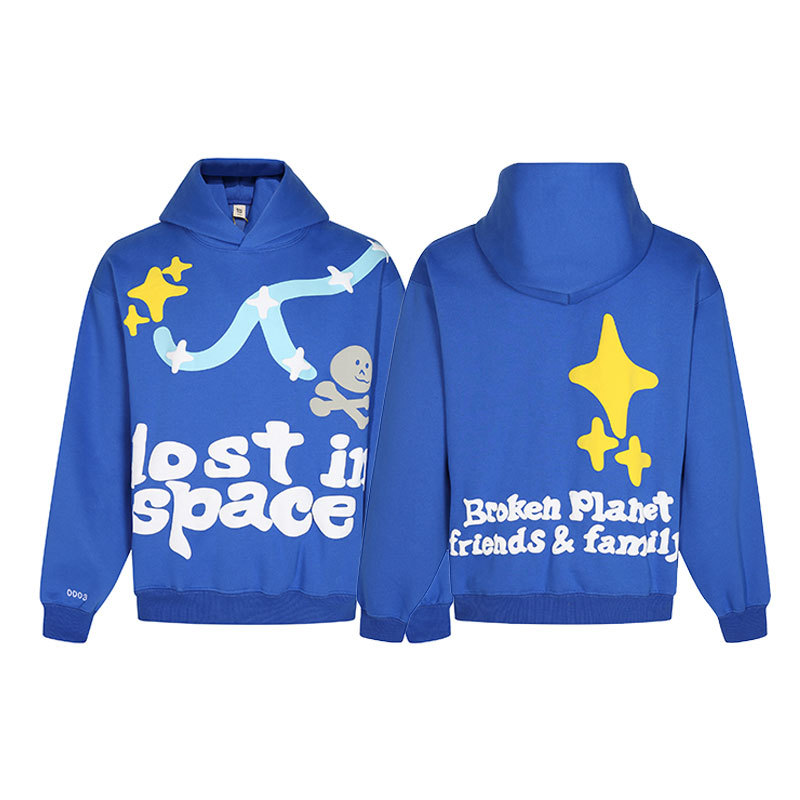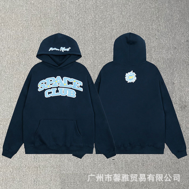 깨진 행성 편지 거품 인쇄 깨진 행성 느슨한 캐주얼 양털 후드 셔츠 남성과 여성스토어 가기