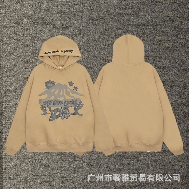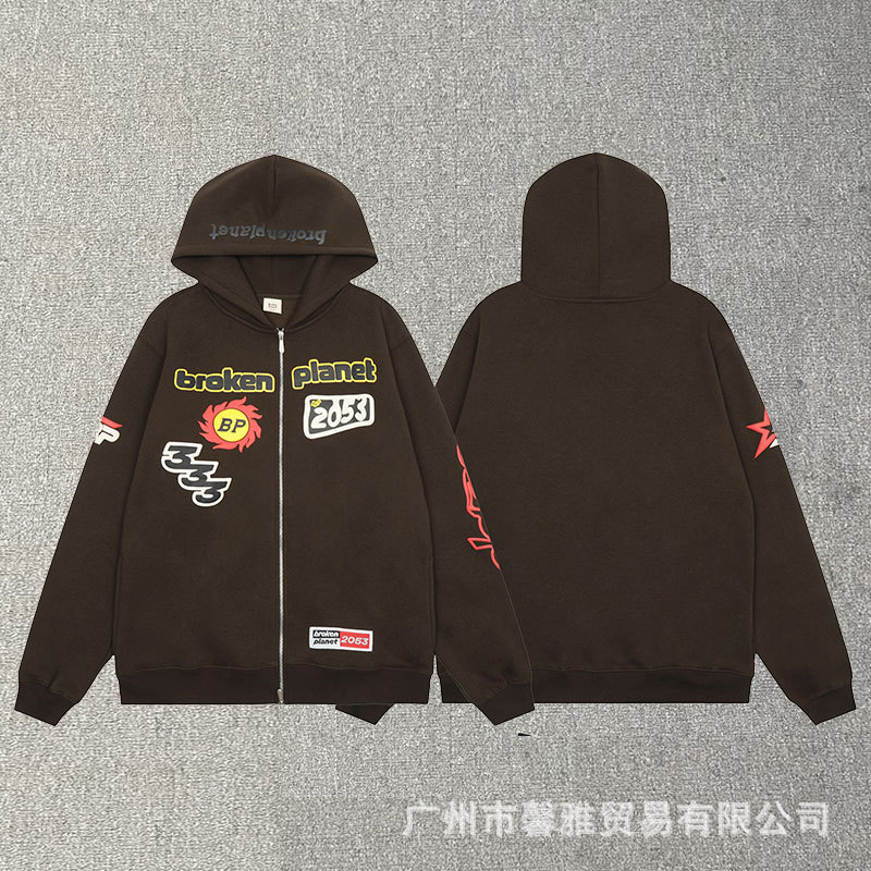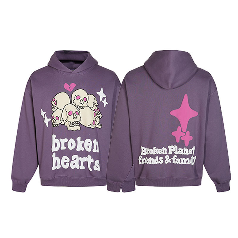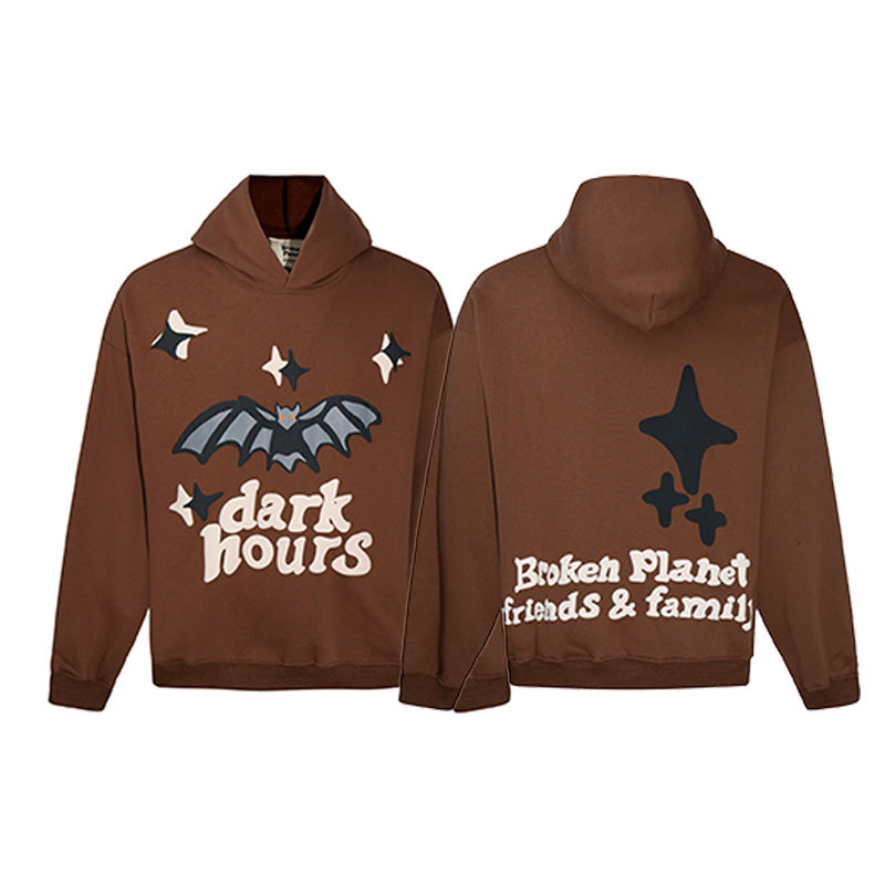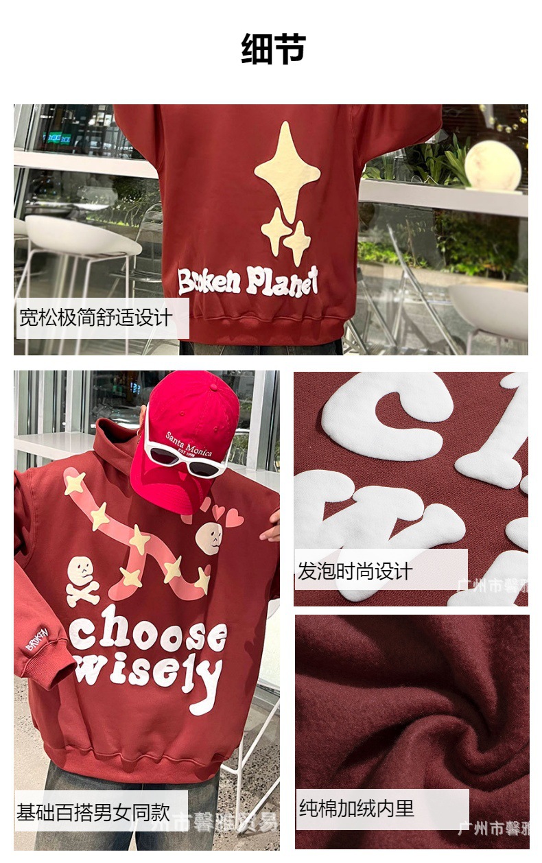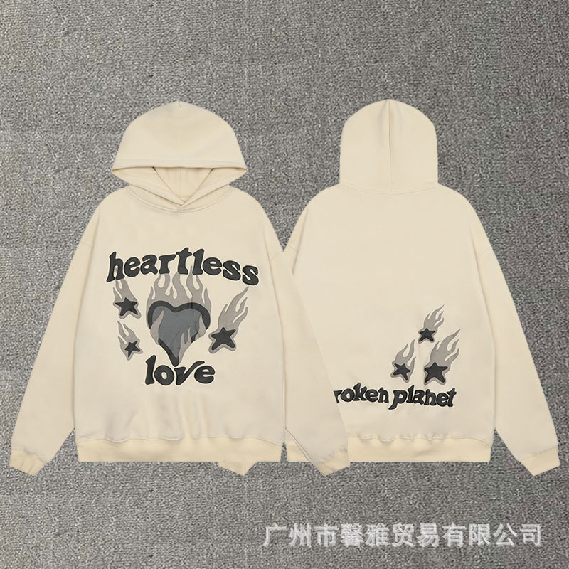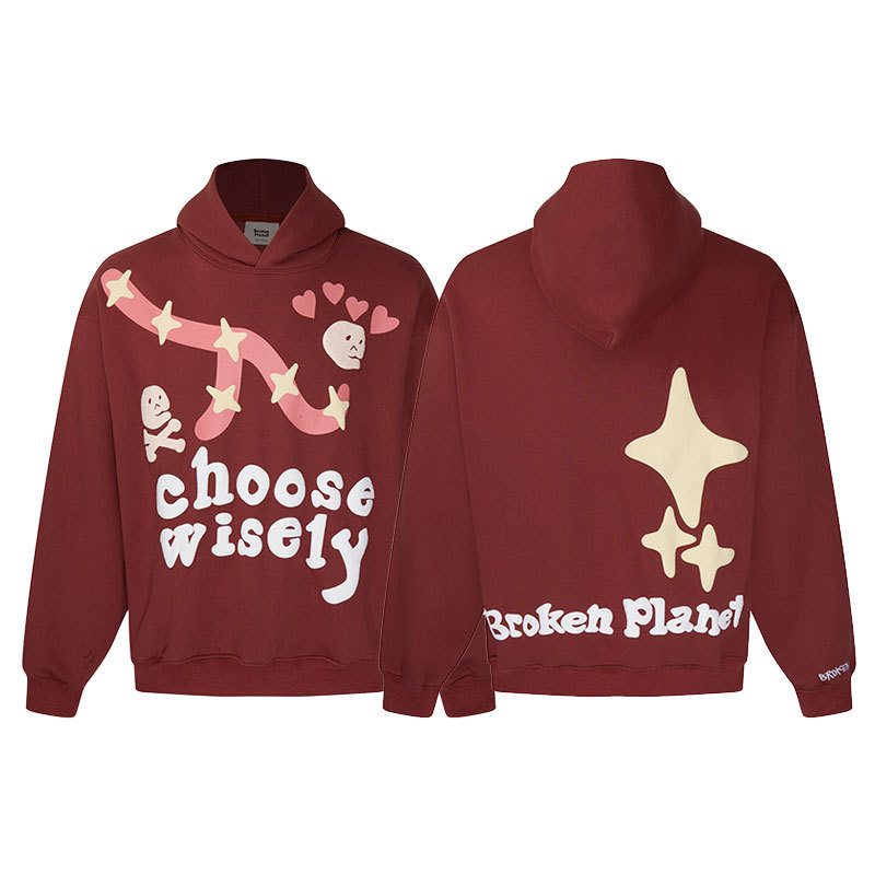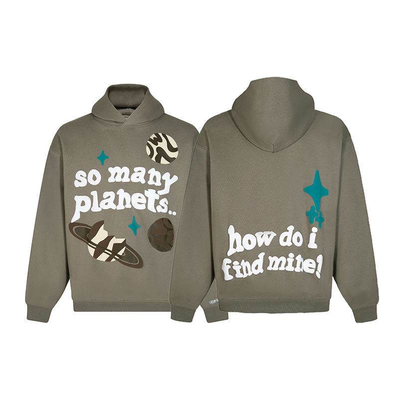 깨진 행성 편지 거품 인쇄 깨진 행성 느슨한 캐주얼 양털 후드 셔츠 남성과 여성스토어 가기