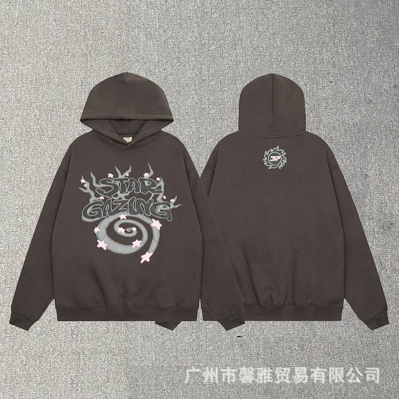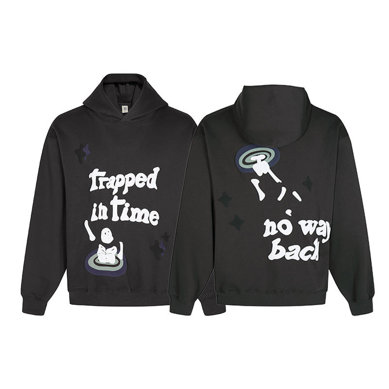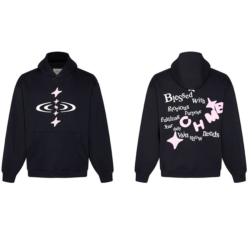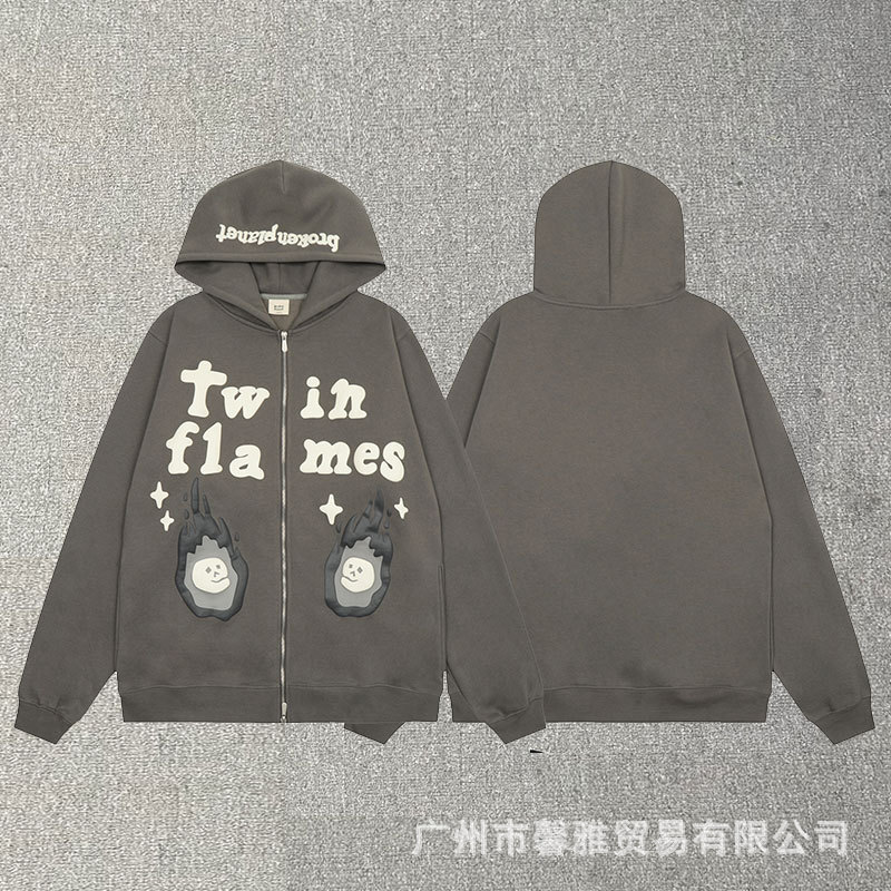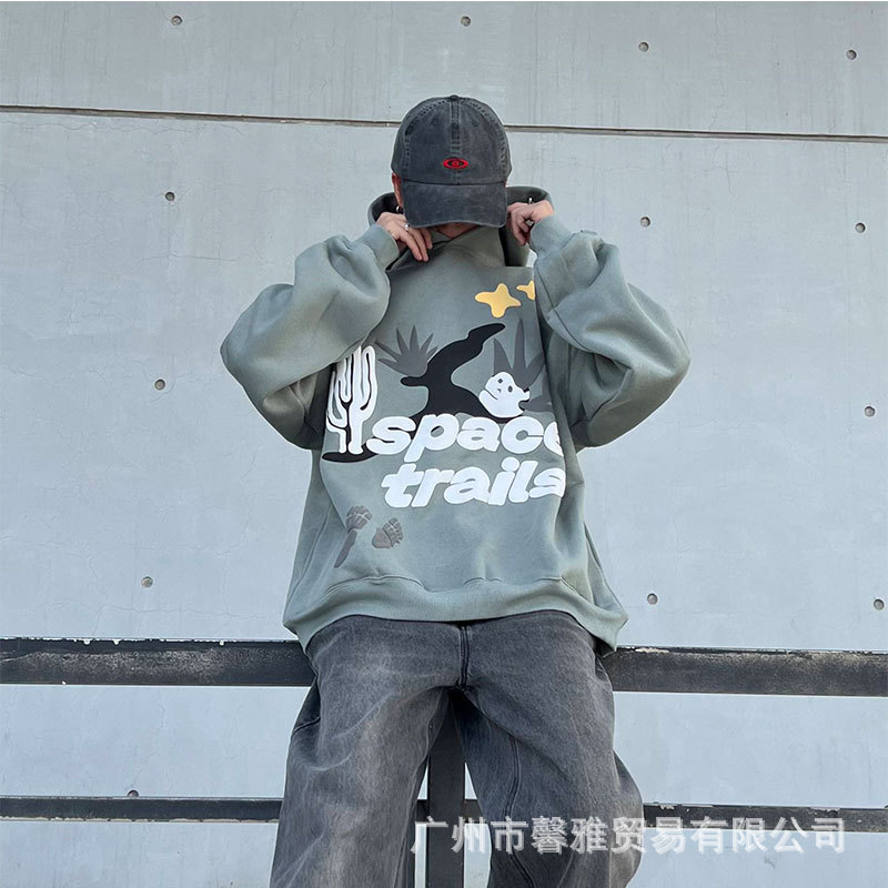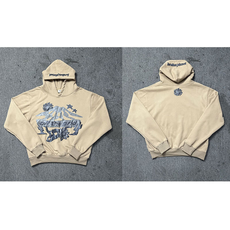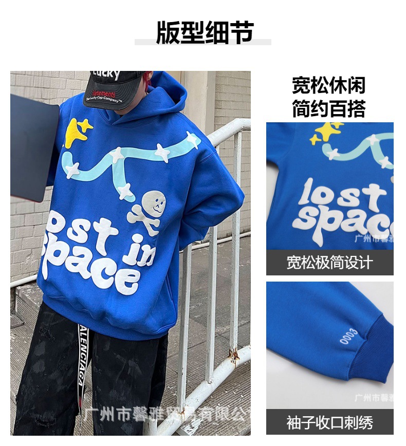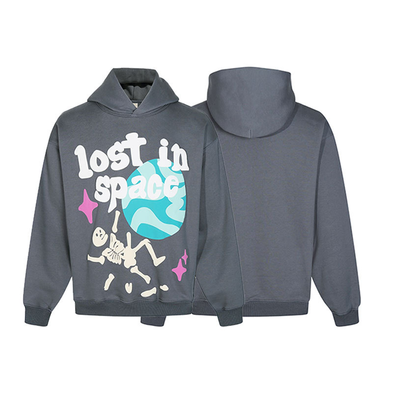 깨진 행성 편지 거품 인쇄 깨진 행성 느슨한 캐주얼 양털 후드 셔츠 남성과 여성스토어 가기