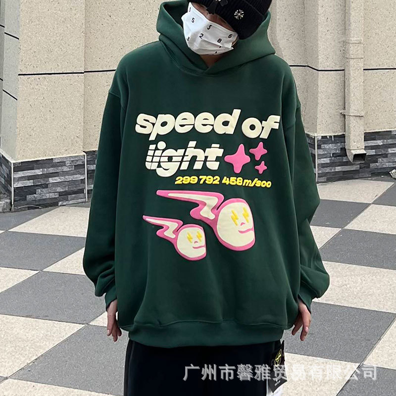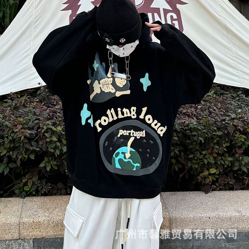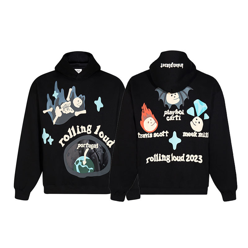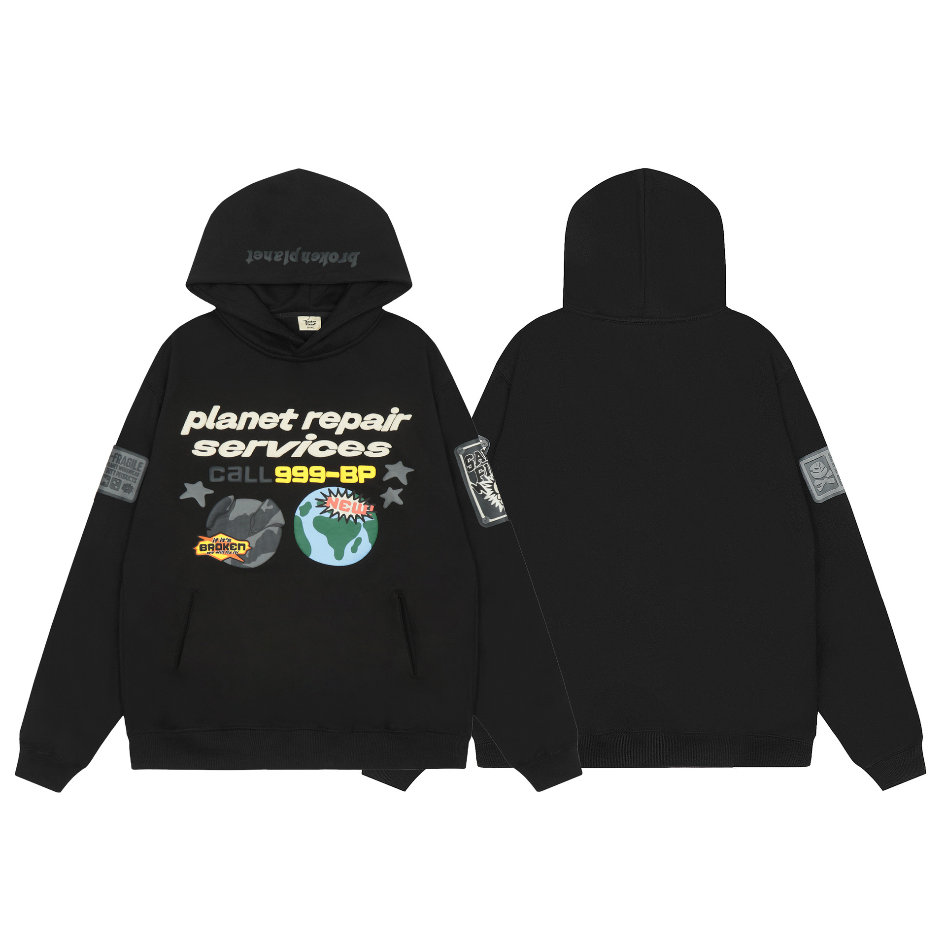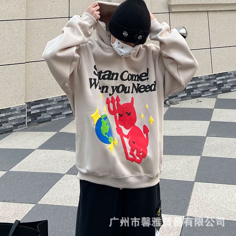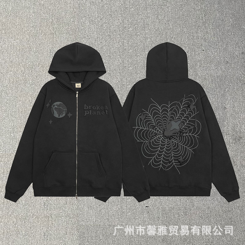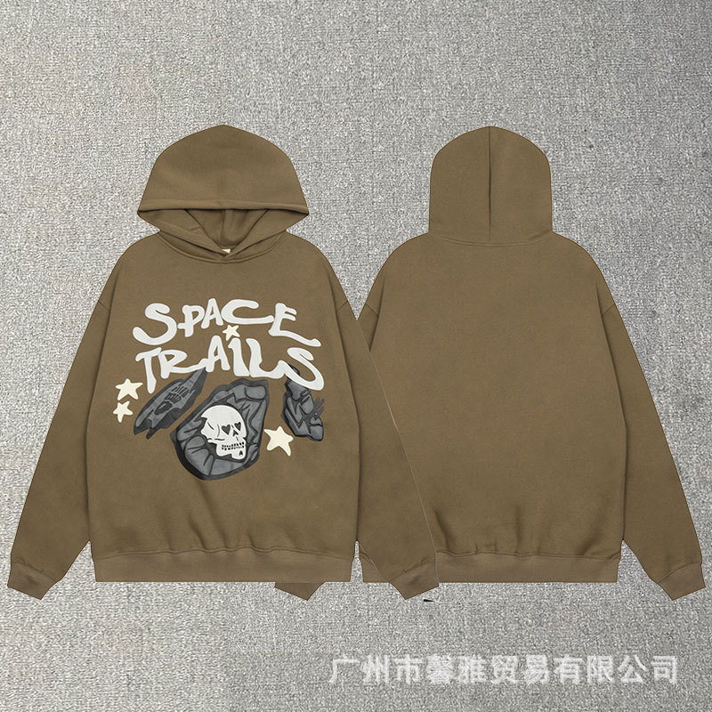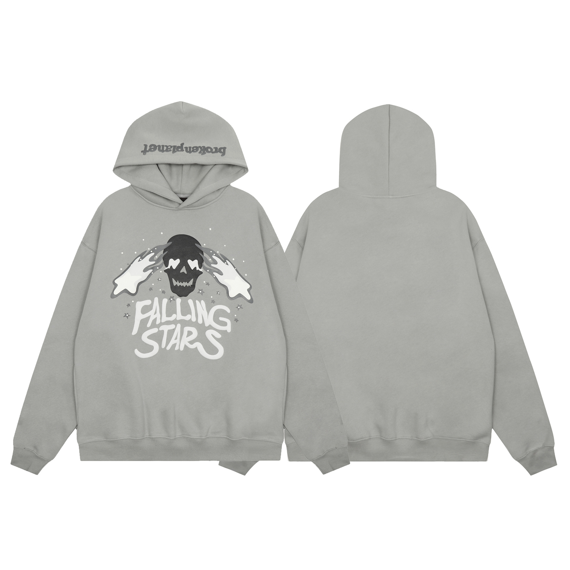 깨진 행성 편지 거품 인쇄 깨진 행성 느슨한 캐주얼 양털 후드 셔츠 남성과 여성스토어 가기