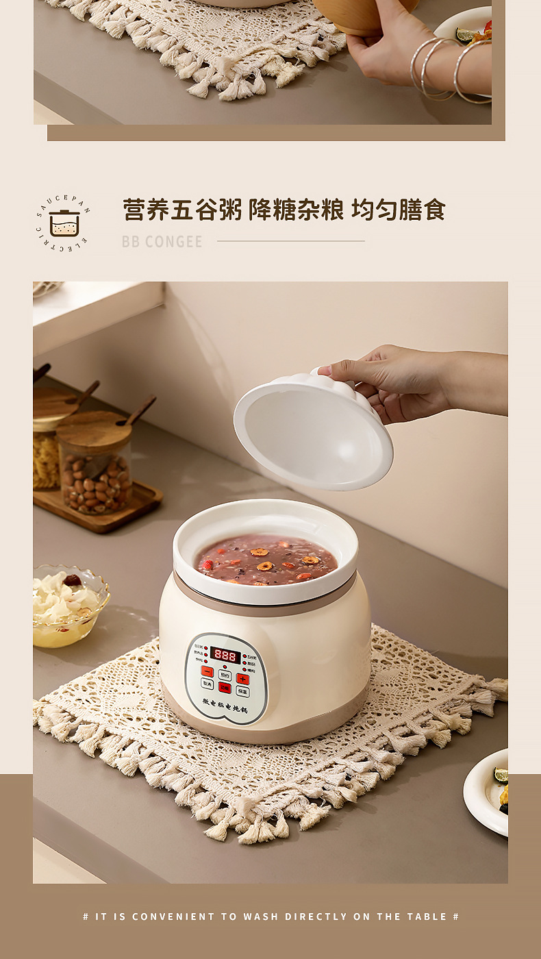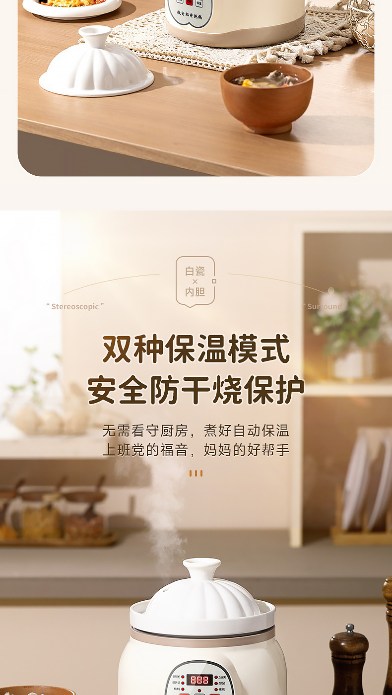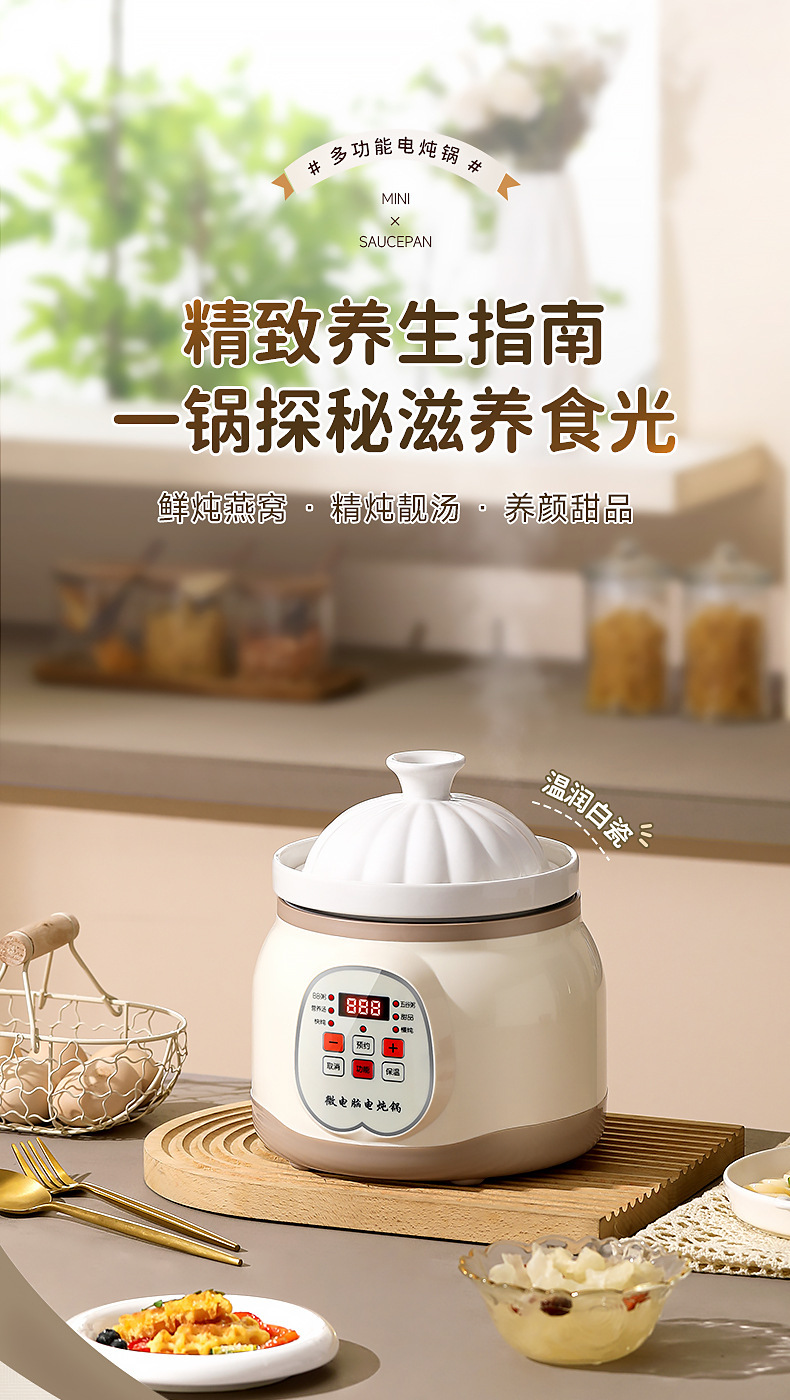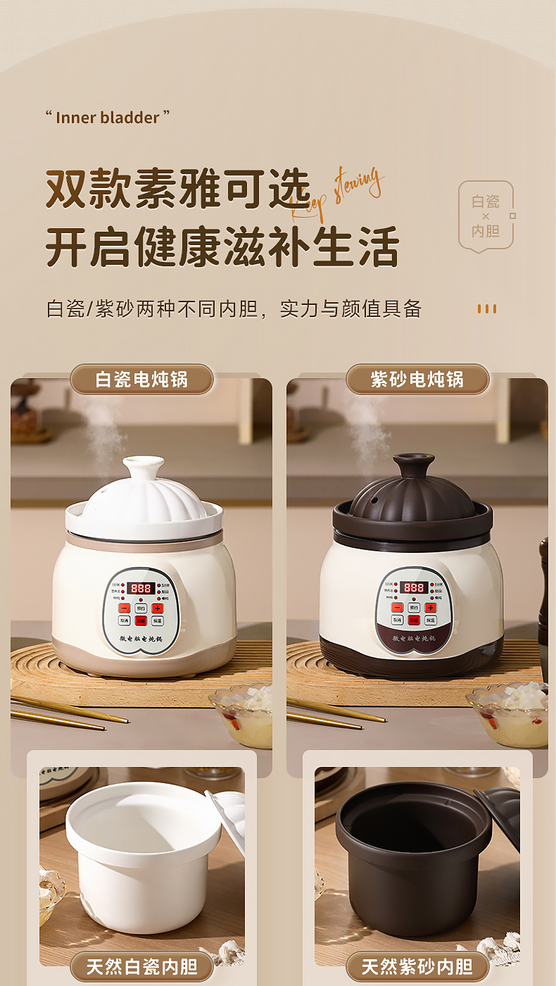 지능형 전기 스튜 냄비 세라믹 죽 수프 냄비 유물 새 둥지 스튜 냄비 가정용 주방 오버플로 방지 자동 전기 캐서롤