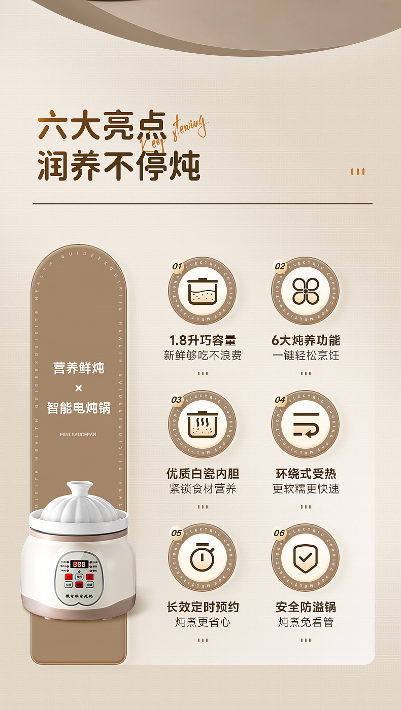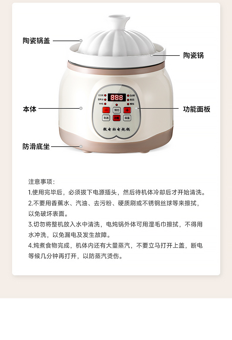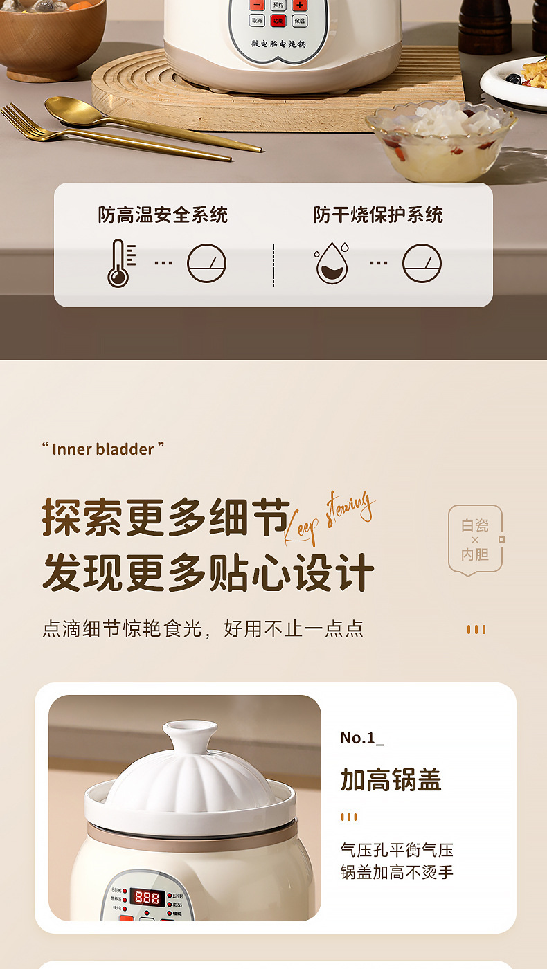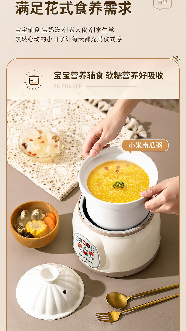 지능형 전기 스튜 냄비 세라믹 죽 수프 냄비 유물 새 둥지 스튜 냄비 가정용 주방 오버플로 방지 자동 전기 캐서롤