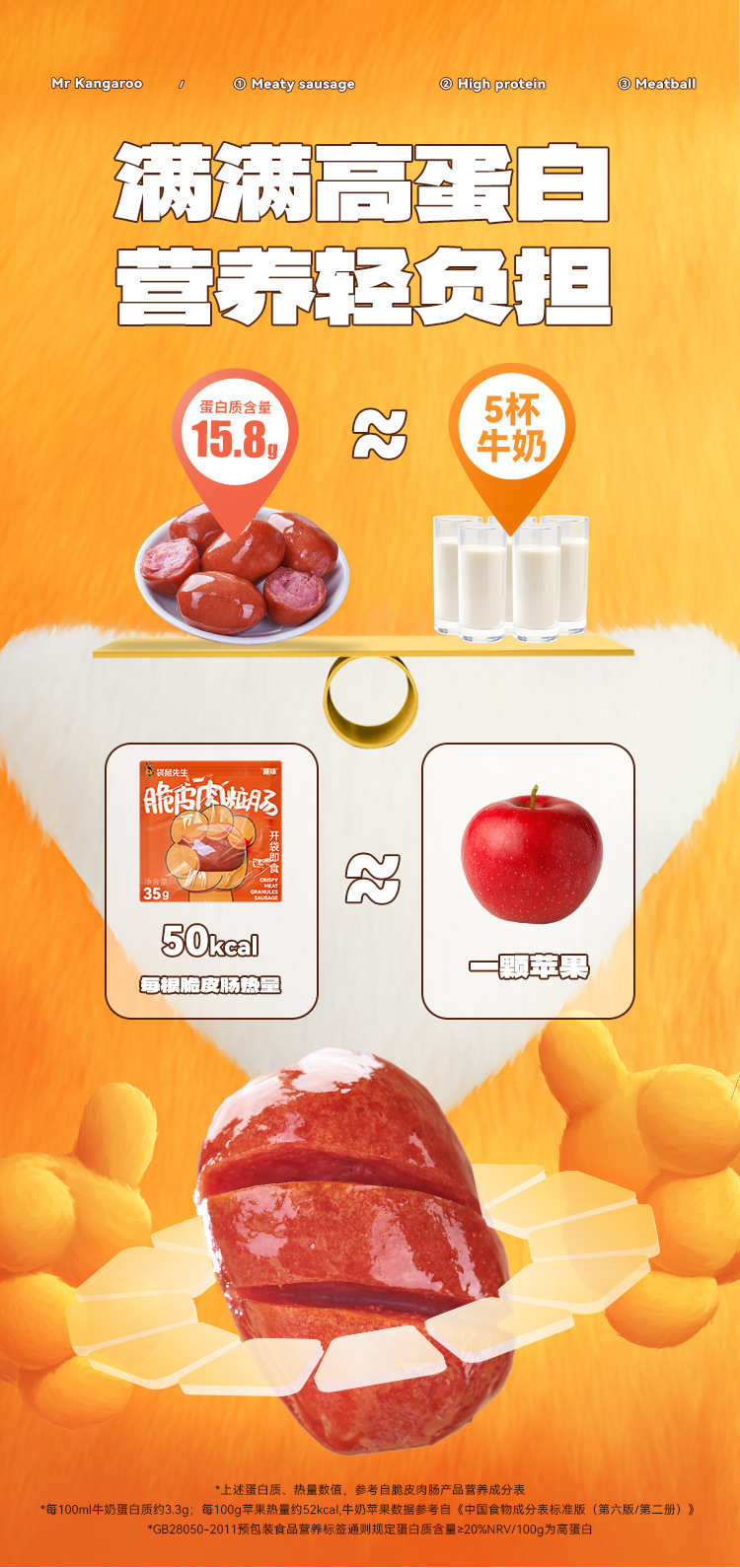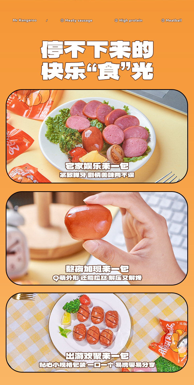 캥거루씨 바삭한 고기 소시지 바로 먹을 수 있는 치킨 소시지 식사 대용 간식 가벼운 음식 닭가슴살 소시지 햄 갈망해도 식사할 수 없는 날에 드세요스토어 가기